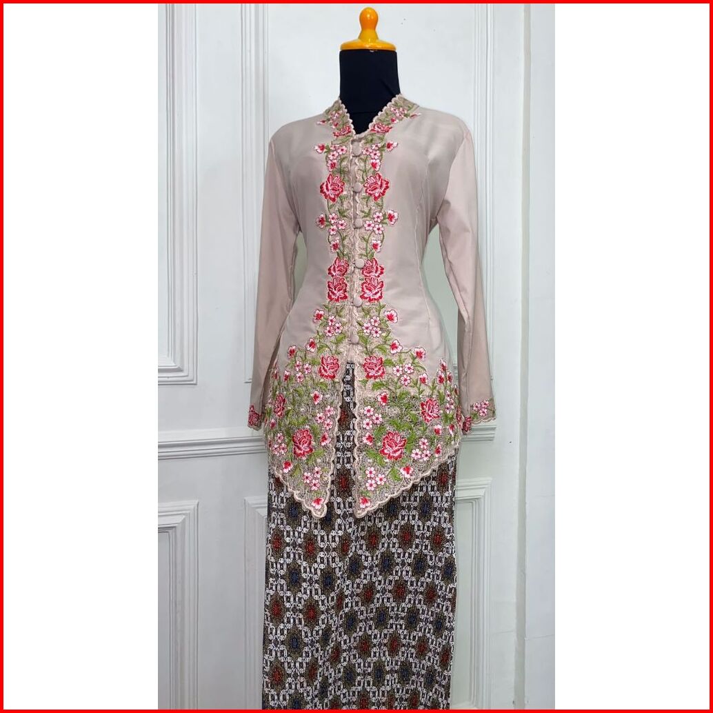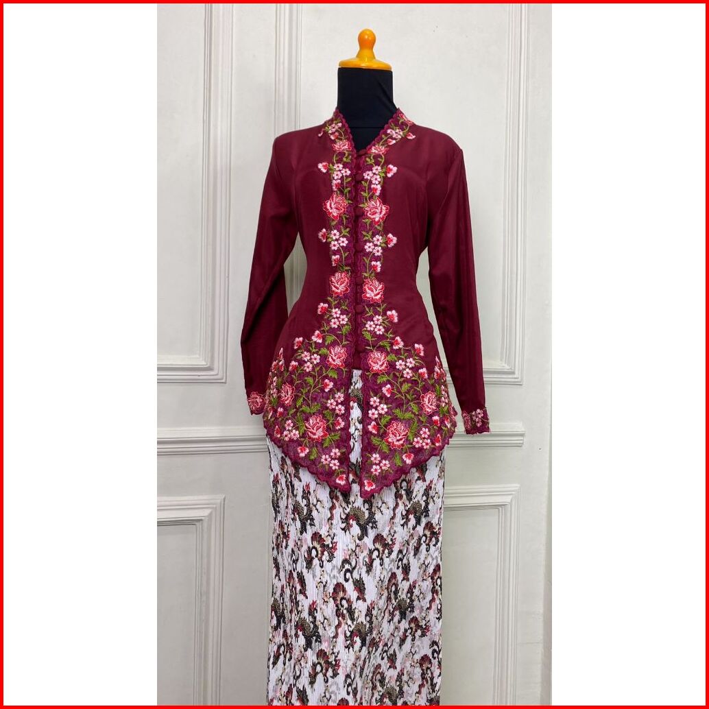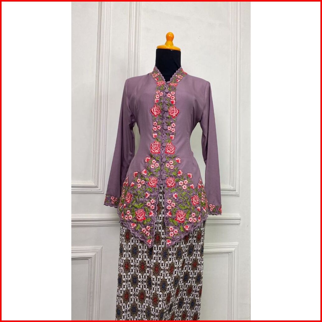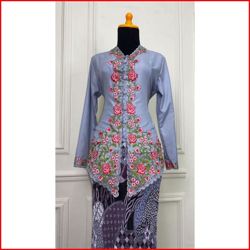 Padusi Kebaya Encim Bordir Motif Bunga Warna Cantik Size Jumbo Bahan Katun Mikro Tangan Panjang
