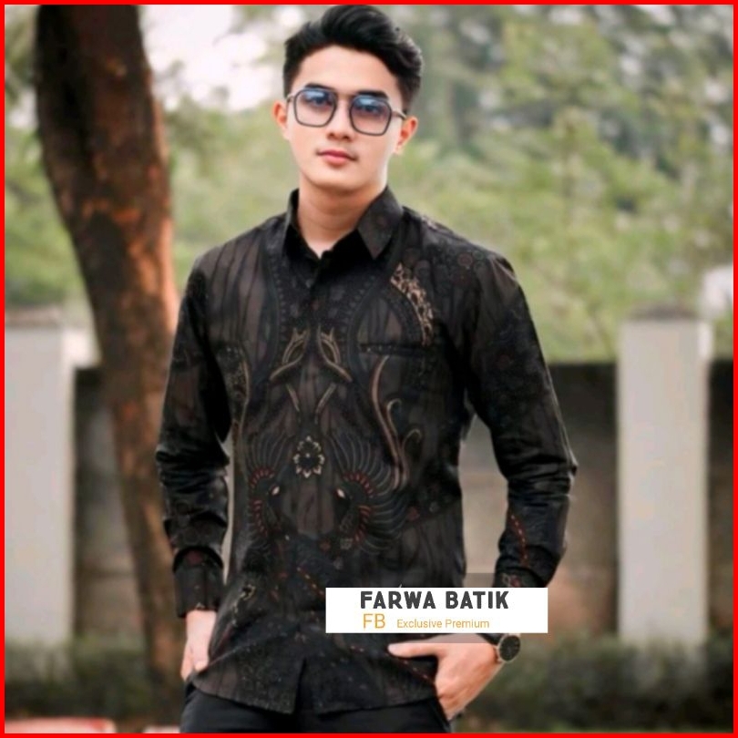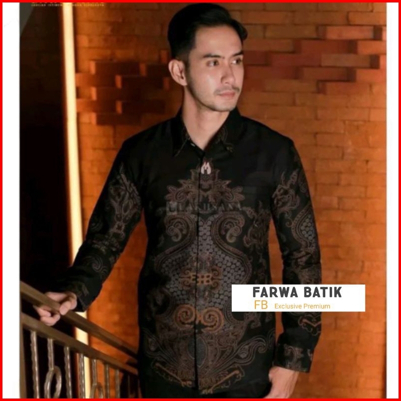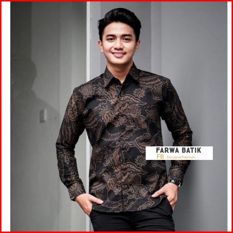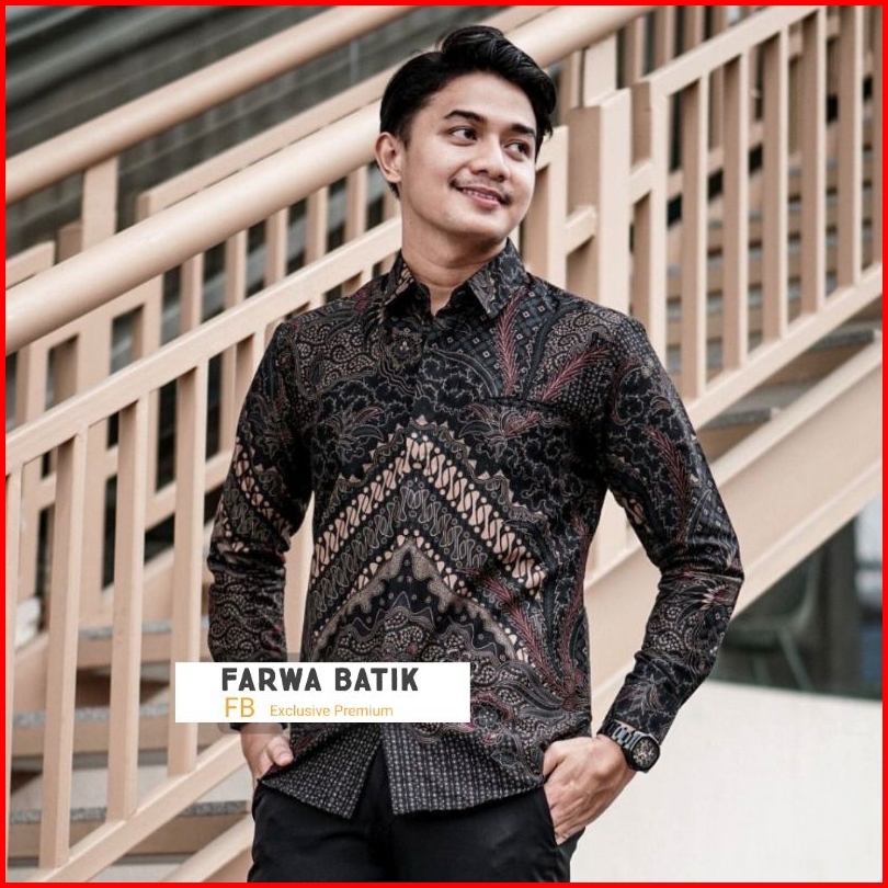 Batik Pria Lengan Panjang Warna Hitam Manis Reguler Modern Batik Exclusive Premium Laskala Hrb026