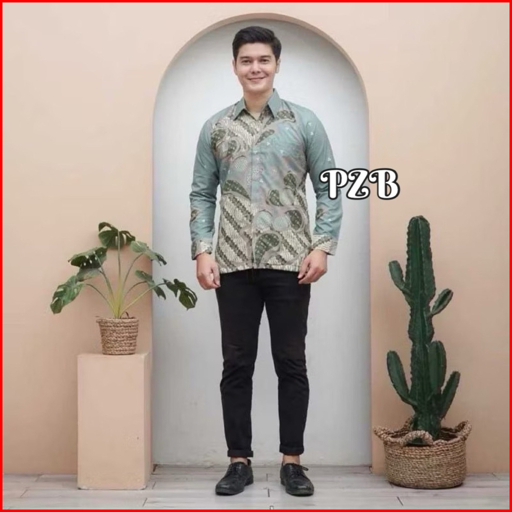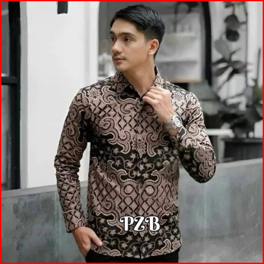 Kemeja Batik Pria Lengan Panjang Batik Azmil Motif Keratonan Premium Trendy Casual Trendy Masa Kini