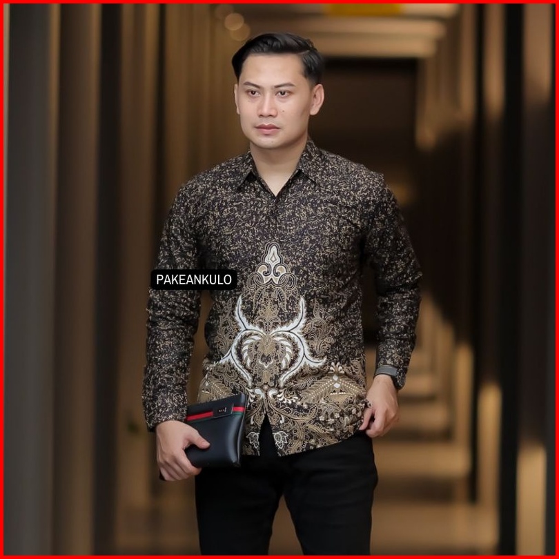Pakeankulo Batik Premium Pria Slimfit 032 Motif Lawasan Hitam Hijau Kecoklatan Ori