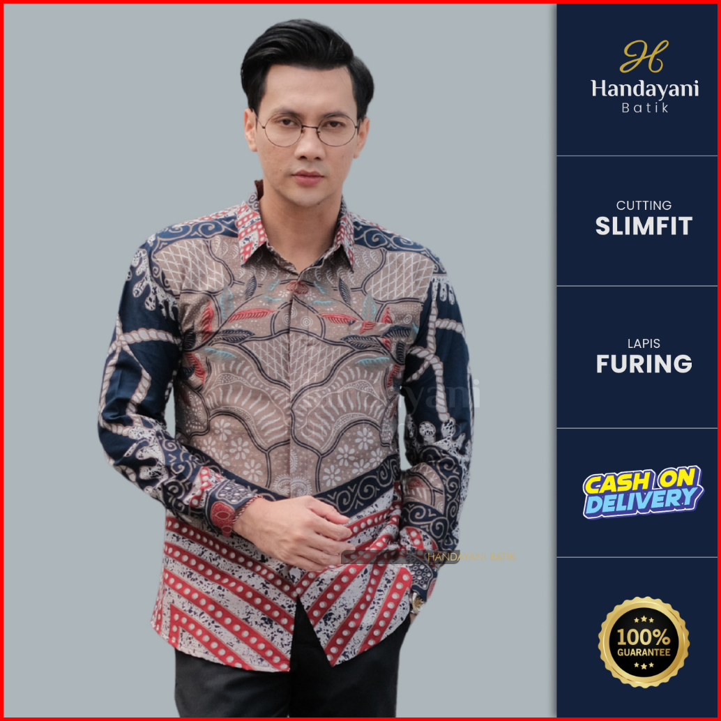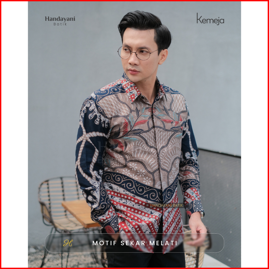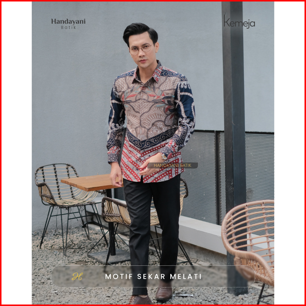 Batik Pria Motif Berpola - Lengan Panjang Bahan Katun Primisima Handayani Batik Motif Sekar Melati