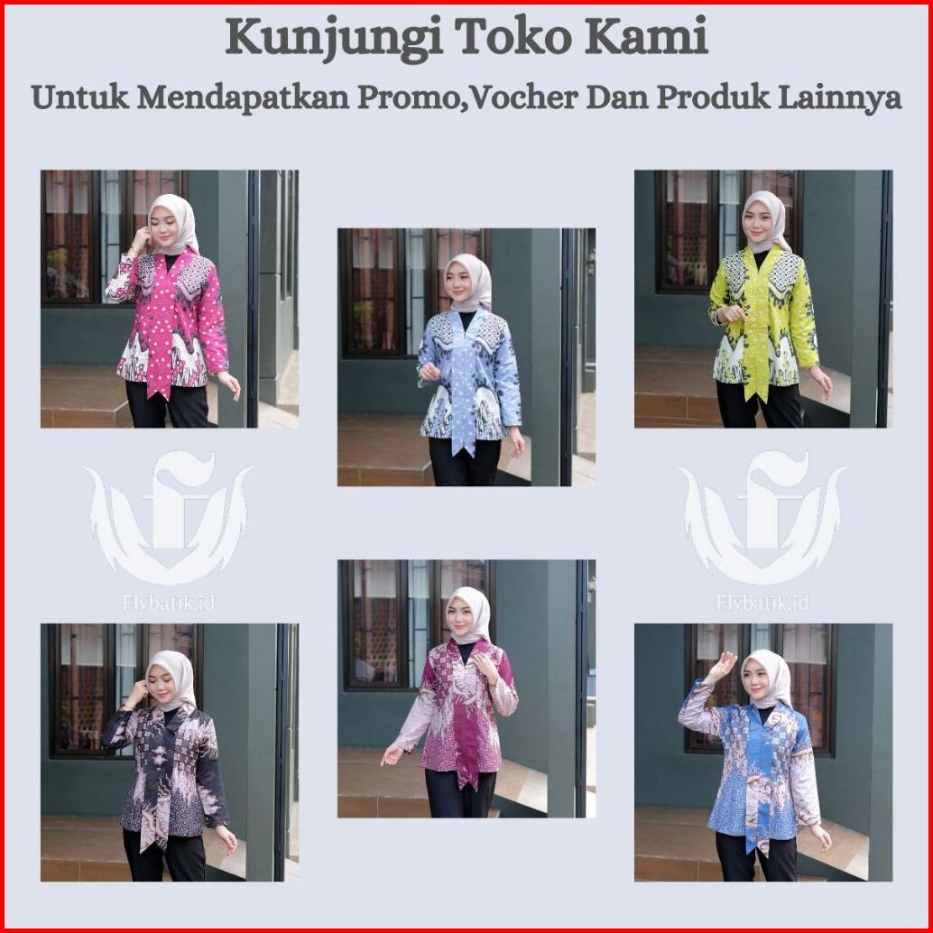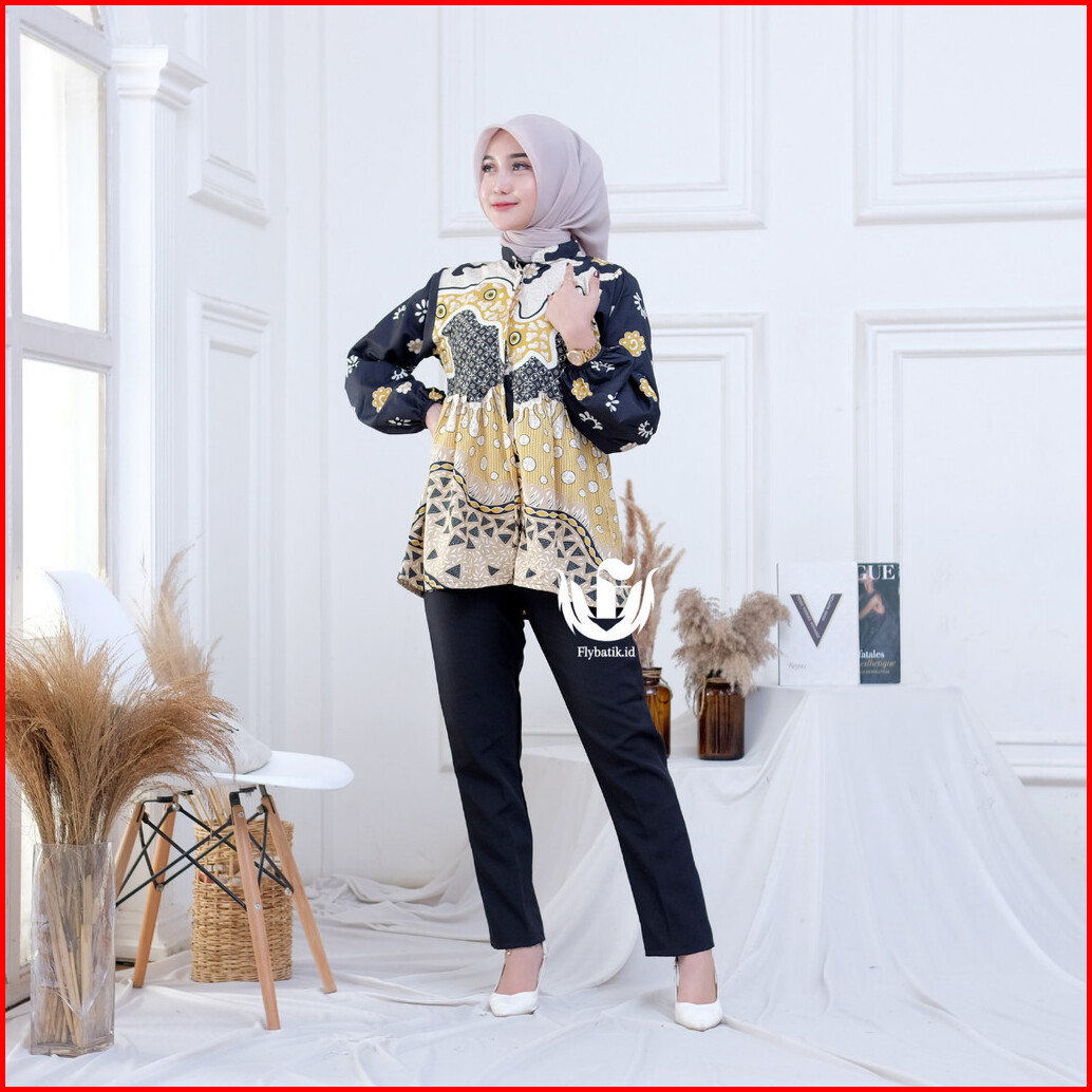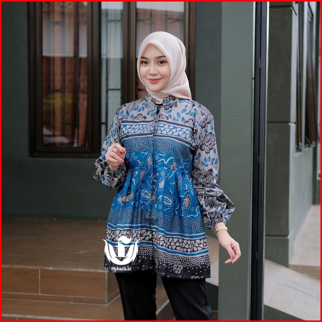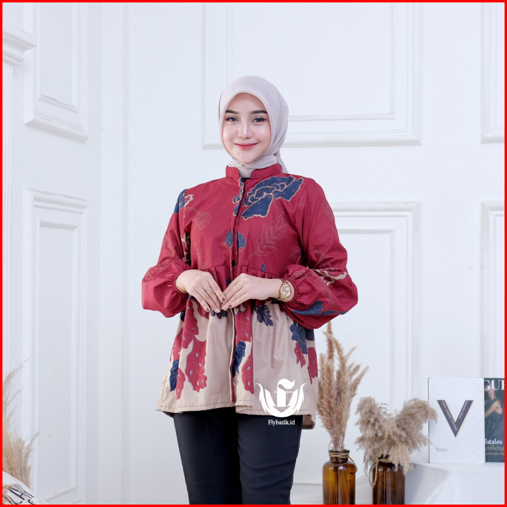 Flybatik.id Atasan Baju Blouse Batik Wanita Jumbo Modern Kerja Lengan Balon M L Xl Xxl