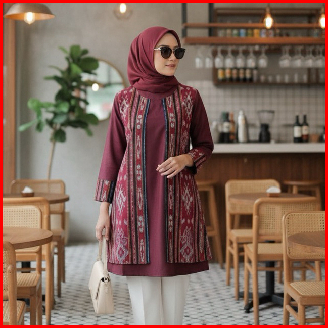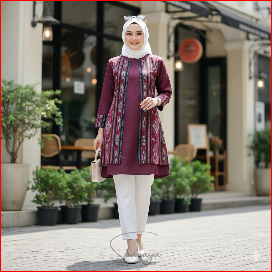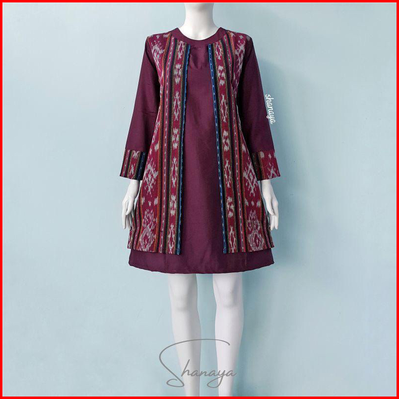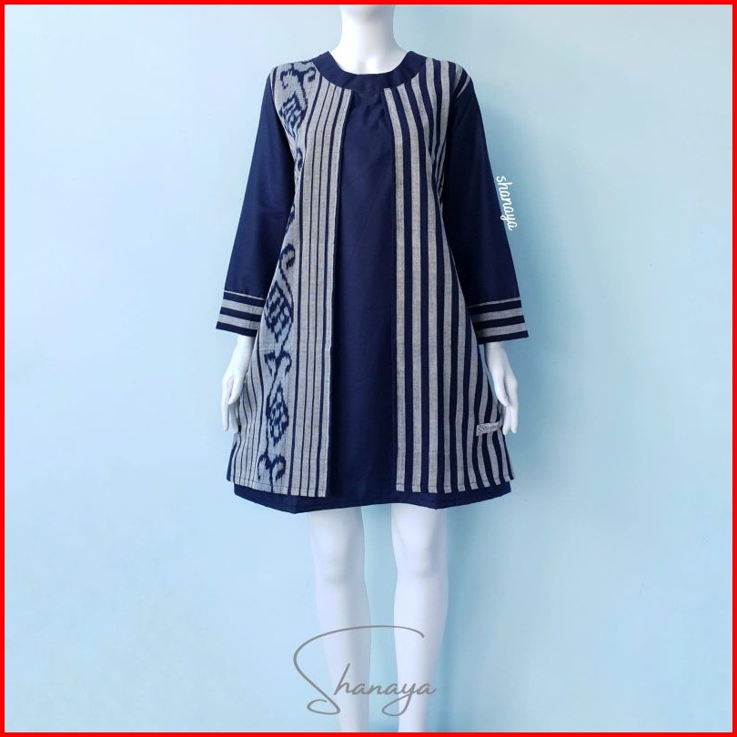 Shanaya Tunik Batik Tenun Kombinasi Toyobo Tenun Original Batik Kerja Baju Batik Wanita Resmi Batik Kondangan Cantik Ele