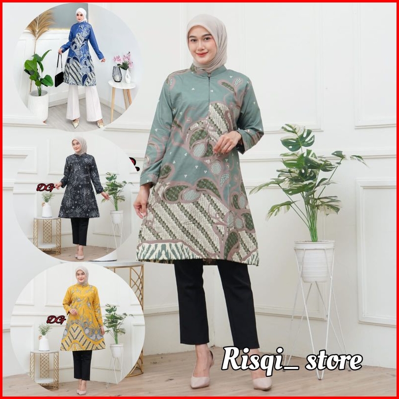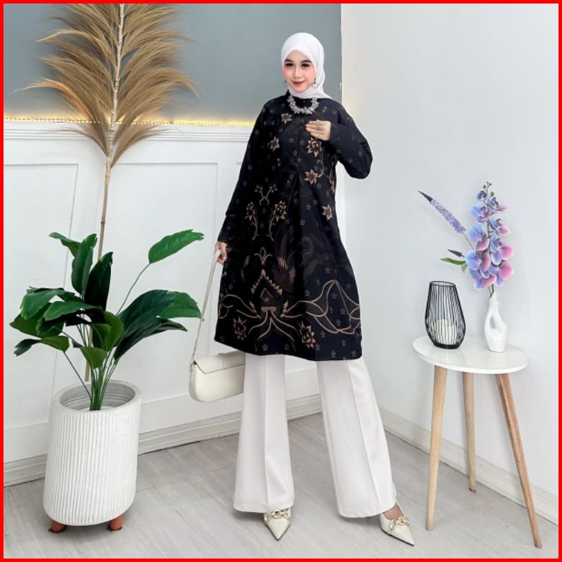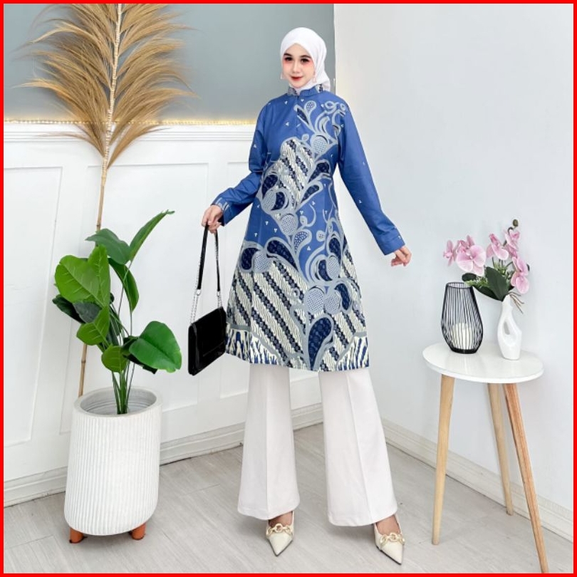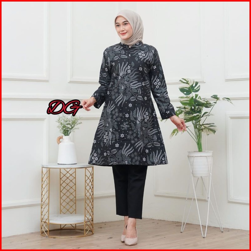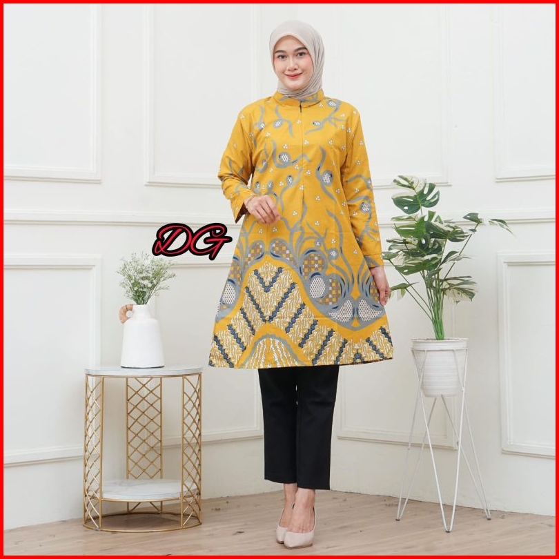 Tunik Batik Wanita Modern Premium Jumbo Terbaru Baju Seragam Kantor Guru Kerja Karyawan Kondangan