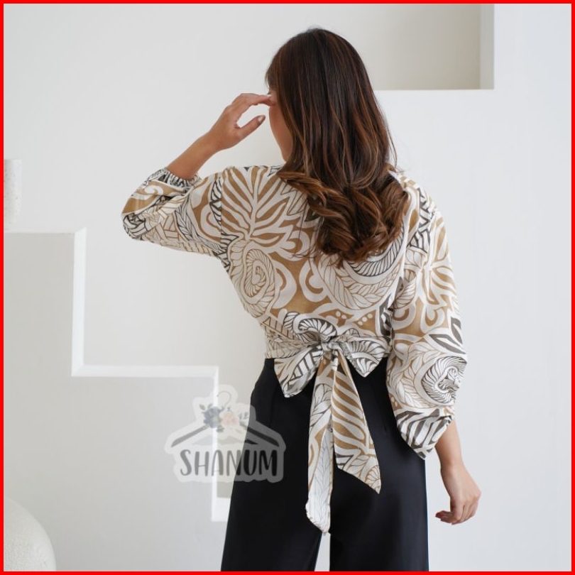 Atasan Blouse Batik Wanita Modern Atasan Wanita Lengan Balon Baju Batik Jumbo Wanita Motf Janur