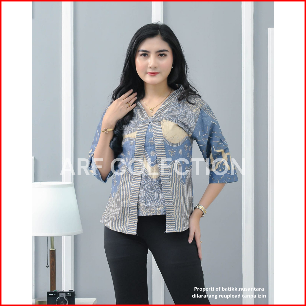 Atasan Batik Wanita Blouse Batik Modern Batik Kerja Bahan Katun Menyerap Keringat