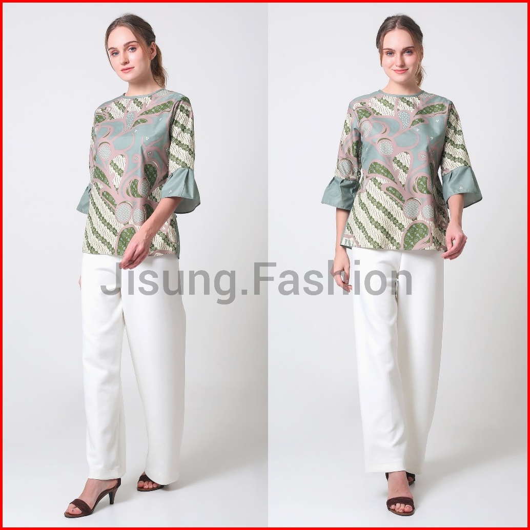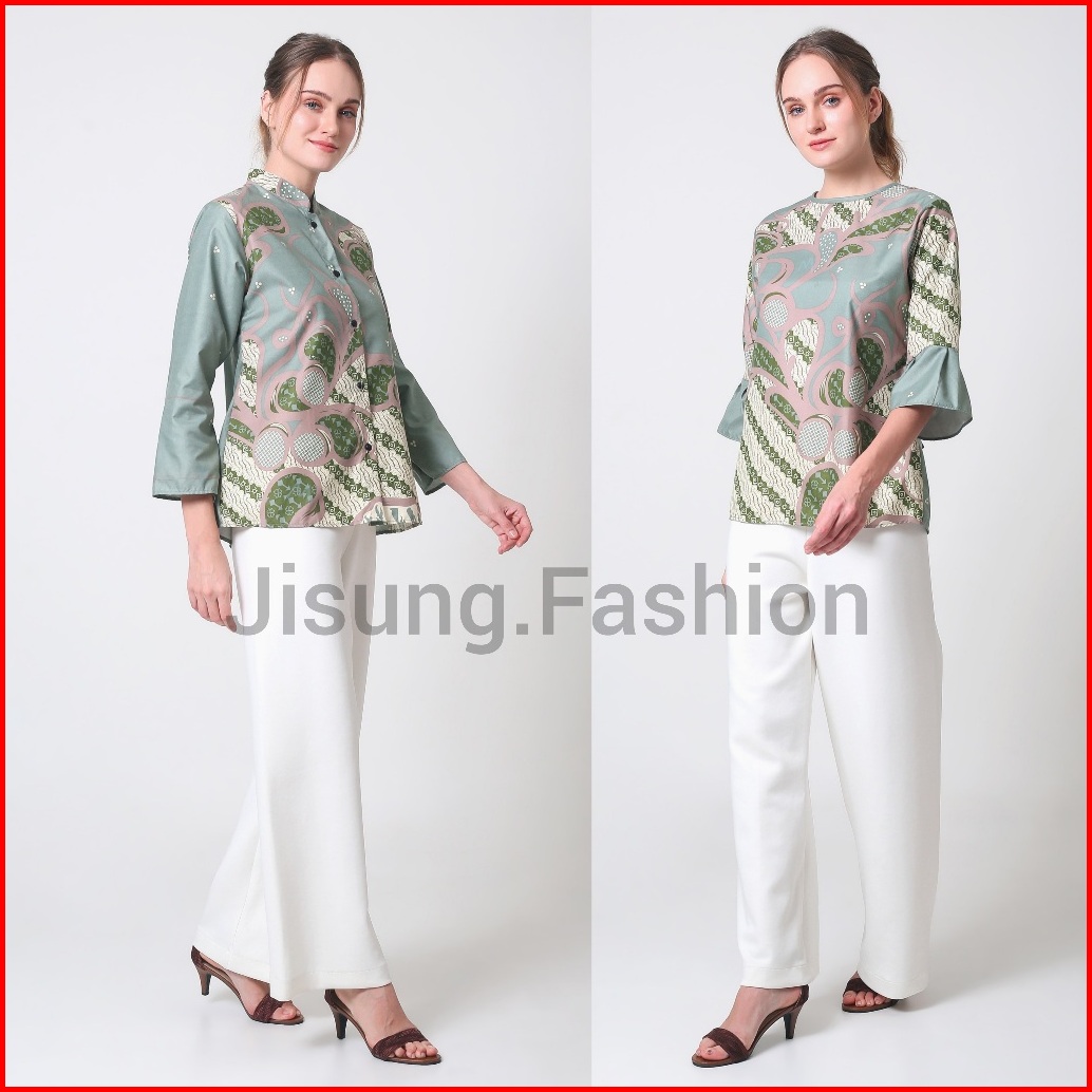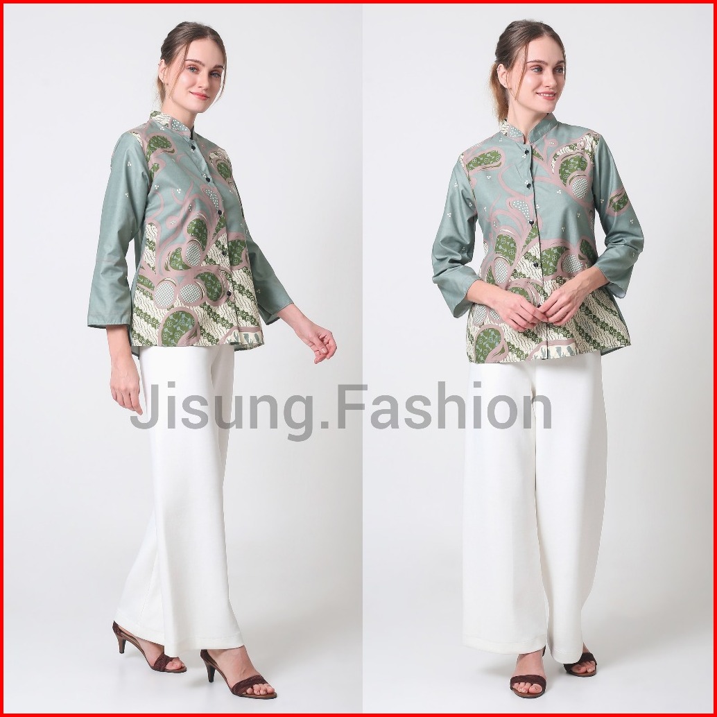 Atasan Batik Sage Kerja Wanita Modern Blouse Seragam Kantor Murah Batik Kerja Wanita Blouse Batik Kemeja Wanita Terbaru