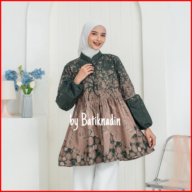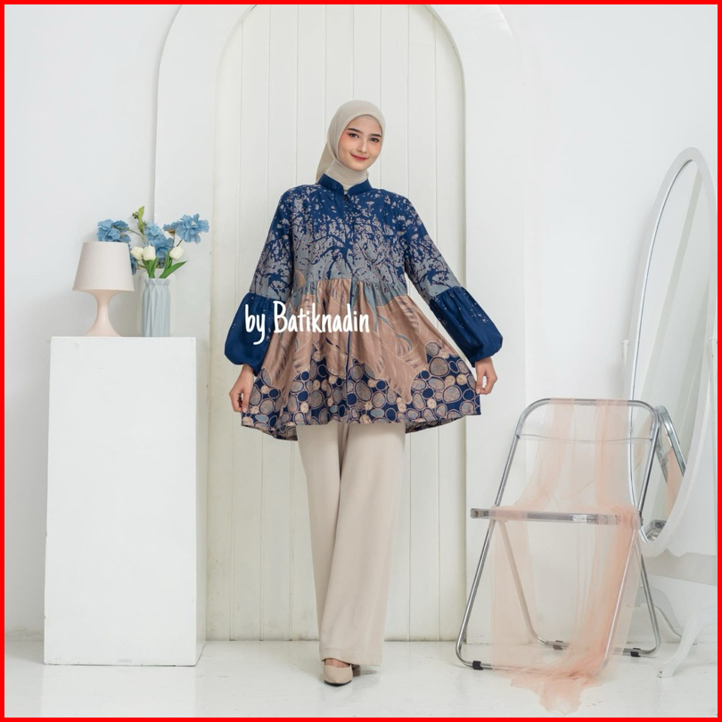 Blouse Asoka - Atasan Batik Kerja Wanita Blouse Batik Kantor Baju Seragam Batik Katun Lengan Balon
