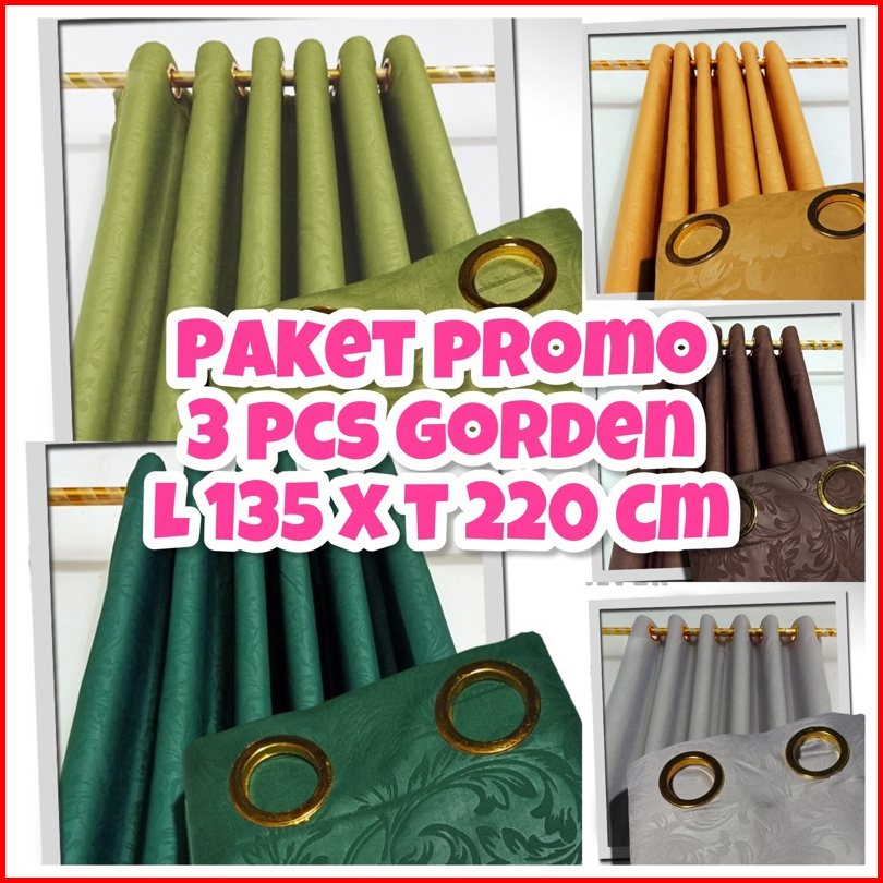 Paket Isi 3pcs Gorden Pintu Jendela Minimalis Smokring 12 Lubang Promo