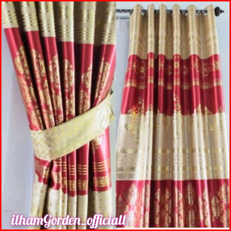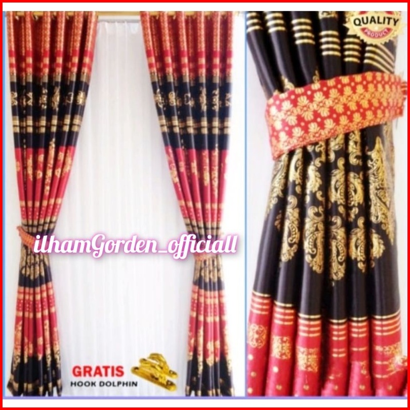 Gorden Jendela Bahan Blckout Beludru Motif Batik Tinta