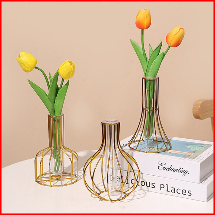 Nordic Golden Glass Vas Besi Hidroponik Tanaman Vas Bunga Meja Kedai Kopi Kantor Dekorasi Rumah Aksesoris Modern