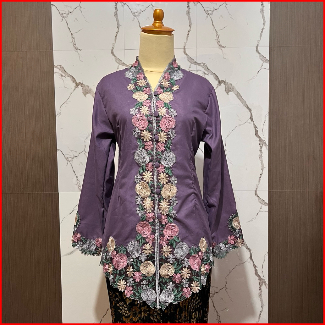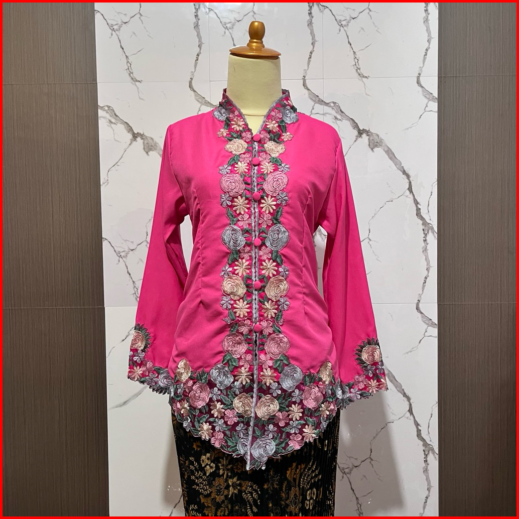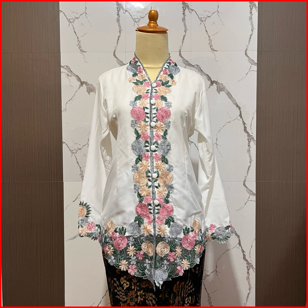 Kebaya Encim Motif Bunga Mawar Lengan Panjang