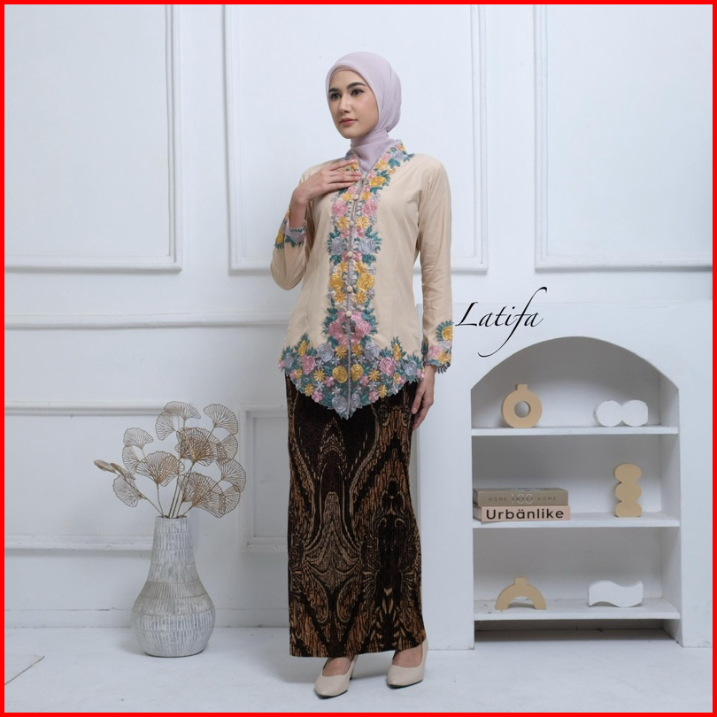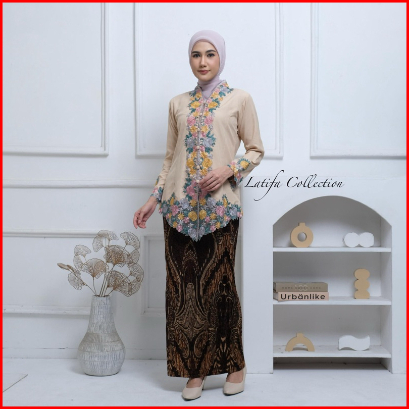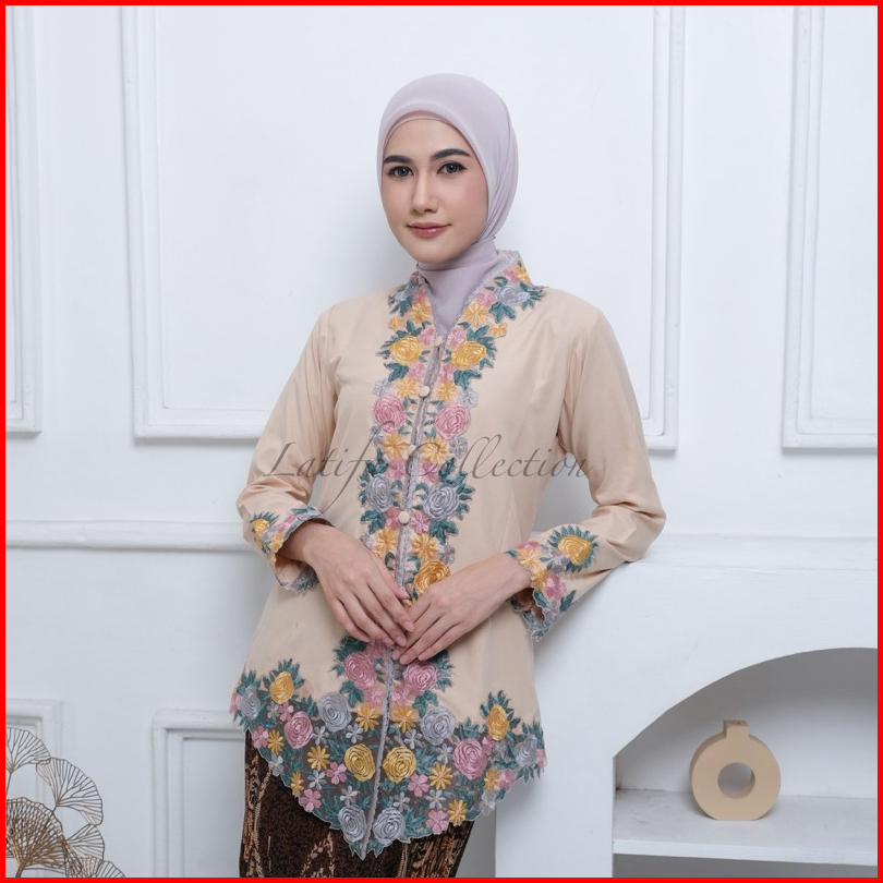 Kebaya Encim Bordir Warna Motif Bunga Lengan Panjang Bahan Katun Mikro