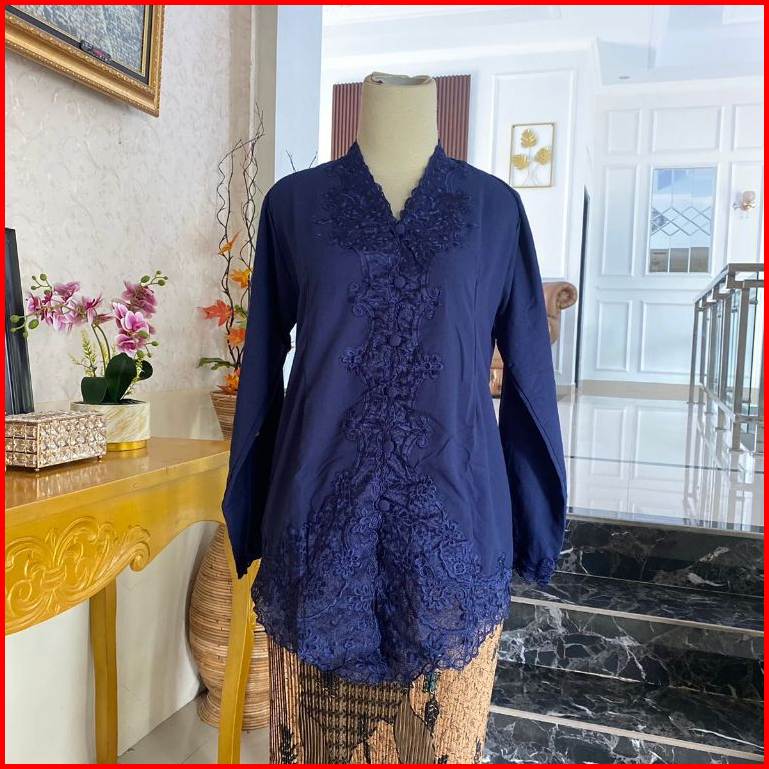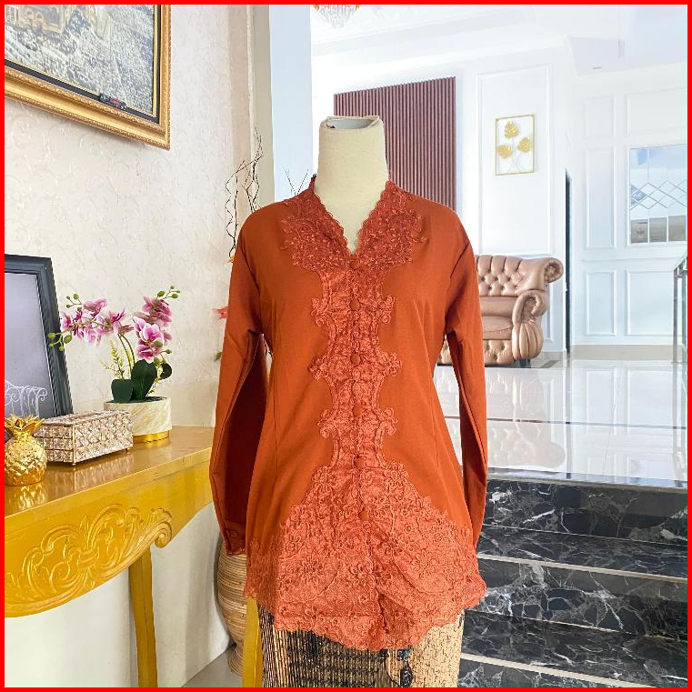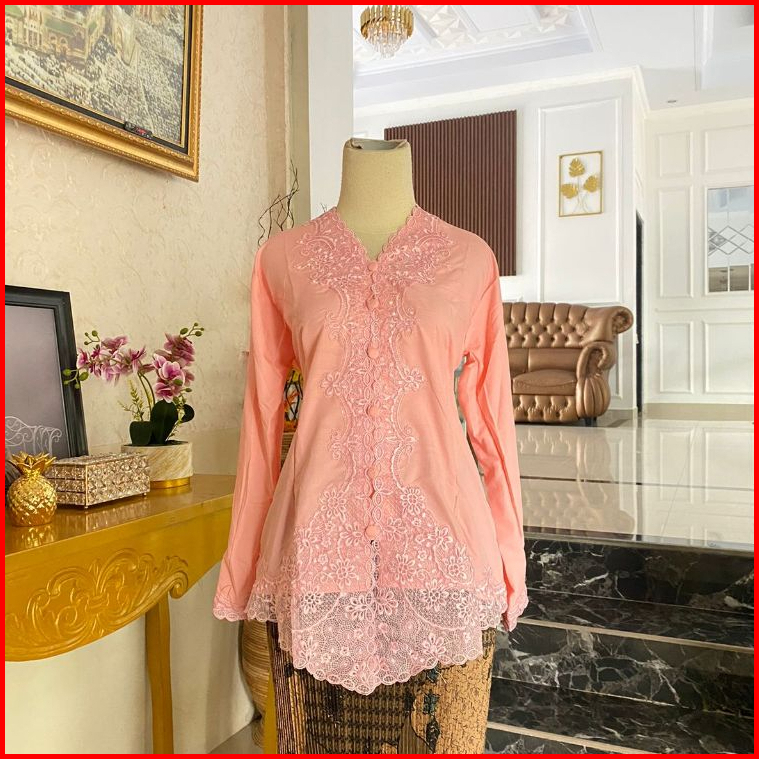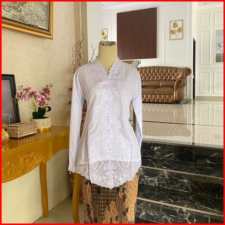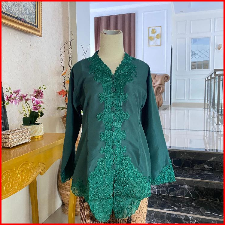 Kebaya Encim Bordir Motif Senada Lengan Panjang