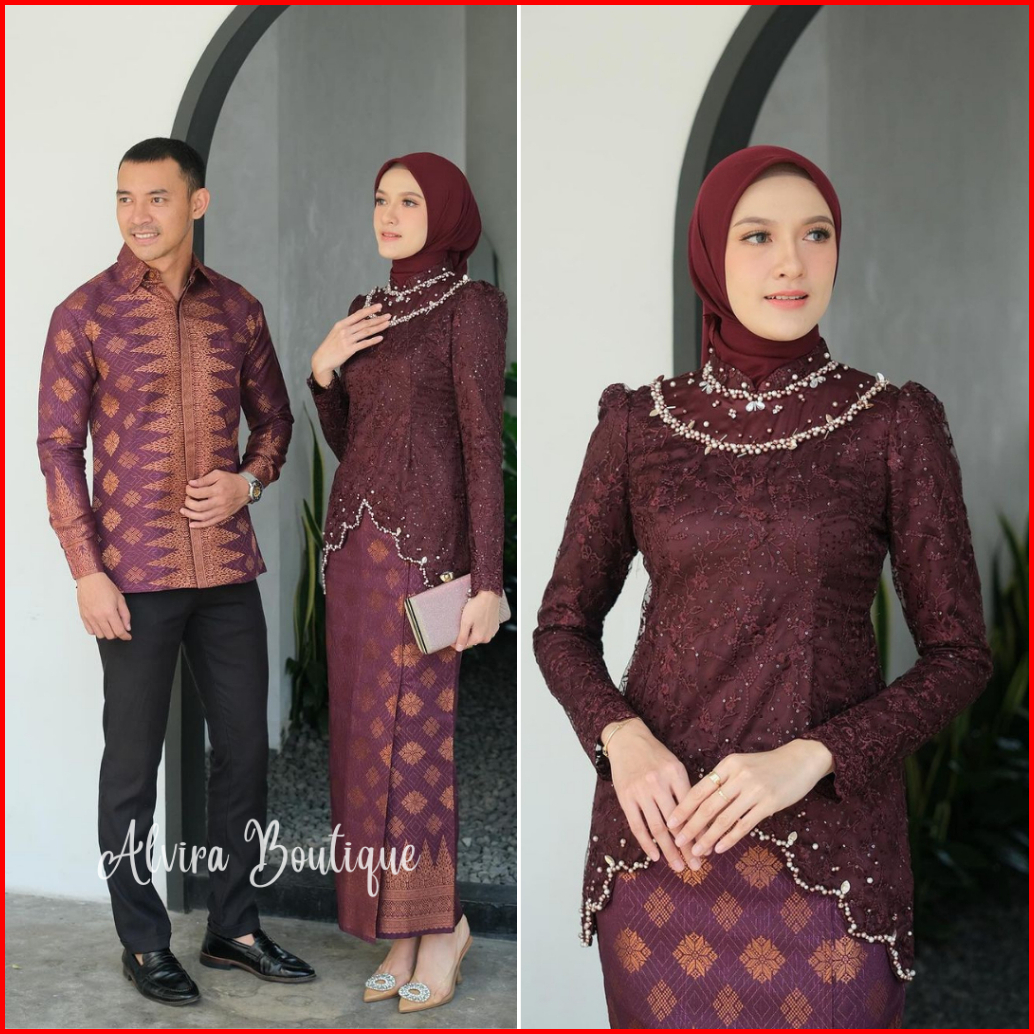 Set Kebaya Couple Modern Kebaya Wisuda Lamaran Tunangan Batik Baju Couple Kondangan Terbaru 2024