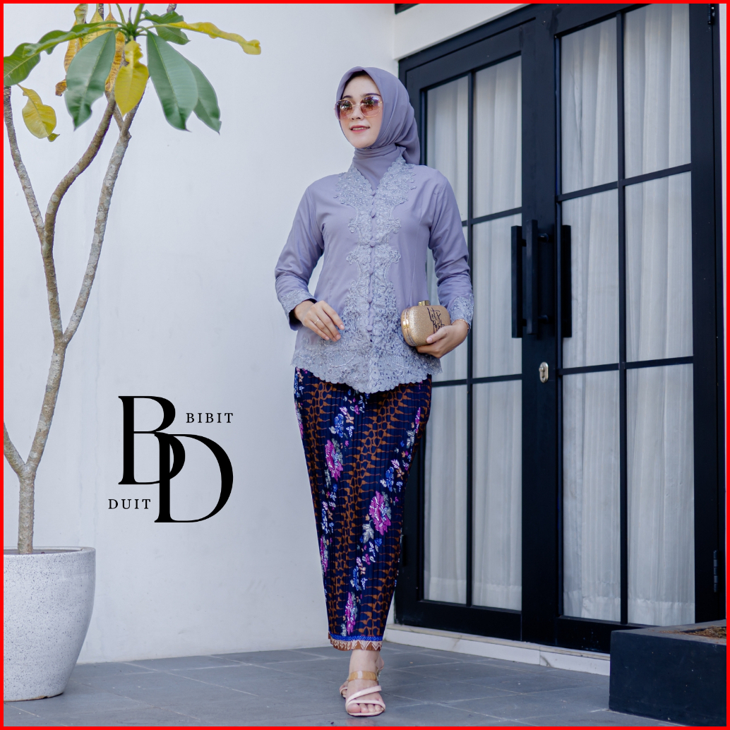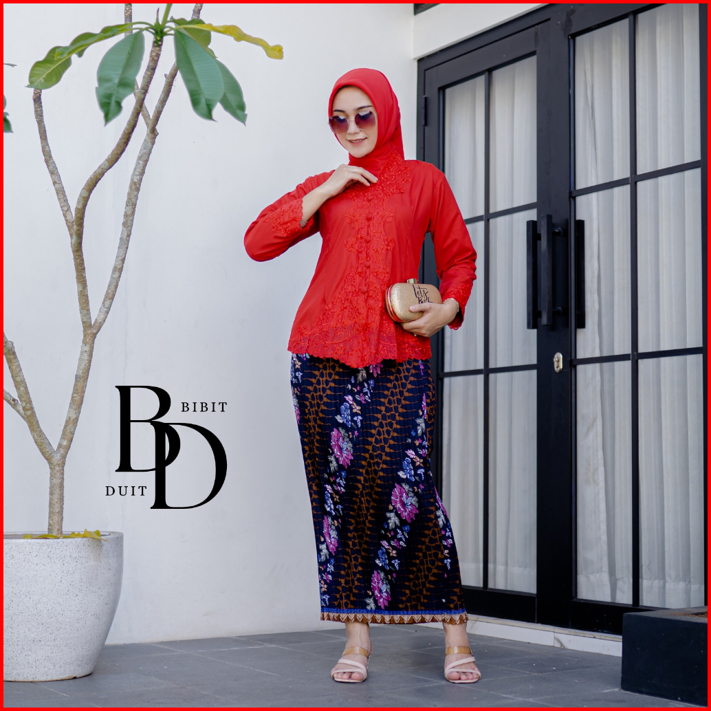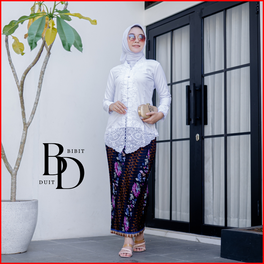 Baju Atasan Kebaya Encim Bordir Modern Jumbo Motif Bunga Lengan Panjang Bahan Katun