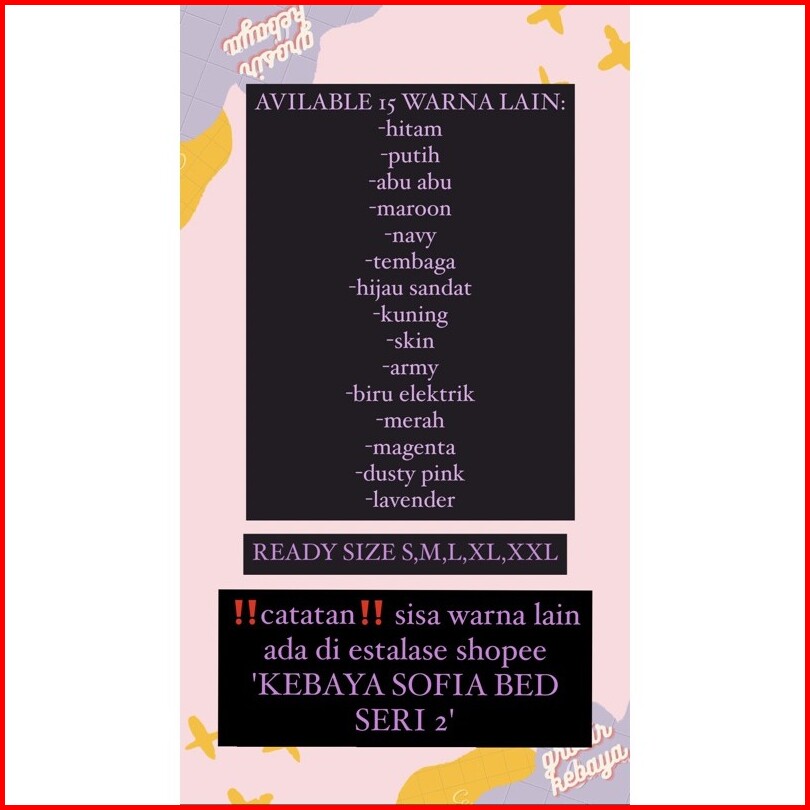 Hitam, Putih, Abu, Maroon, Navy, Tembaga, Kuning, Putih tulang