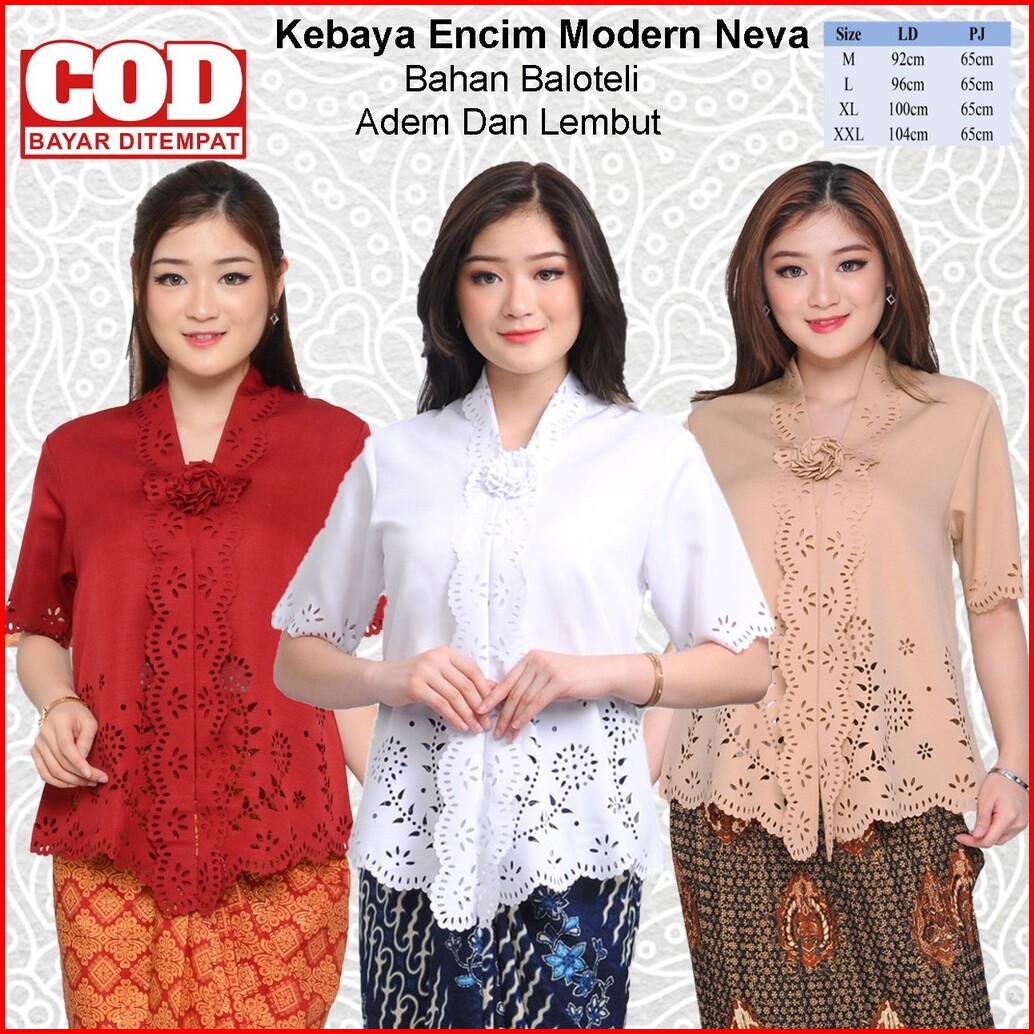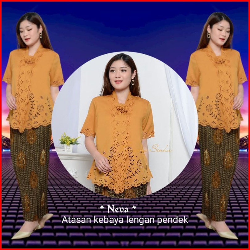 Promo Kebaya Encim Modern Laser Neva Lengan Pendek Cut Good Qualiti