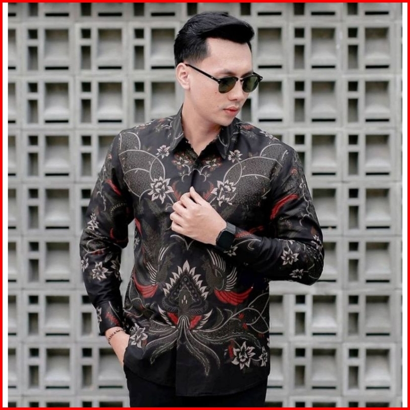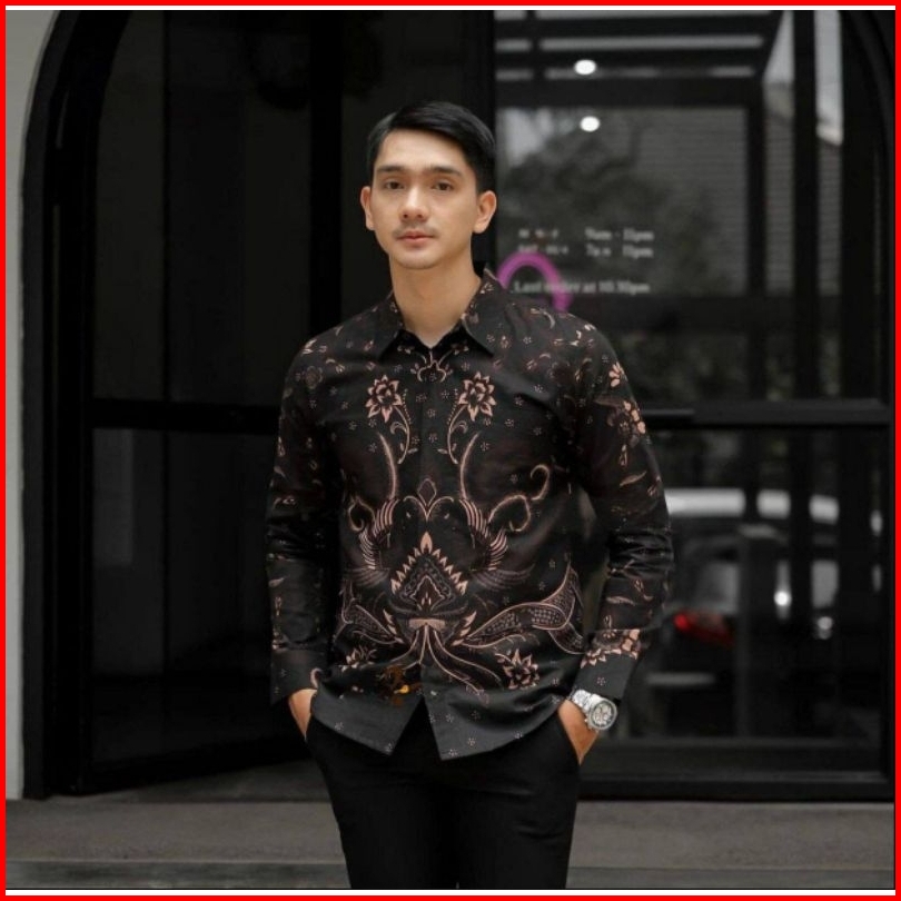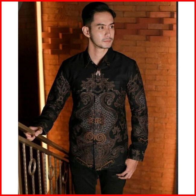 Kemeja Batik Pria Lengan Panjang Size M L Xl Xxl Bswart Batik Hrb026 Kenongo Hem Panjang Padi