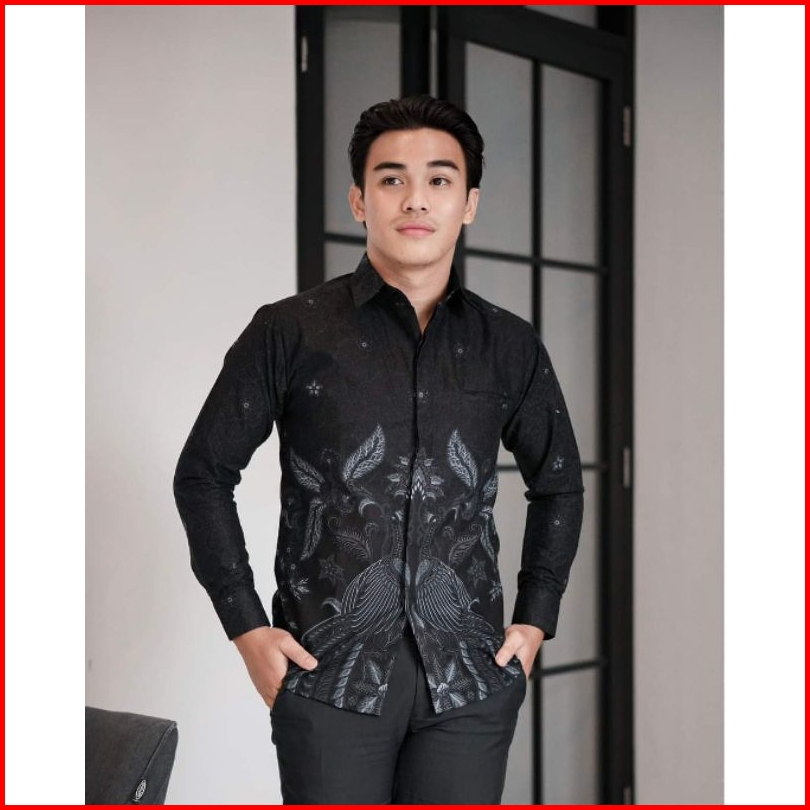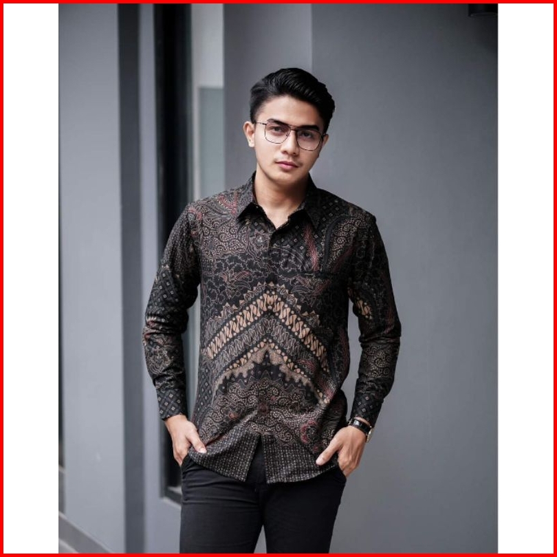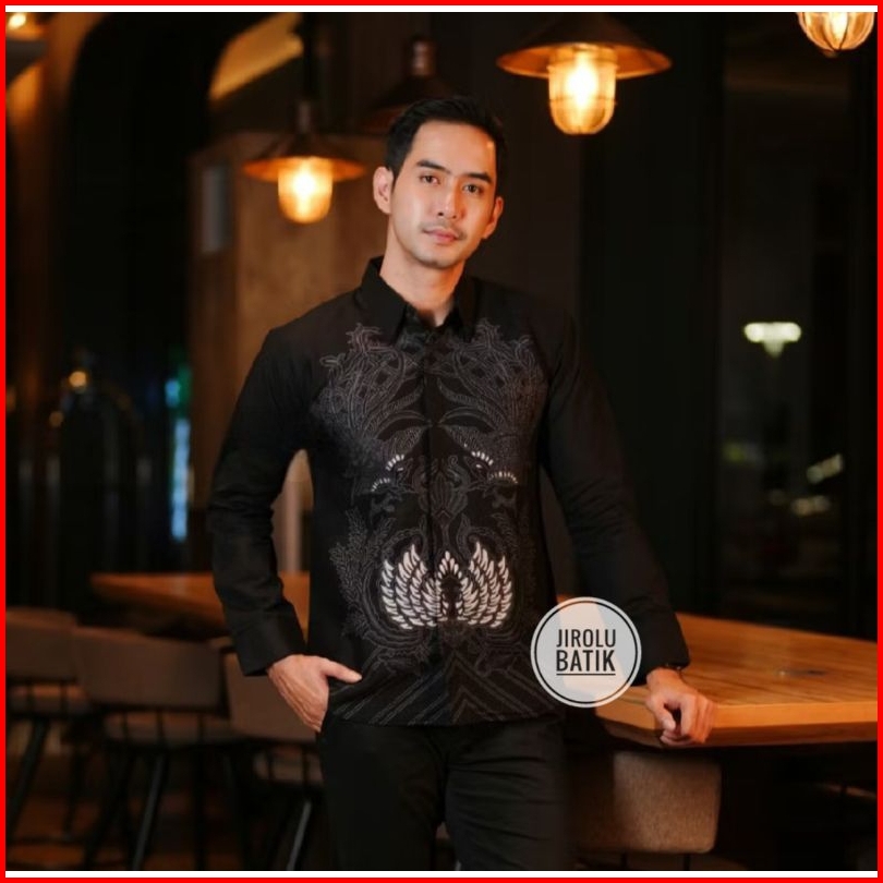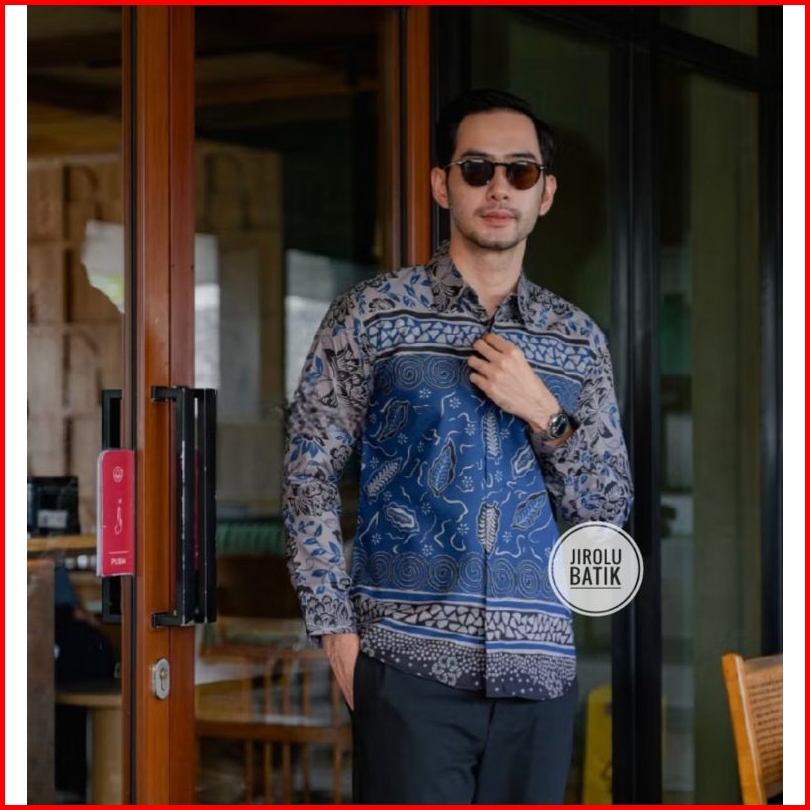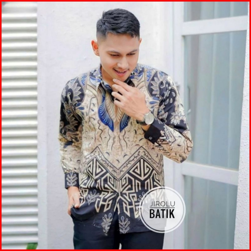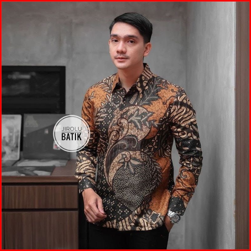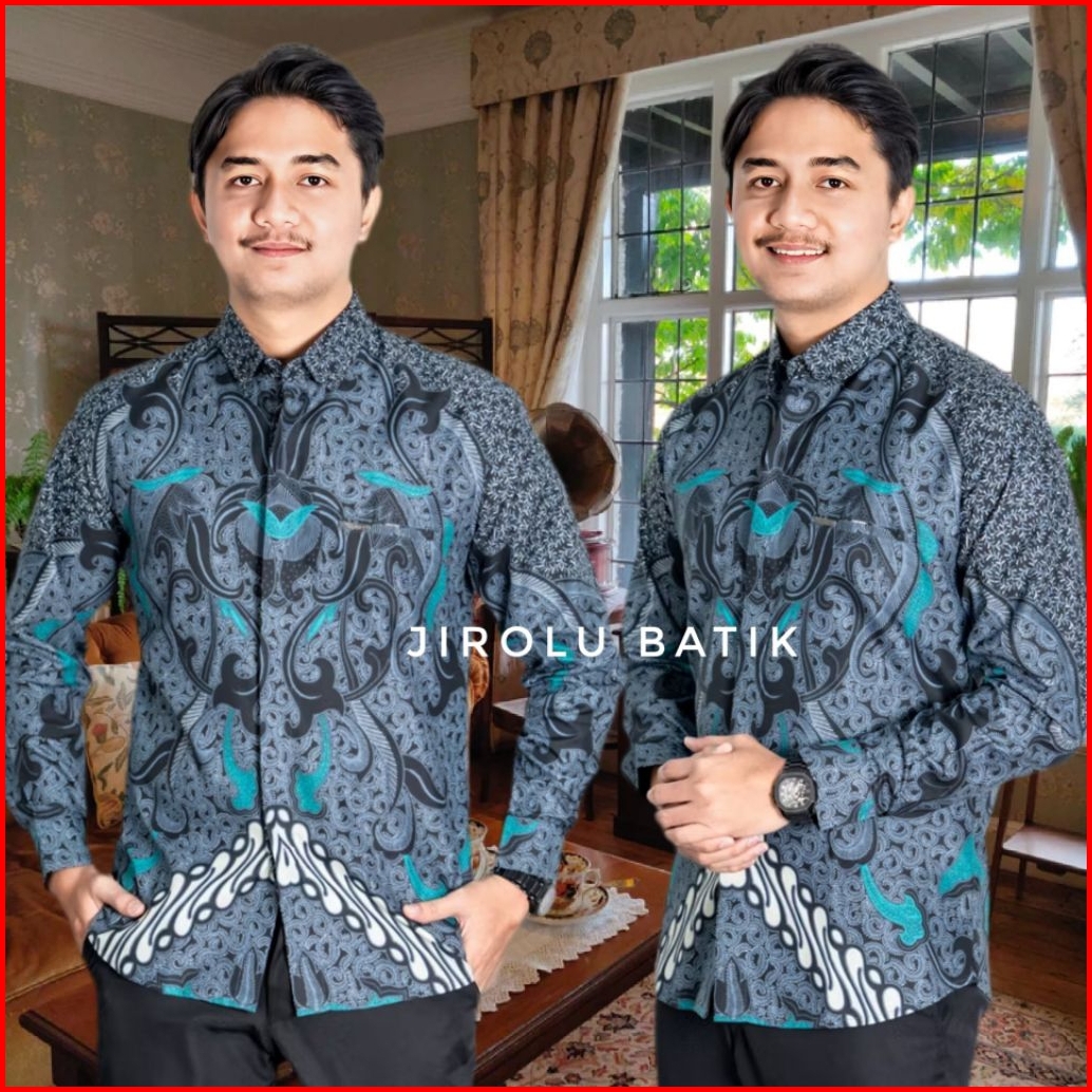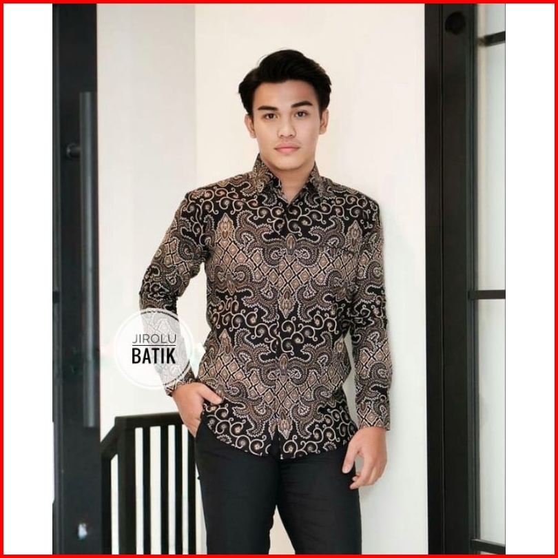 Jirolu Batik Pria Lengan Panjang Batik Modern Hrbo26 Motif Keratonan Kode 002 Baju Atasan Kemeja