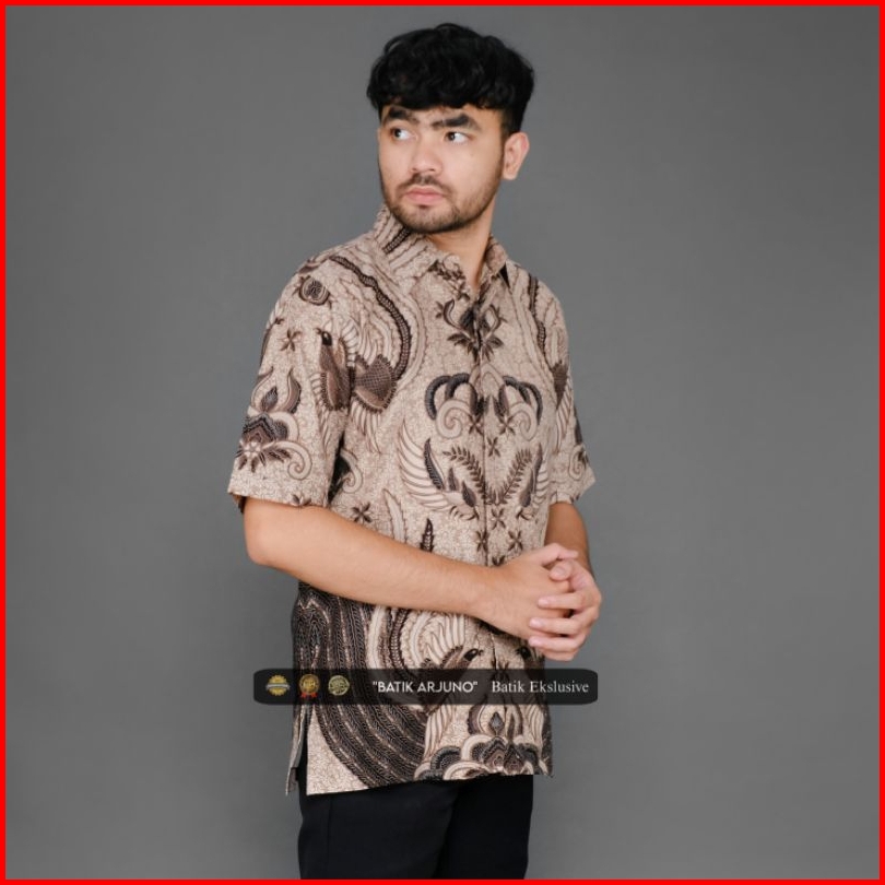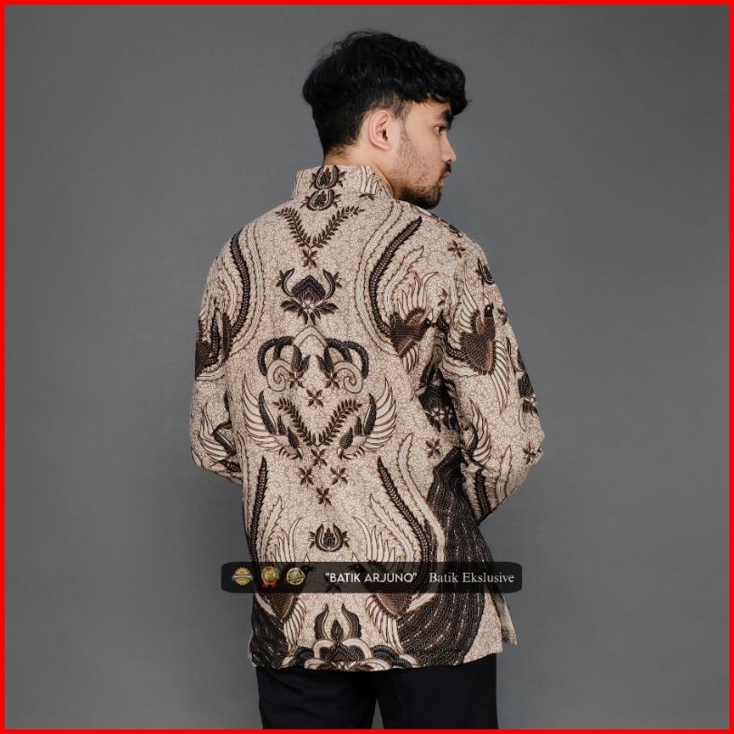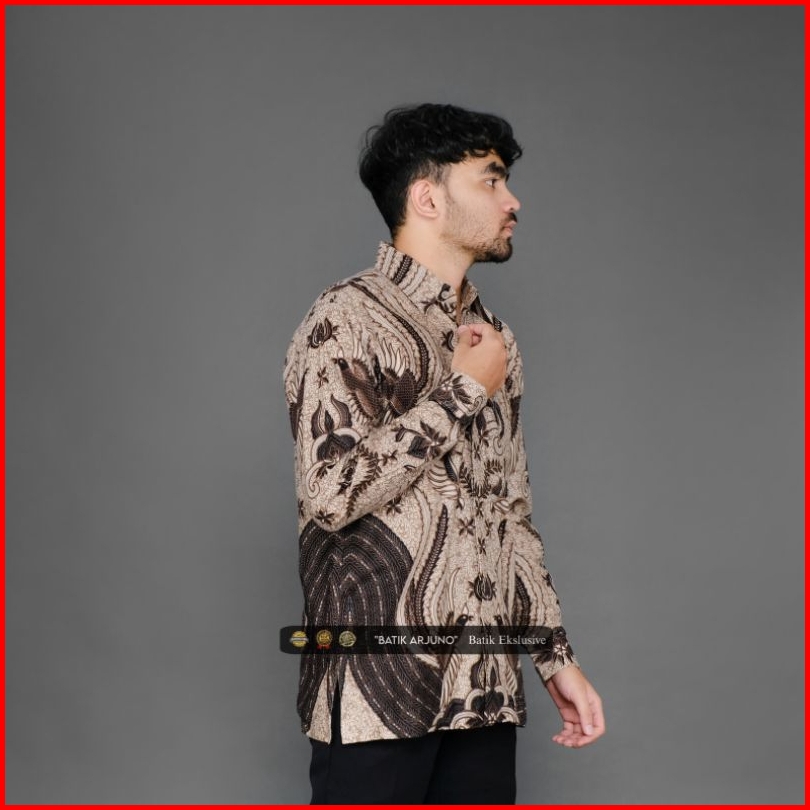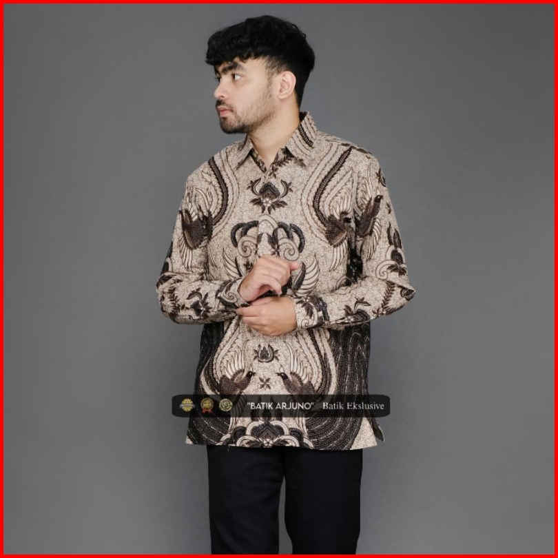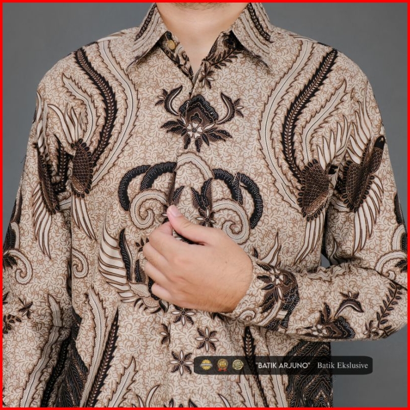 Kemeja Baju Batik Pria Katun Lengan Panjang Lapis Furing Coksu Ivory