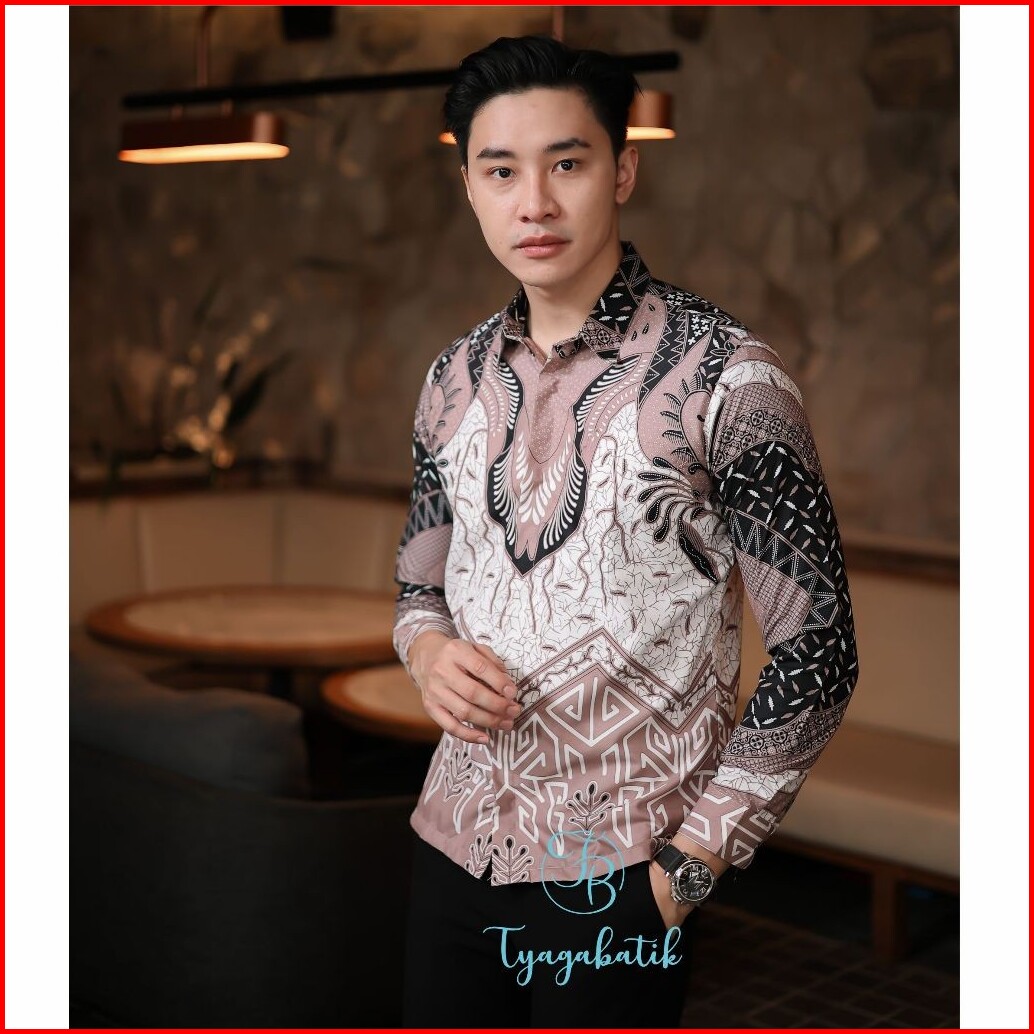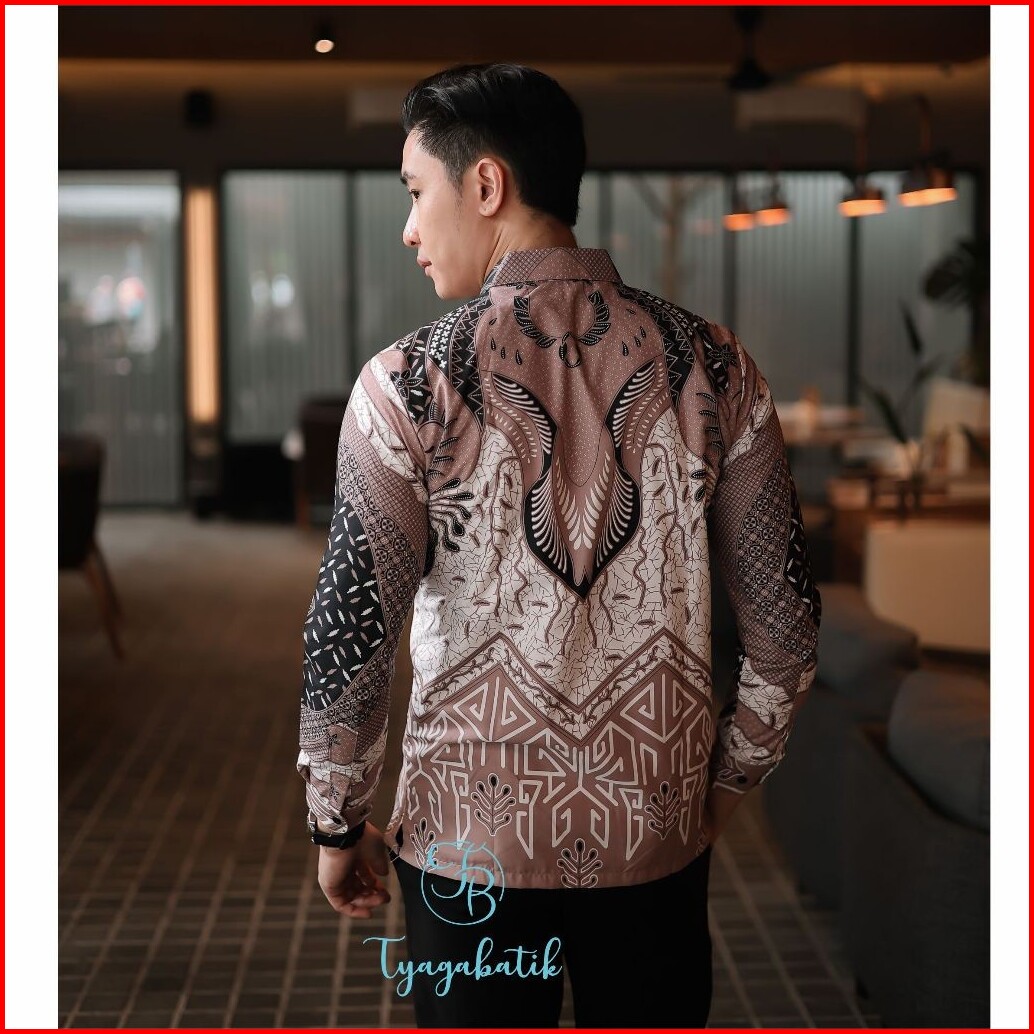 Kemeja Batik Pria Baju Lengan Panjang Slimfit Lapis Furing Batik Tyaga 0176 Bahan Katun Premium Elegan Motif Formal Warn