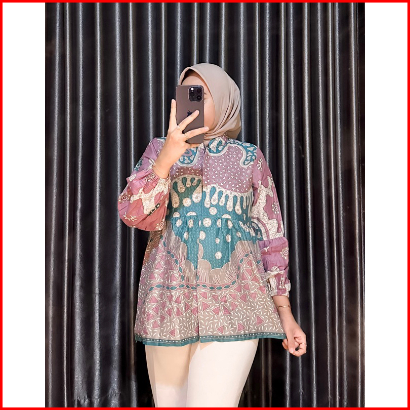 Tey-17 Batik Wanita Asj Sa Hrb026 Kenongo Kemeja Tosca Pendek