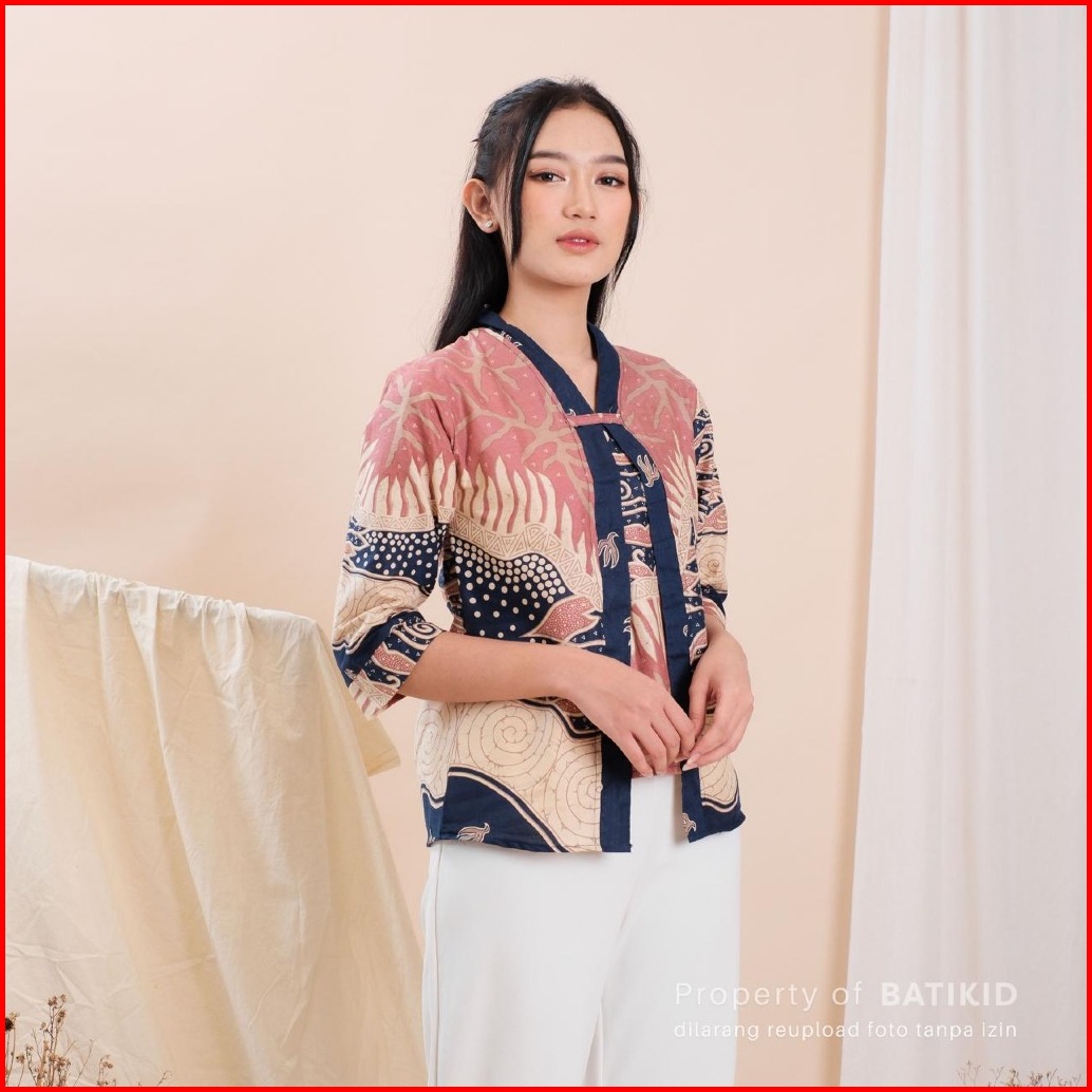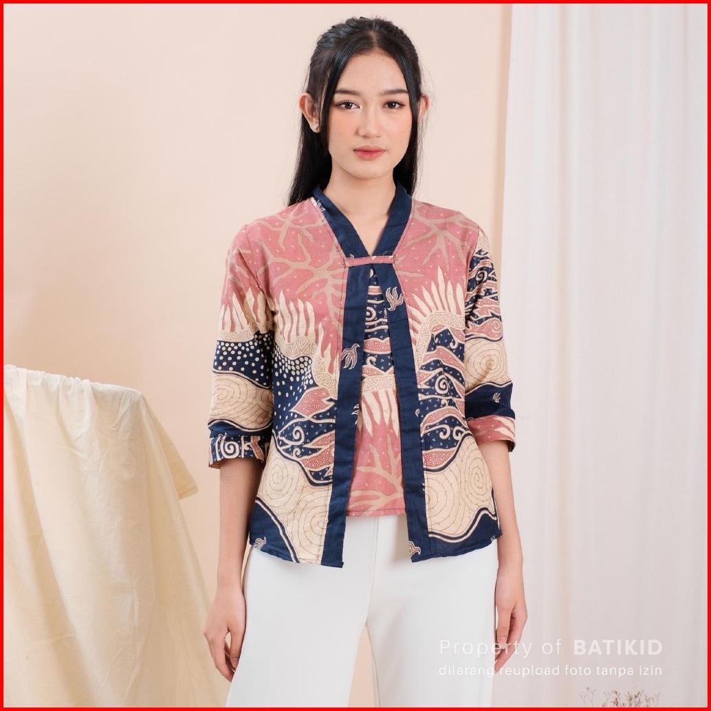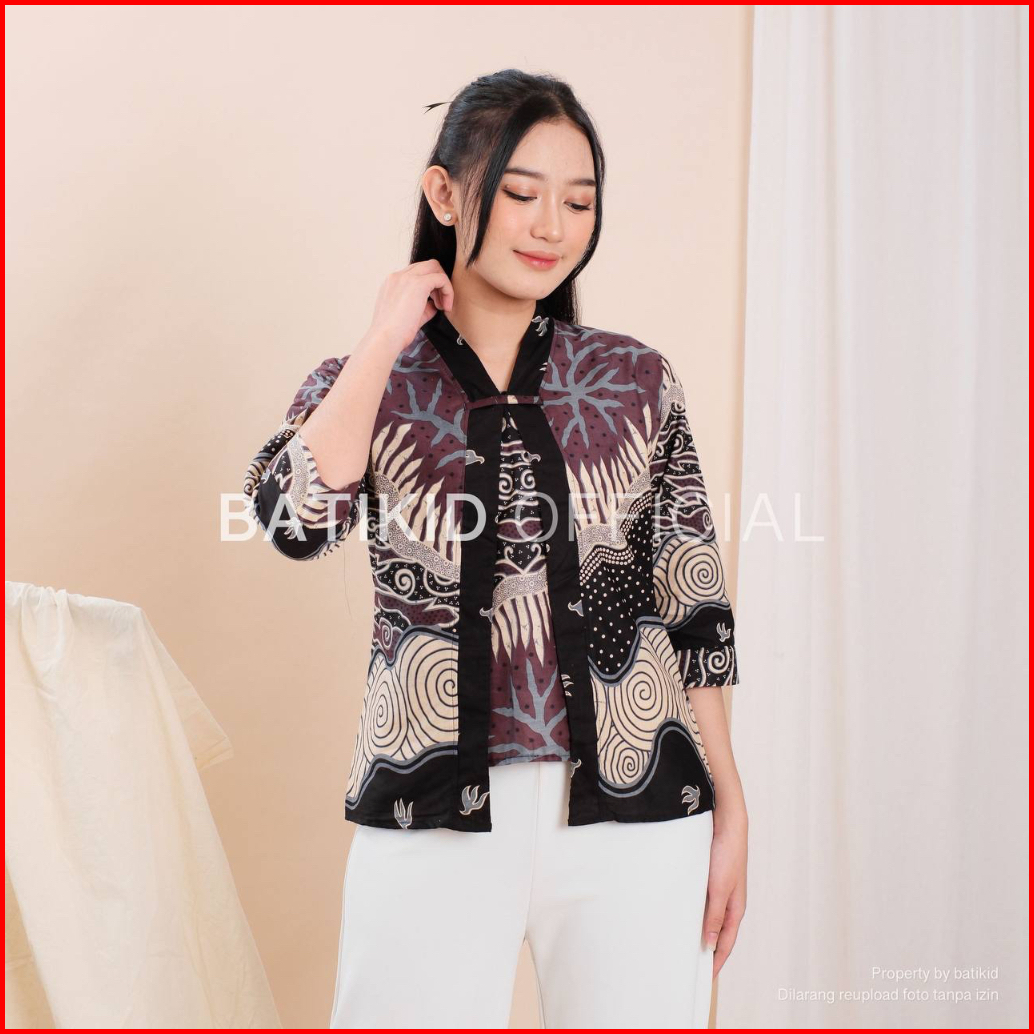 Batikid Atasan Batik Wanita Lengan 3 4 Baju Batik Kerja Casual Bahan Katun Asli Rumput Laut