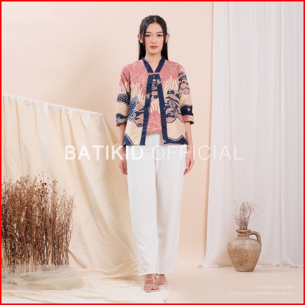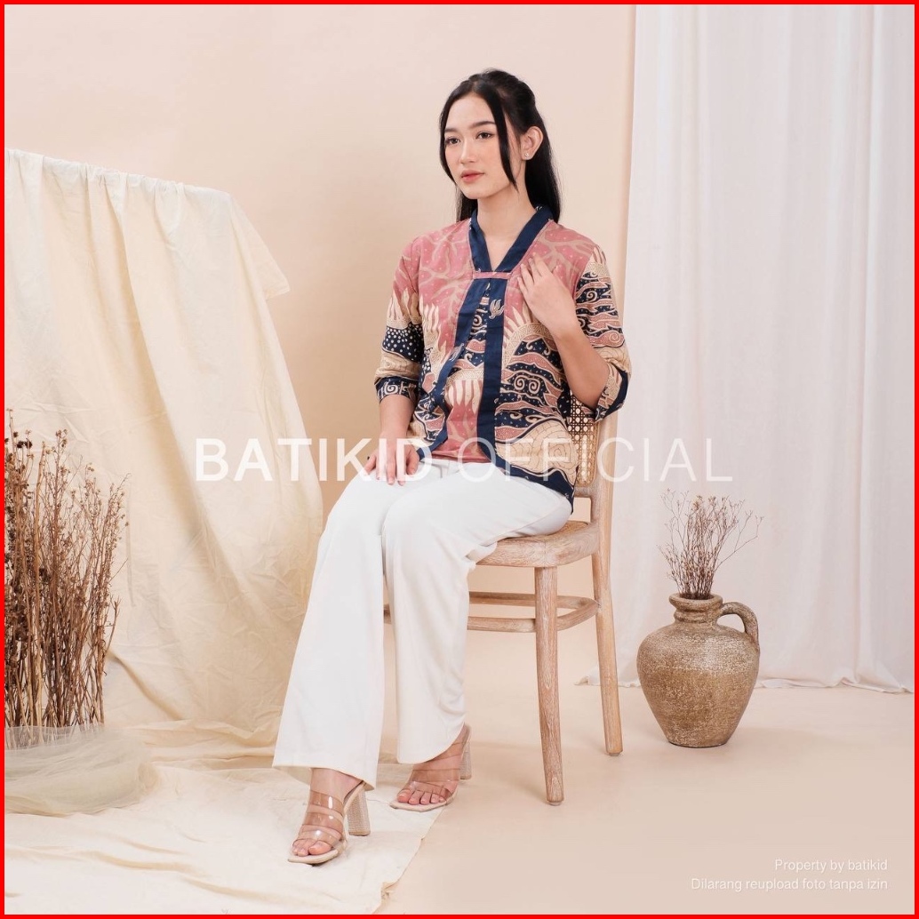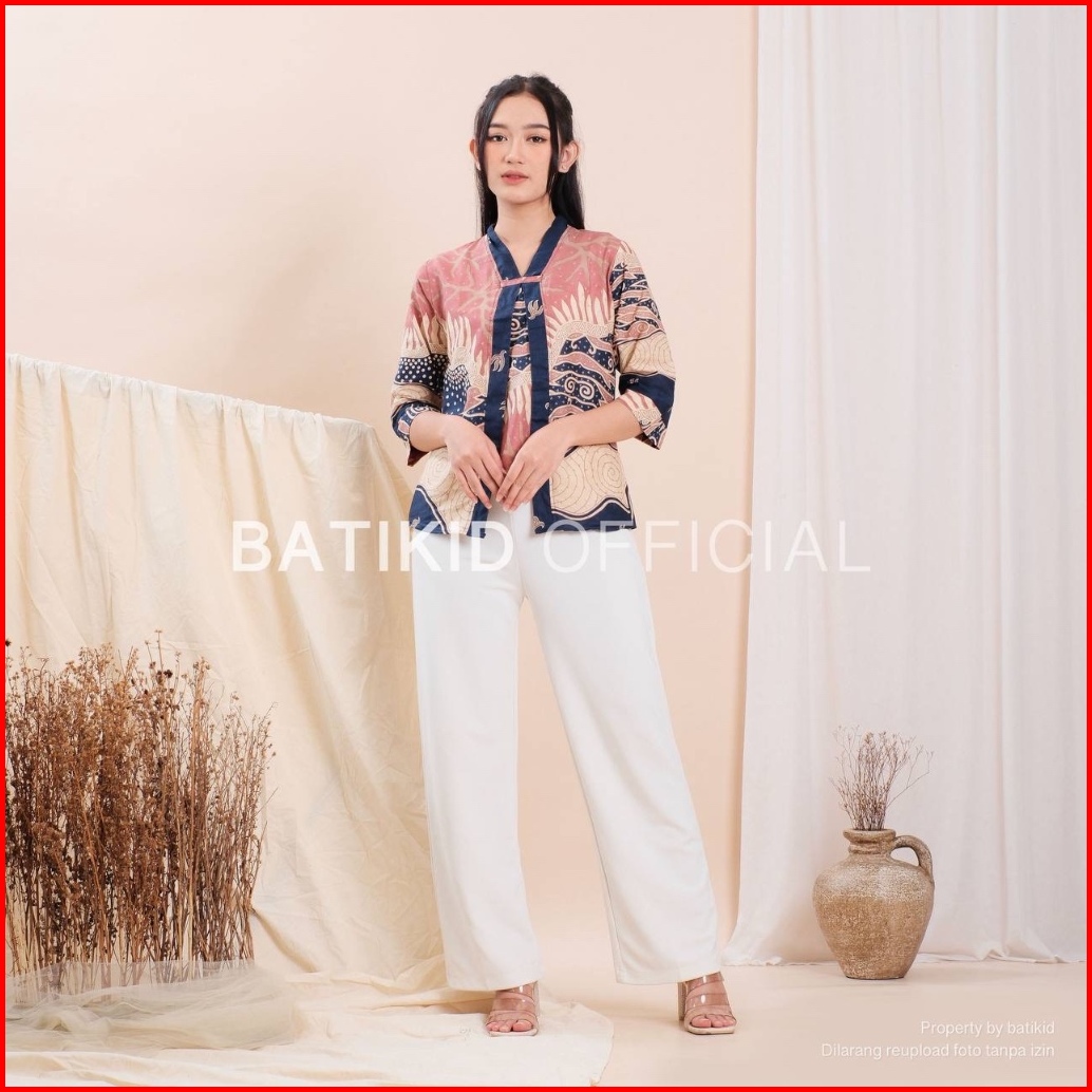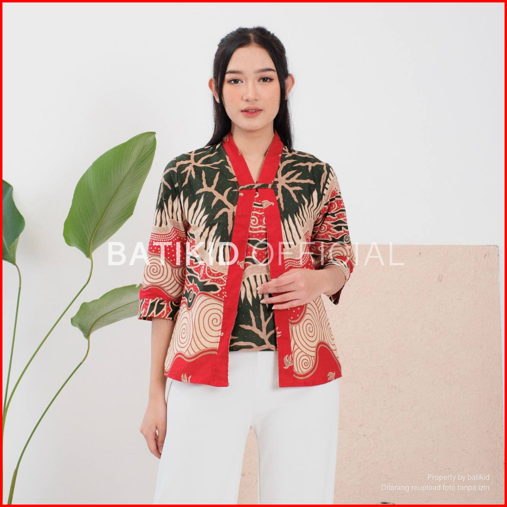 Batikid Atasan Batik Wanita Lengan 3 4 Baju Batik Kerja Casual Bahan Katun Asli Rumput Laut