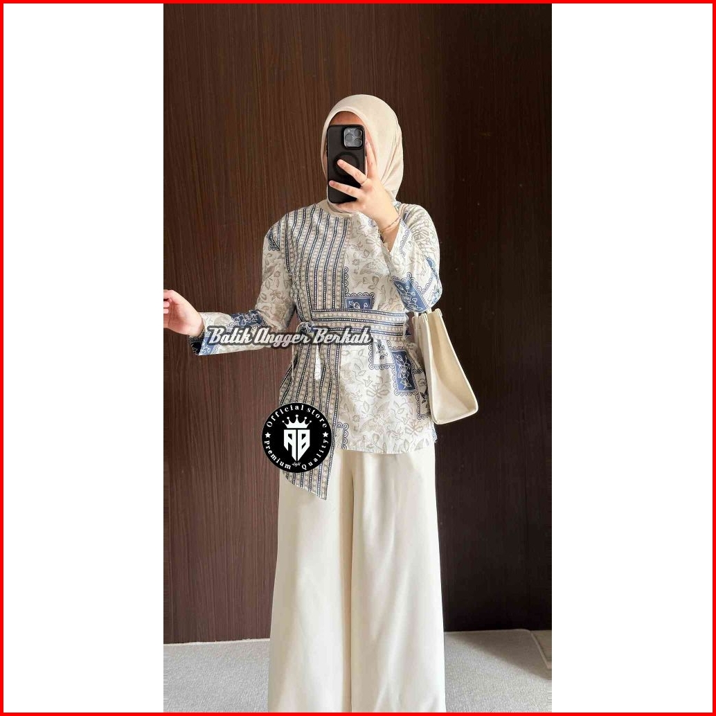Baju Atasan Batik Wanita Seragam Kerja Kantor Kekinian Lengan Panjang