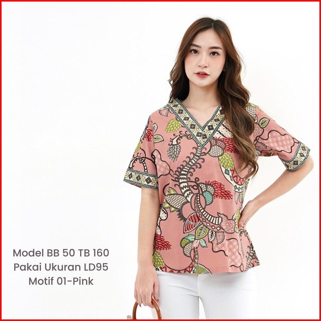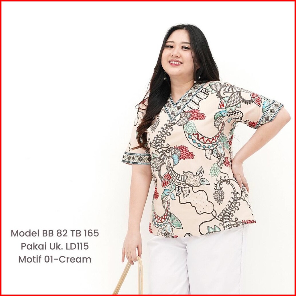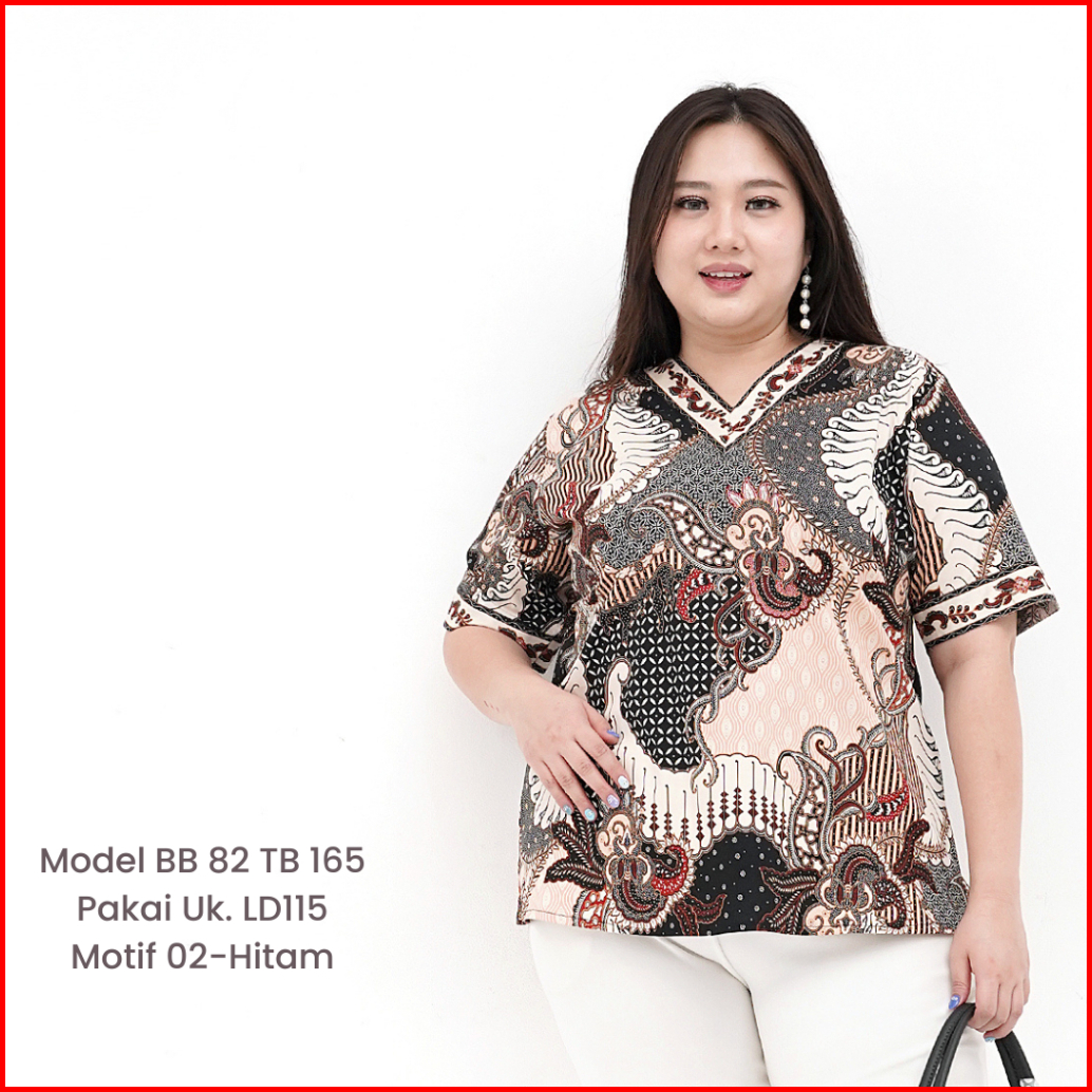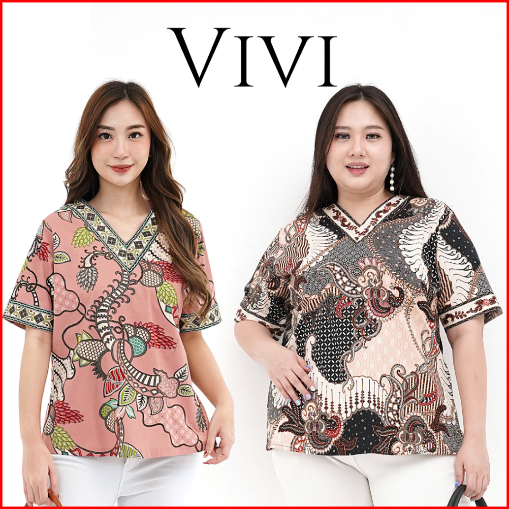 Vivi Ld95 105 115 125 Atasan Batik V-neck Wanita Lengan Pendek Katun Stretch Premium Jumbo Bigsize