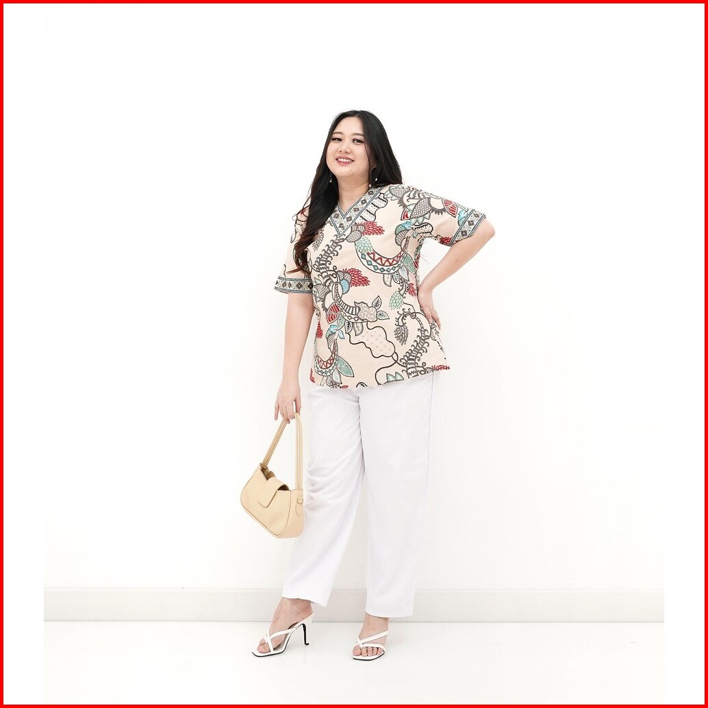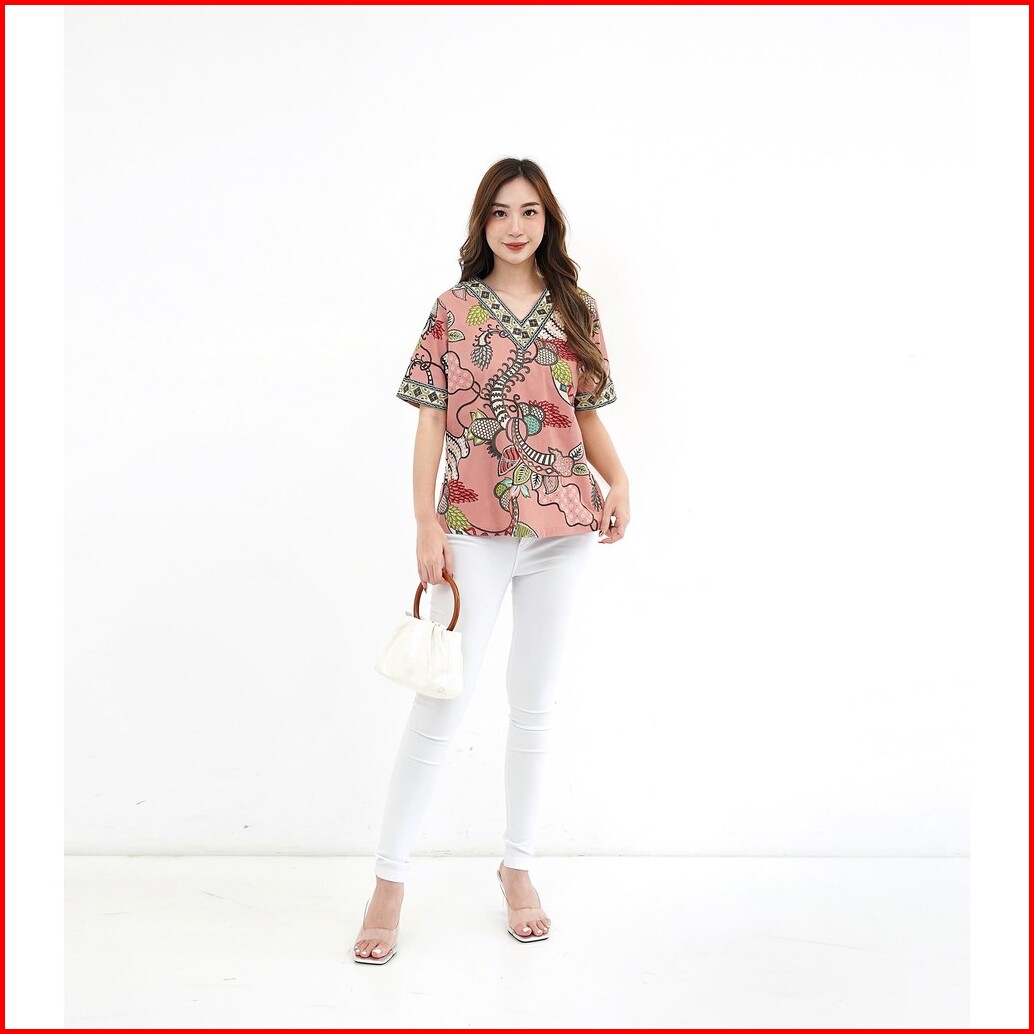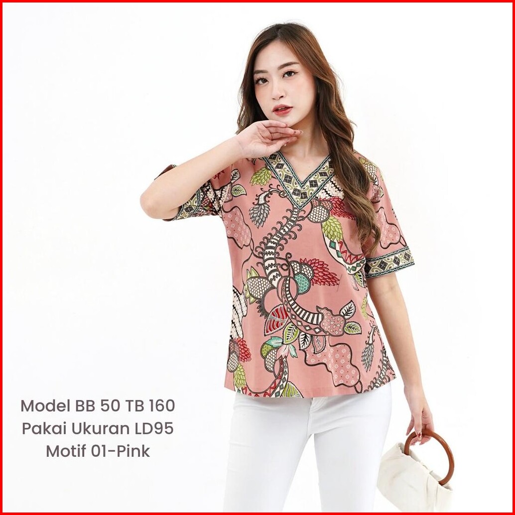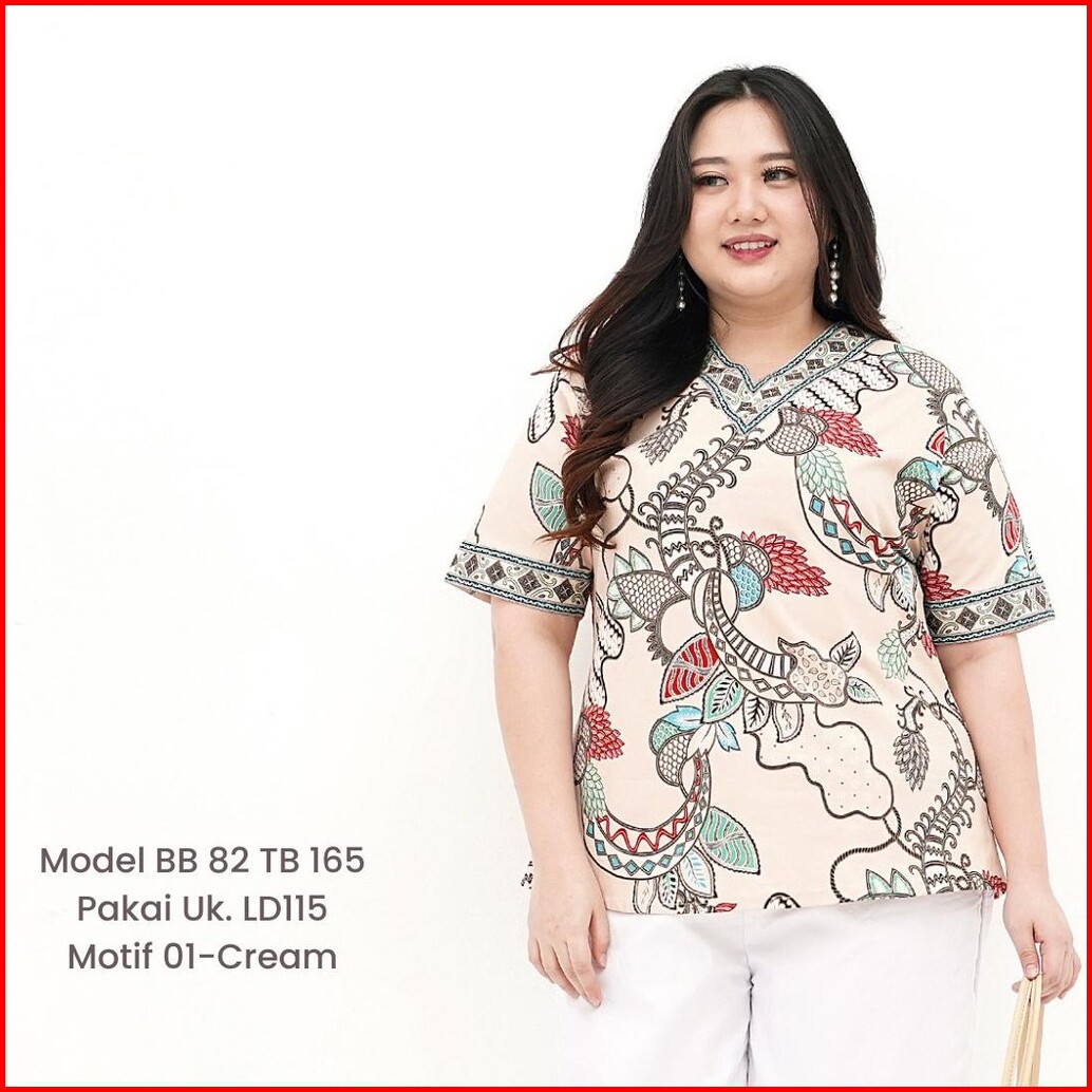 Vivi Ld95 105 115 125 Atasan Batik V-neck Wanita Lengan Pendek Katun Stretch Premium Jumbo Bigsize