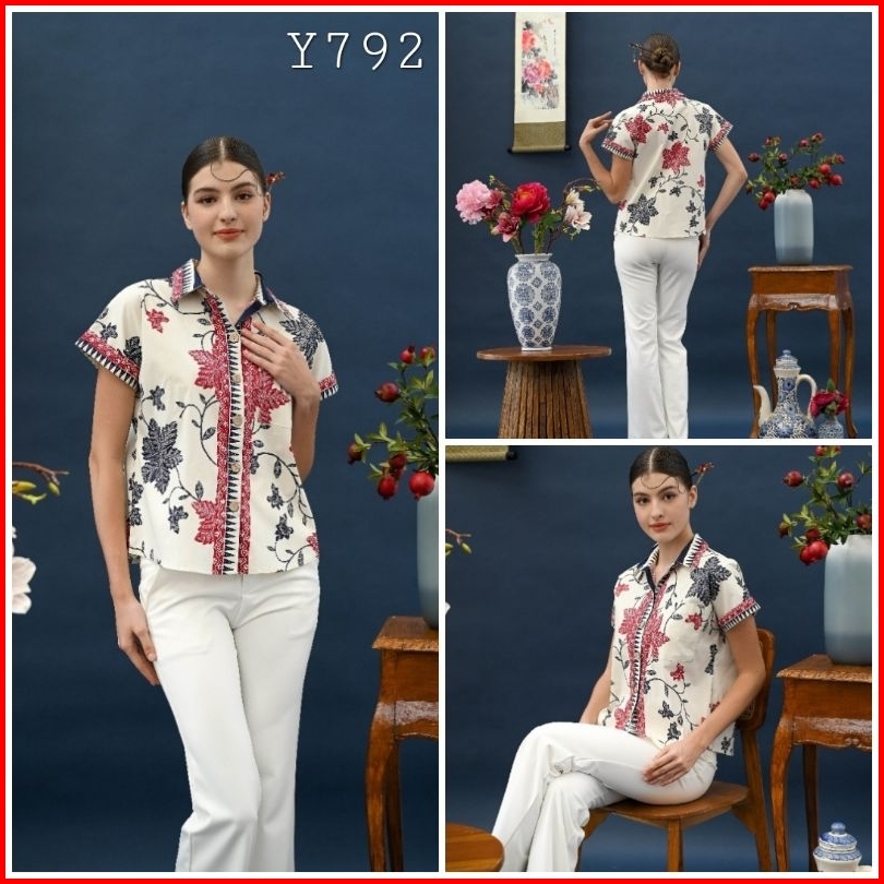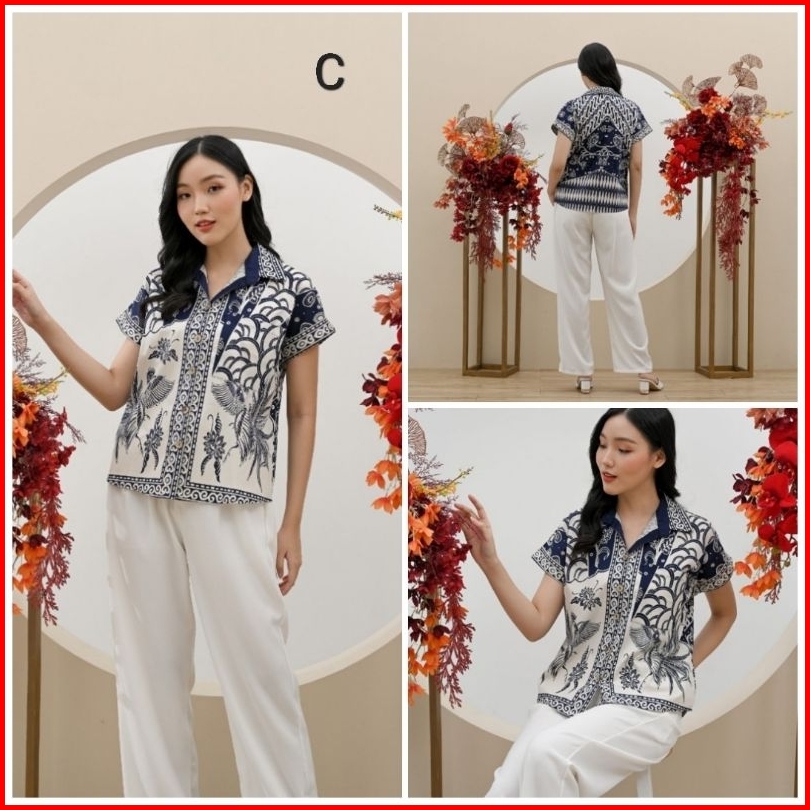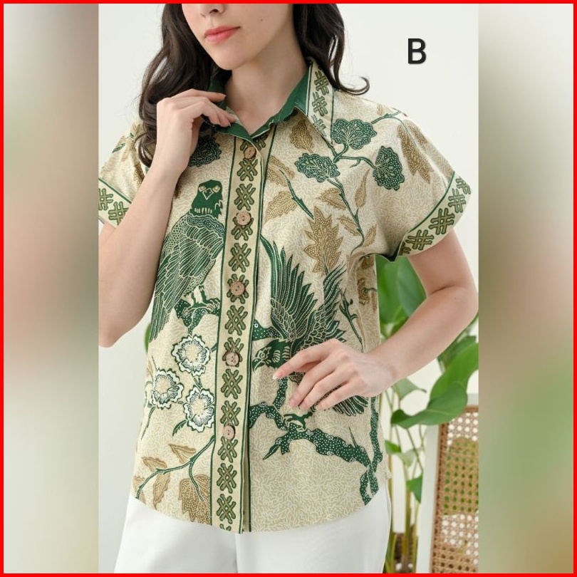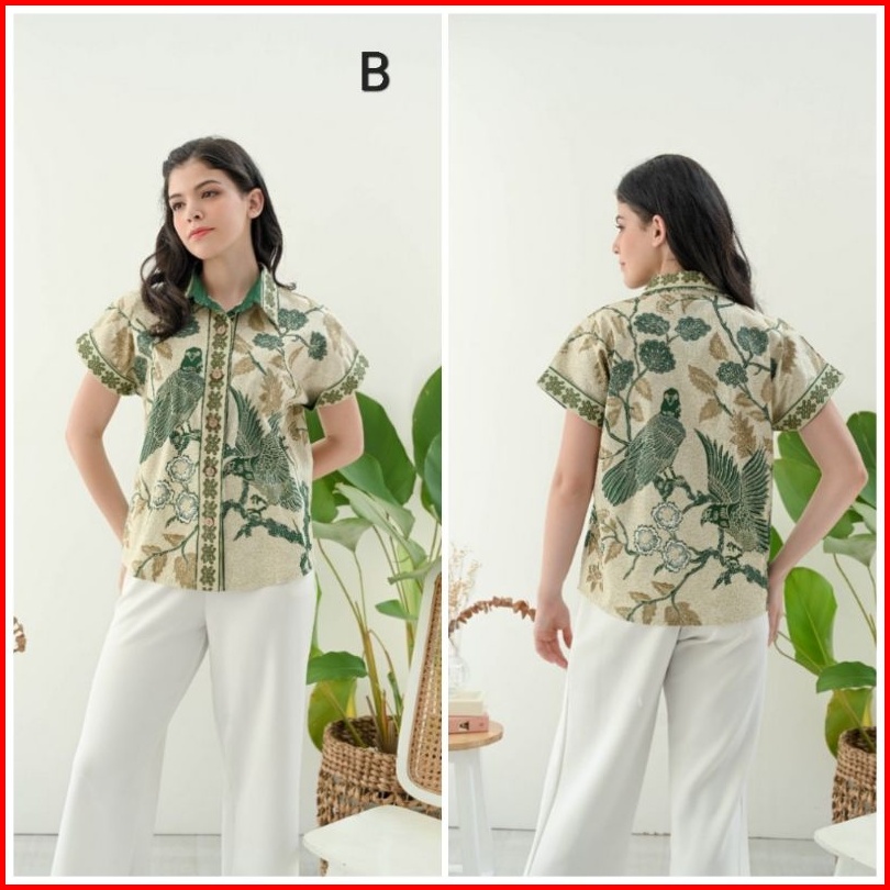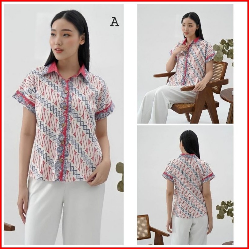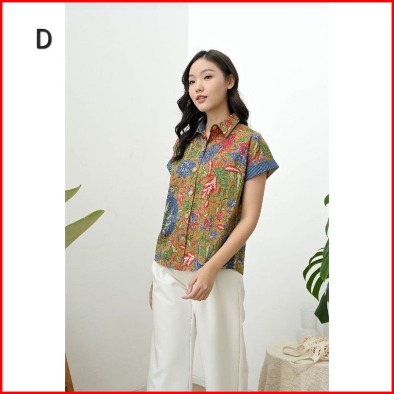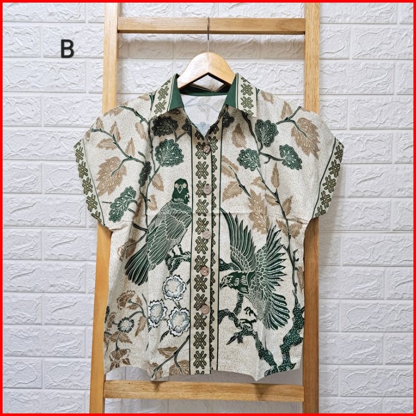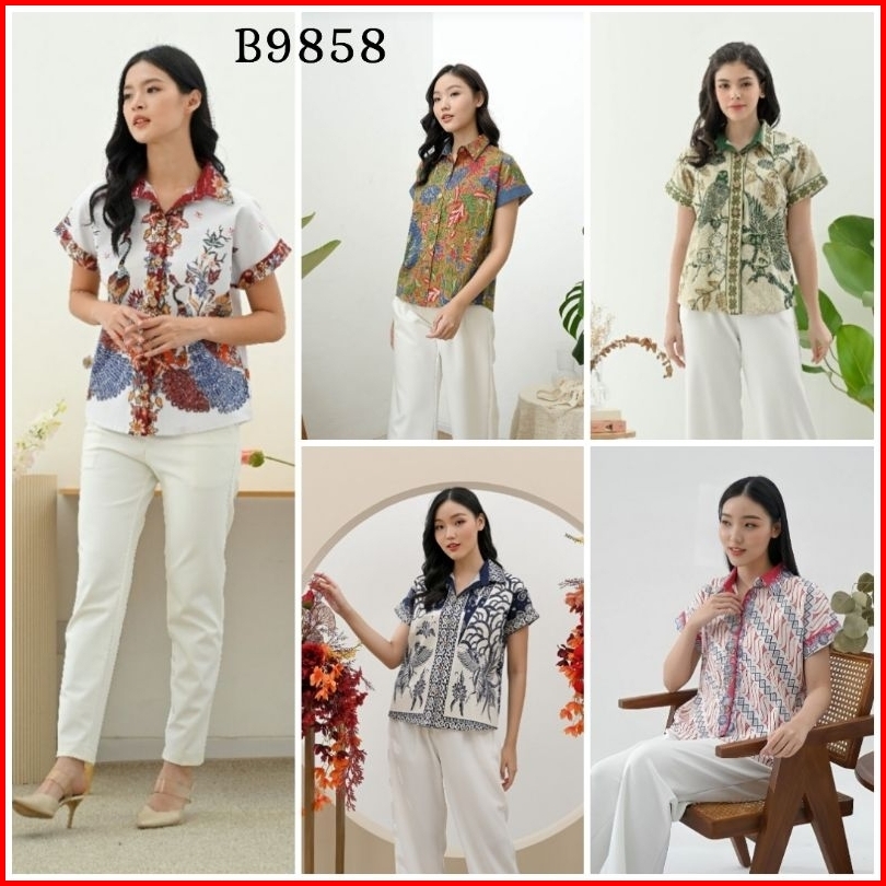 B9858 Kemeja Batik Wanita Lengan Pendek Baju Atasan Wanita Blouse Batik Modern