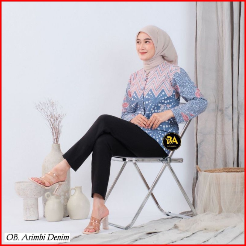 Batik Wanita Kerja Seragam Kantor Modern Busui Lengan Panjang
