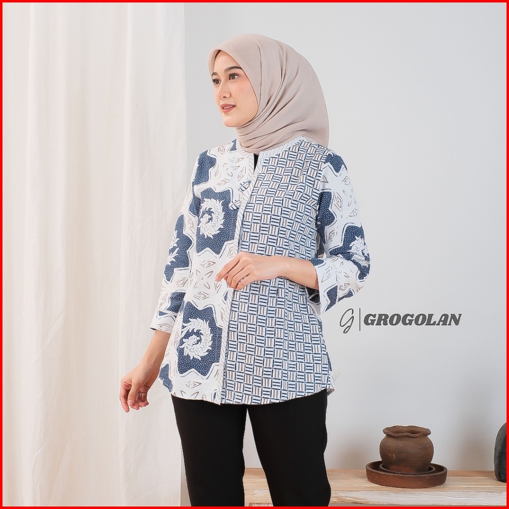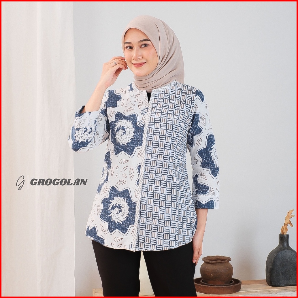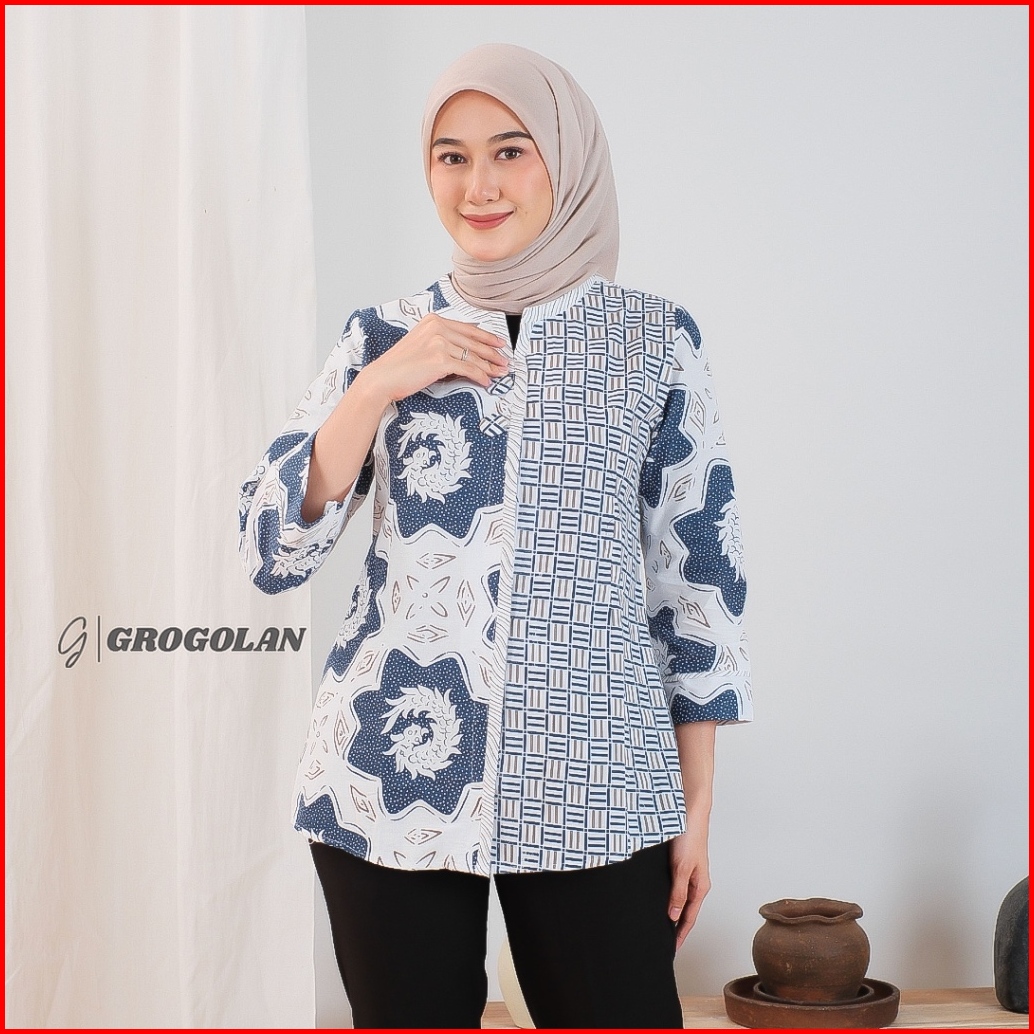 Grogolan Blouse Batik Kerja Atasan Wanita Motif Shella