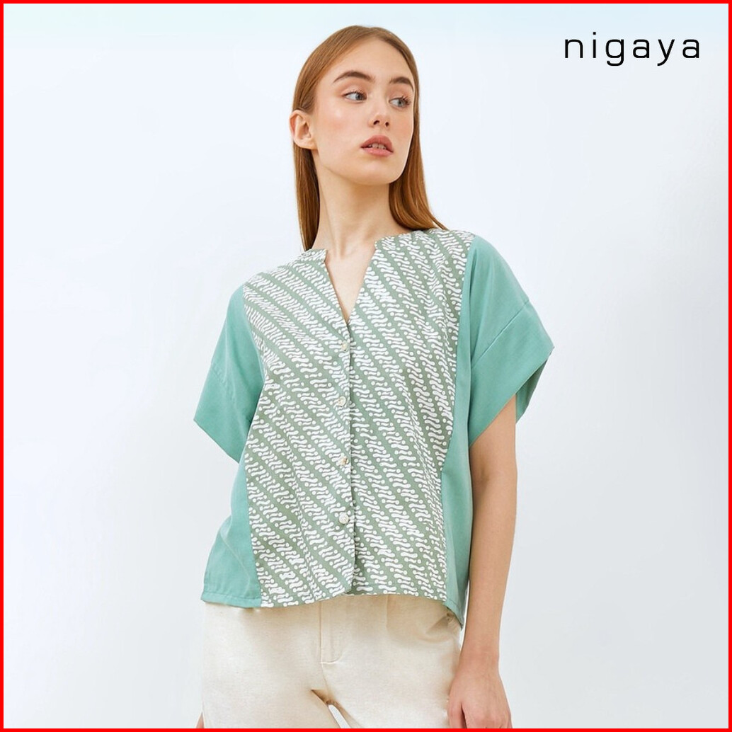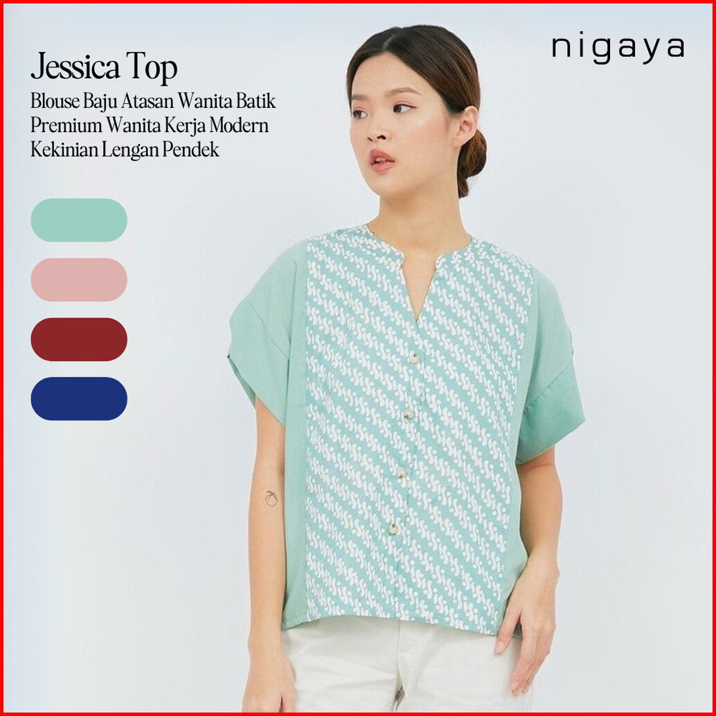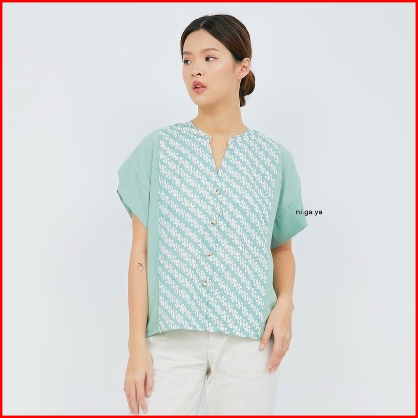 Nigaya - Jessica Top - Blouse Baju Atasan Wanita Batik Premium Wanita Kerja Modern Lengan Pendek