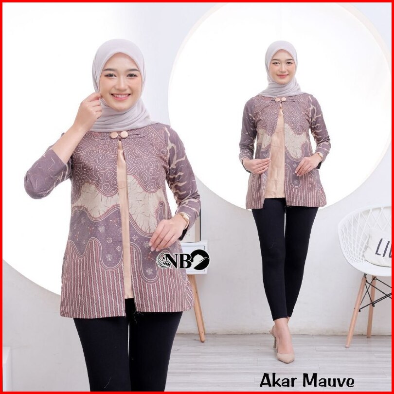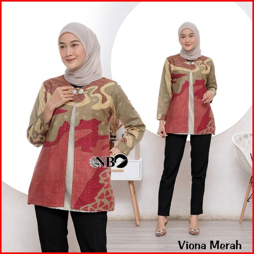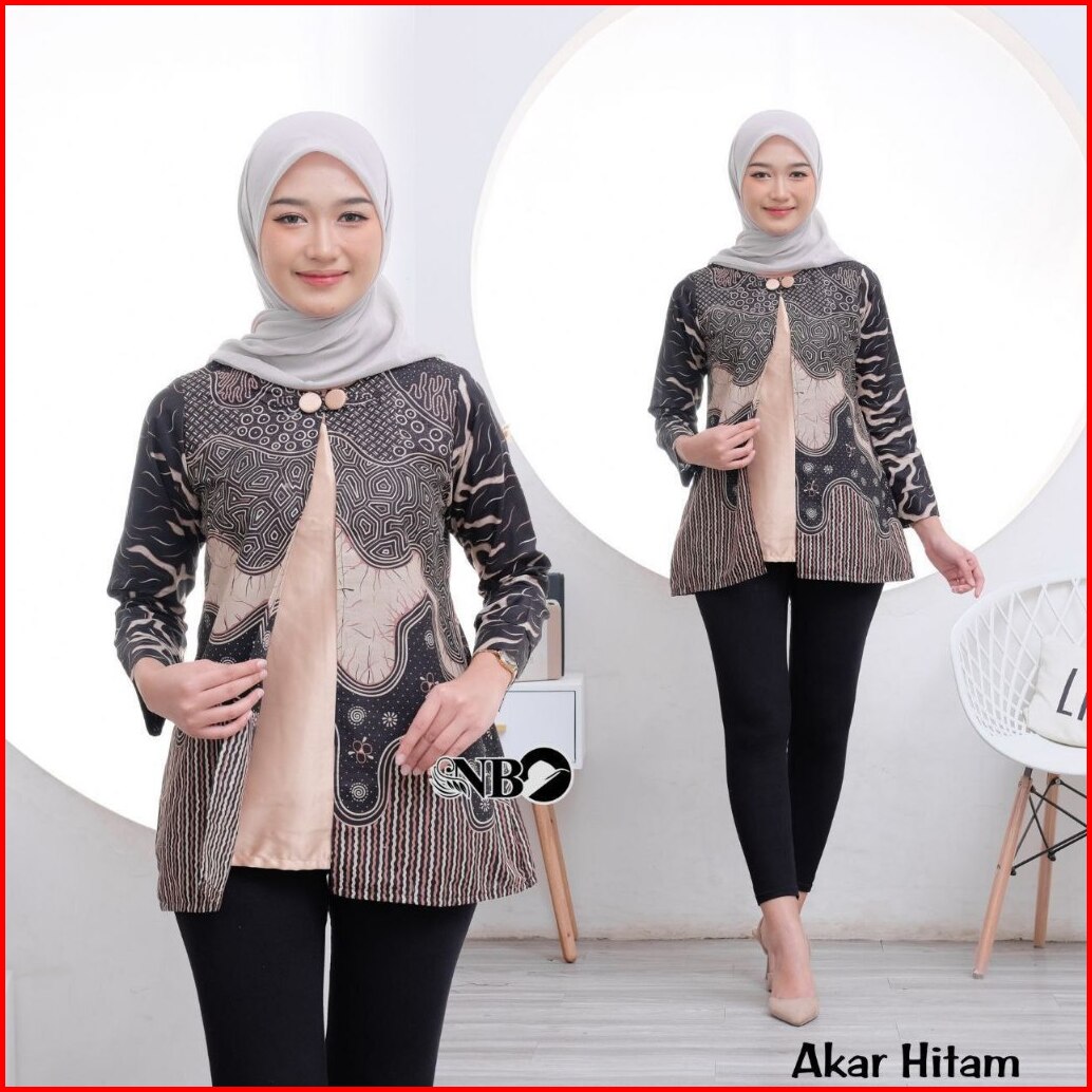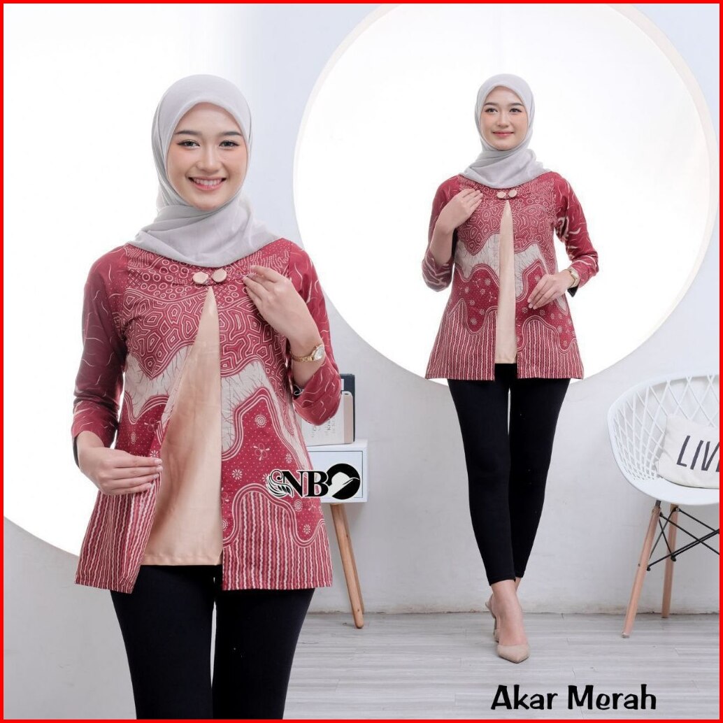 Batik Wanita Modern Lengan Panjang Atasan Tradisional Kerja Kantor Seragam