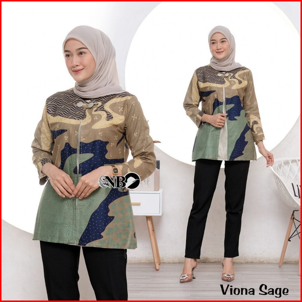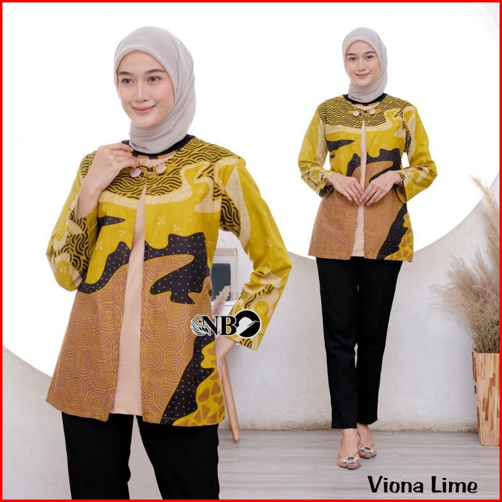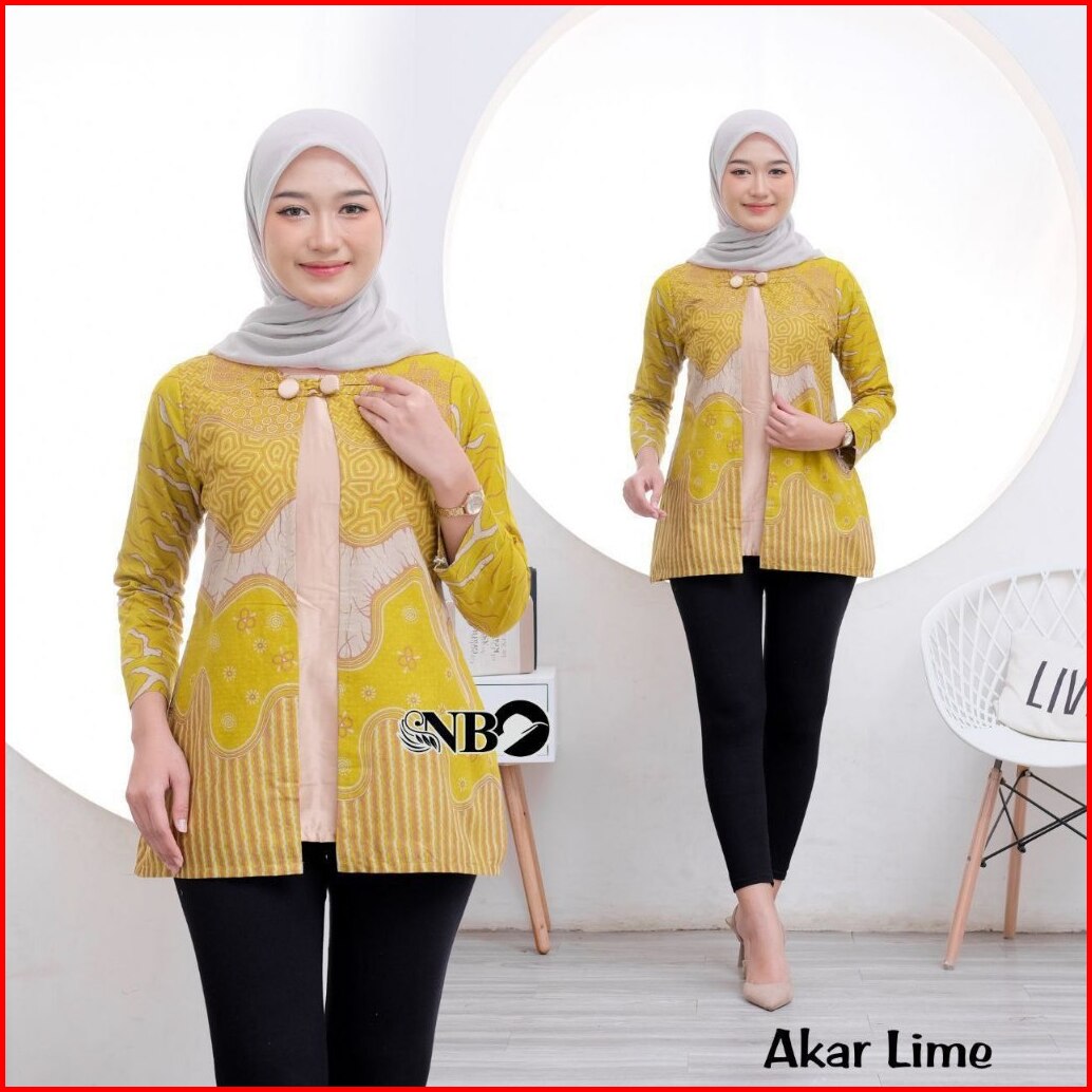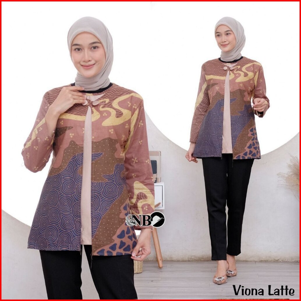 Batik Wanita Modern Lengan Panjang Atasan Tradisional Kerja Kantor Seragam