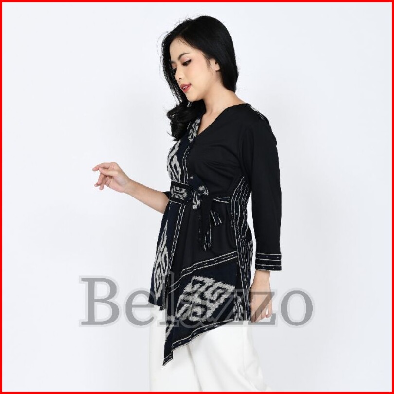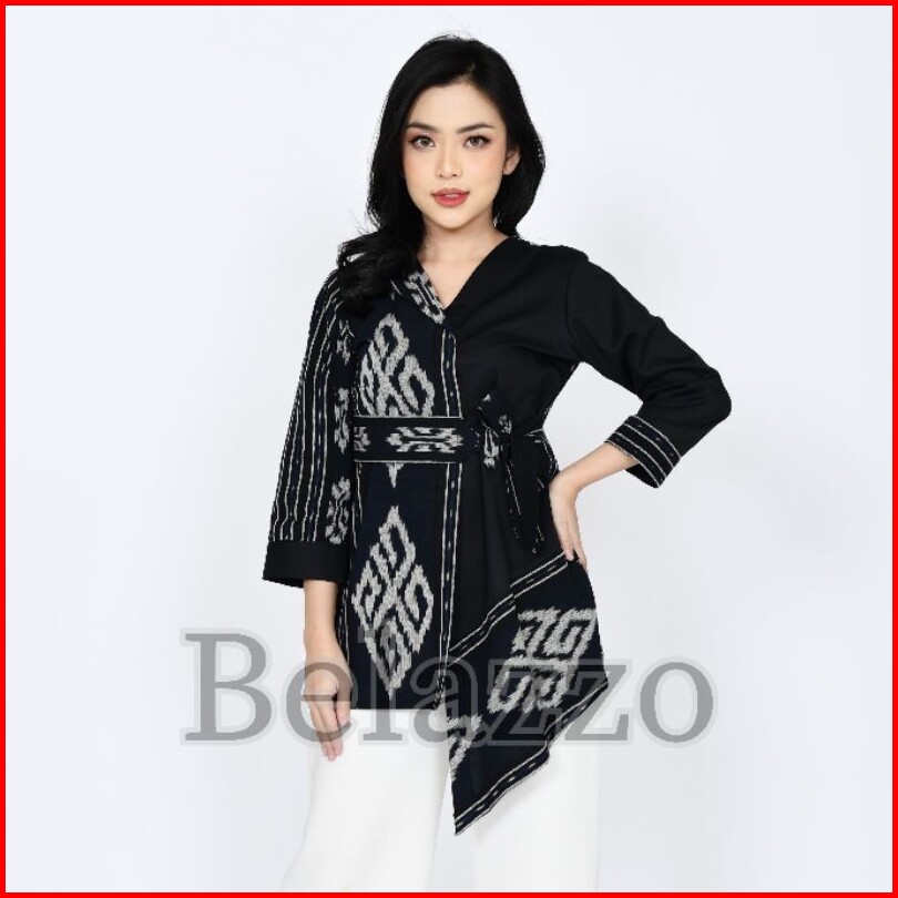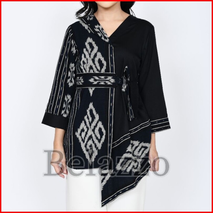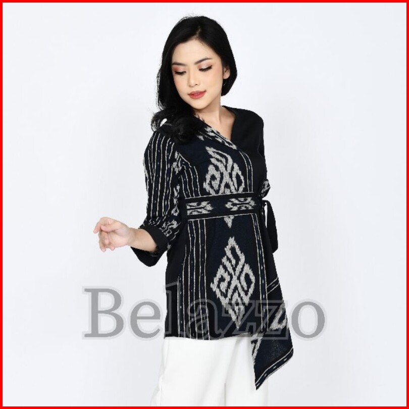 Baju Atasan Blouse Batik Tenun Etnik Wanita Modern Warna Hitam Terbaru - Baju Tenun Wanita - Blus Tenun Wanita Jepara -