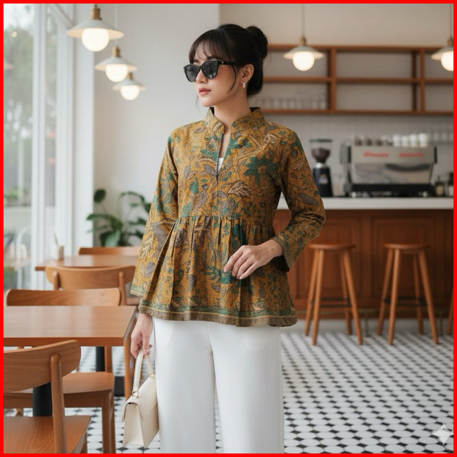 Shanaya Baju Batik Wanita Blus 3 Negeri Kuning Lawasan Batik Printing Modern Batik Resmi Batik Kerja Zipper Depan Semi P