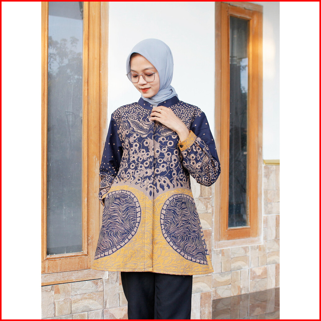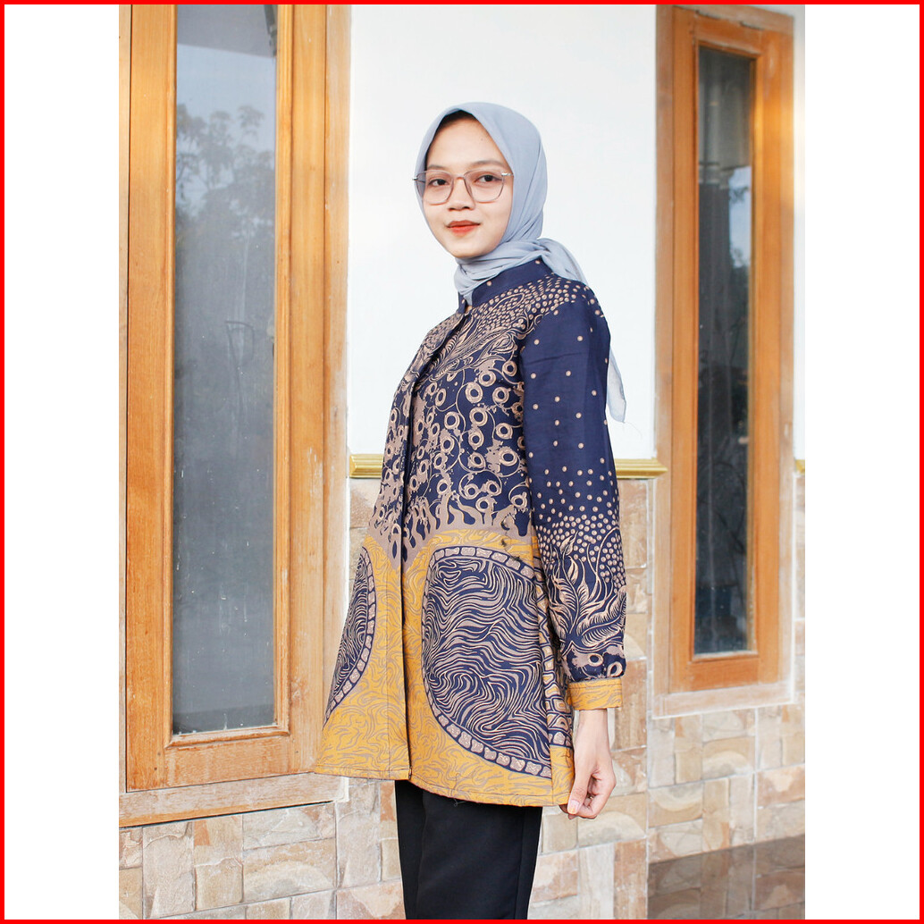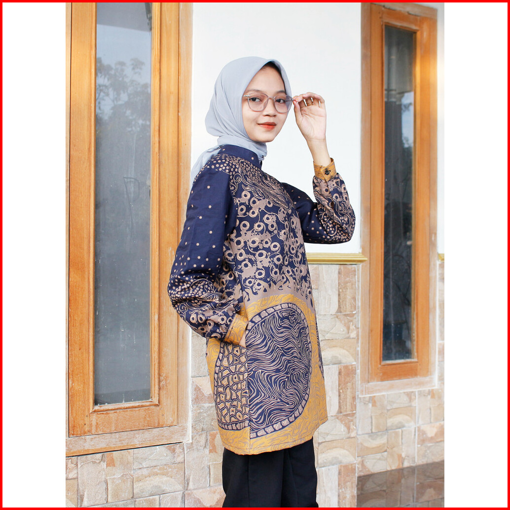 Naraya Blouse Atasan Baju Batik Wanita Kerja Kantor Modern Kekinian Bahan Katun Halus Premium
