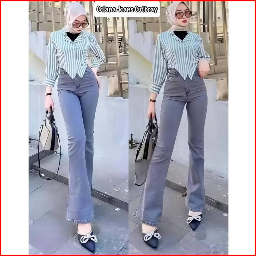 Celana Highwaist Cutbray Jeans Wanita - Celana Panjang Denim Cutbray Melar Nyaman Kaki Basic - Highwaist Cutbray Loose W