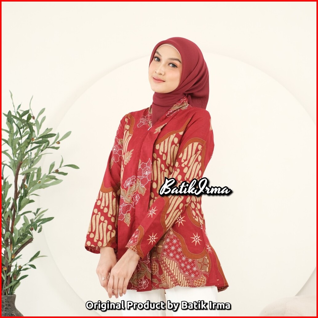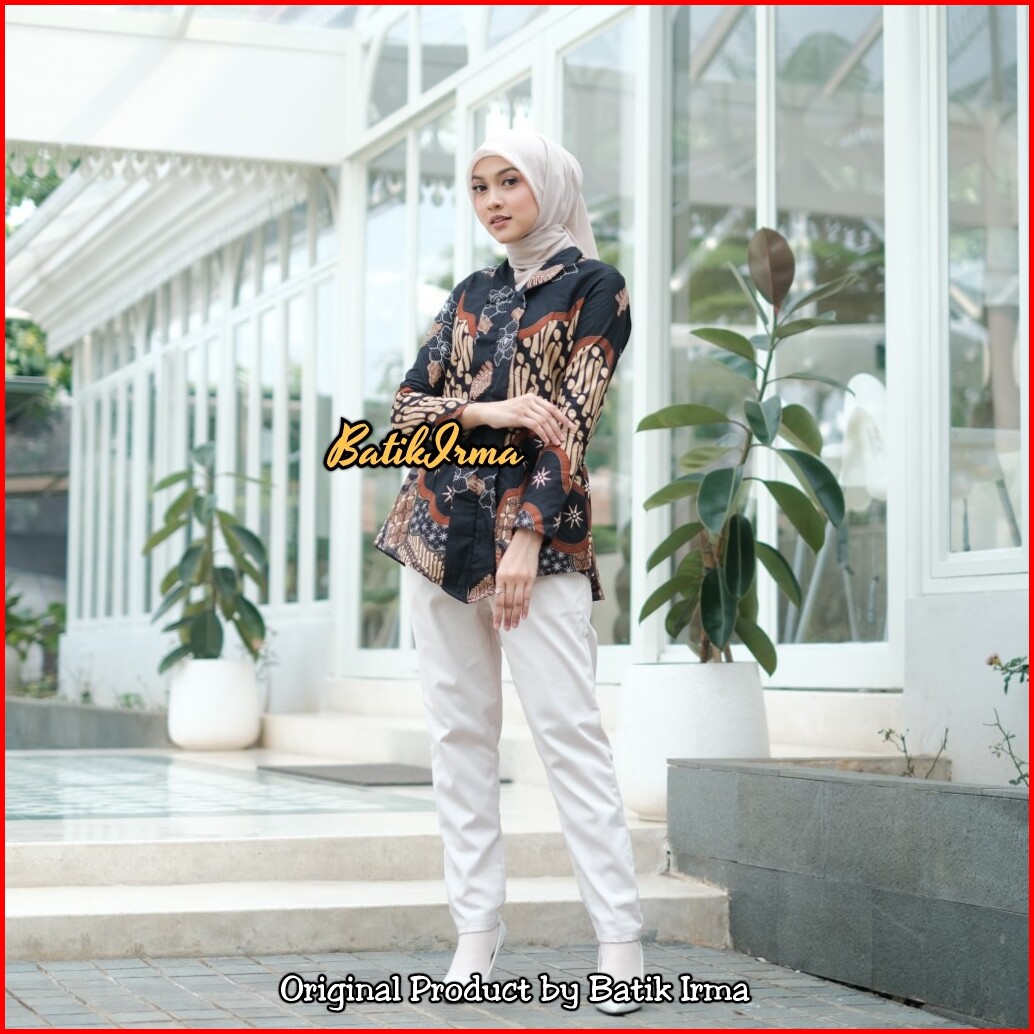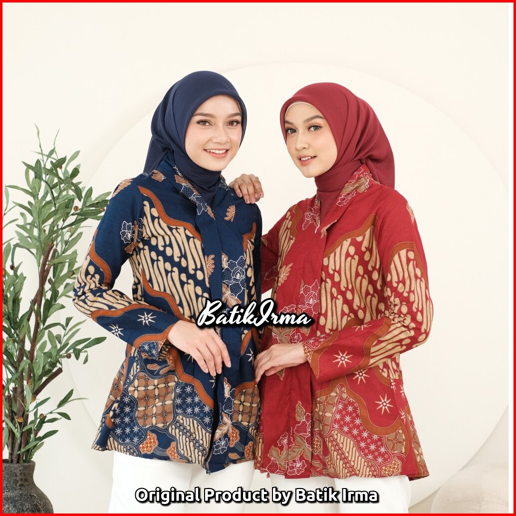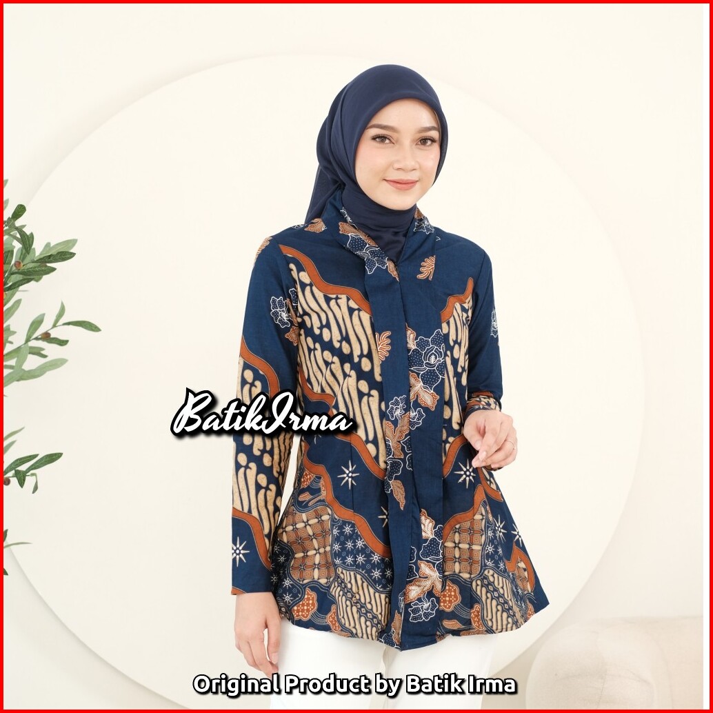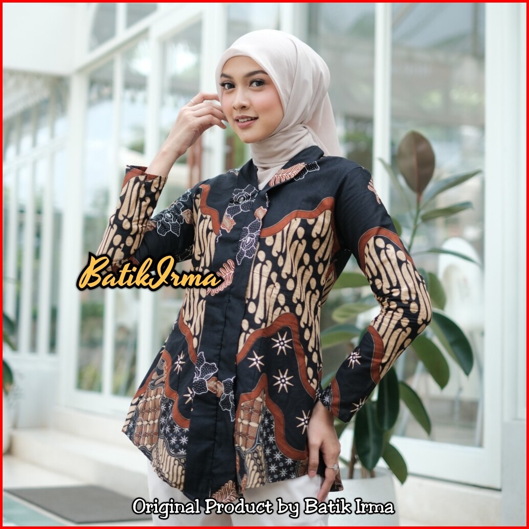 Atasan Batik Wanita Blouse Lengan Panjang Resleting Depan Blouse Gayatri Batik Irma