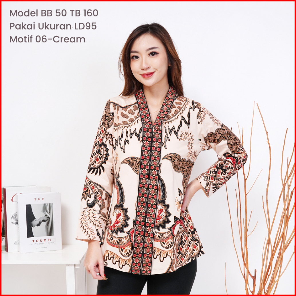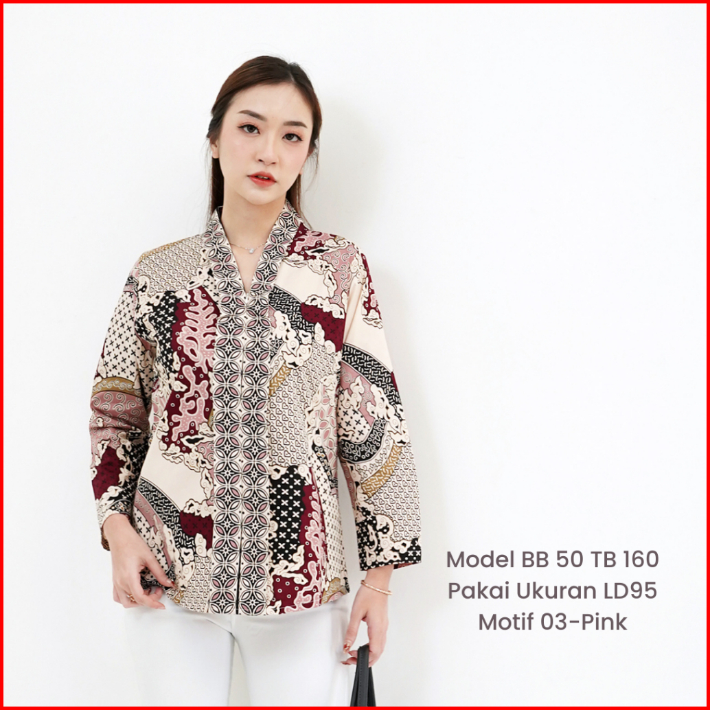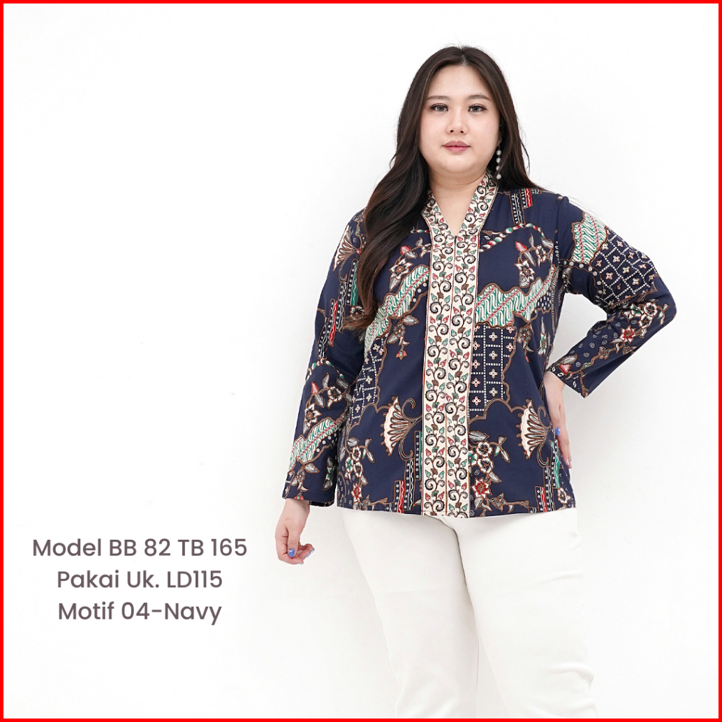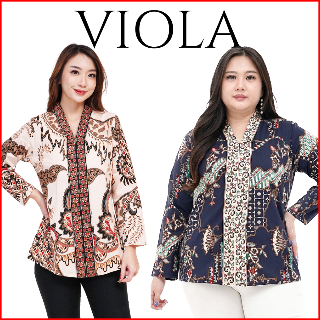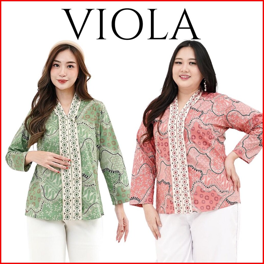 Viola Ld95-130 Blouse Batik Wanita Lengan Panjang Katun Stretch Premium Jumbo Bigsize Busui-friendly Hijab-friendly Kant