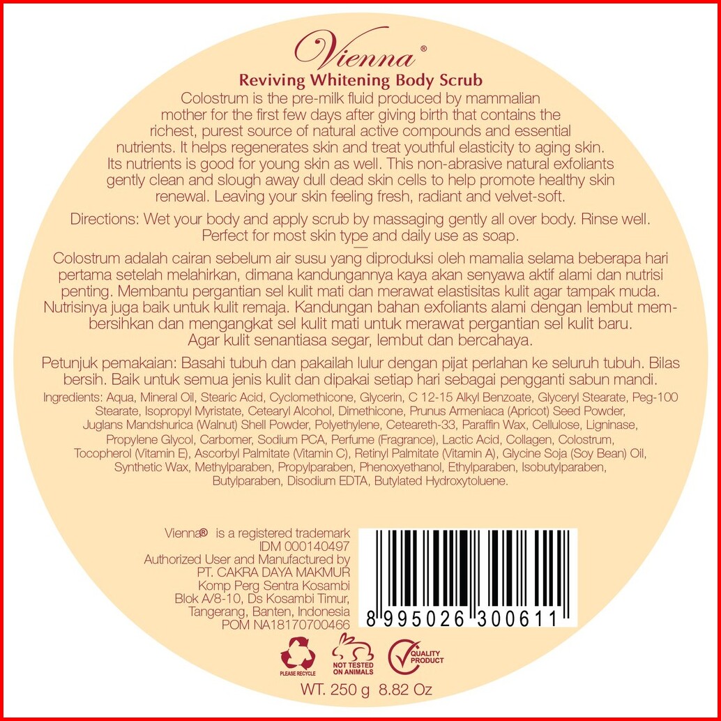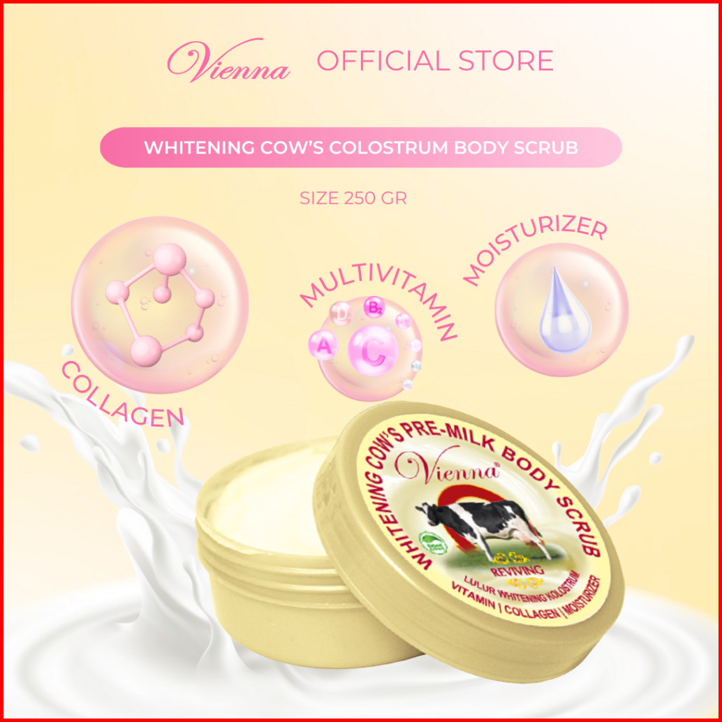 Vienna Reviving Colostrum Brightening Body Scrub - 250gr Jar Lulur Susu Sapi Pencerah Halus Lembut Dan Wangi