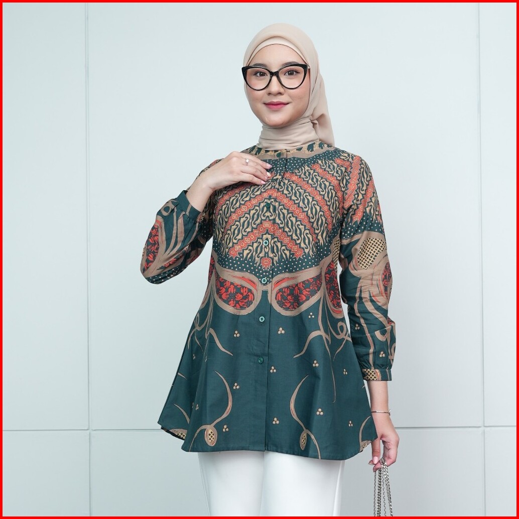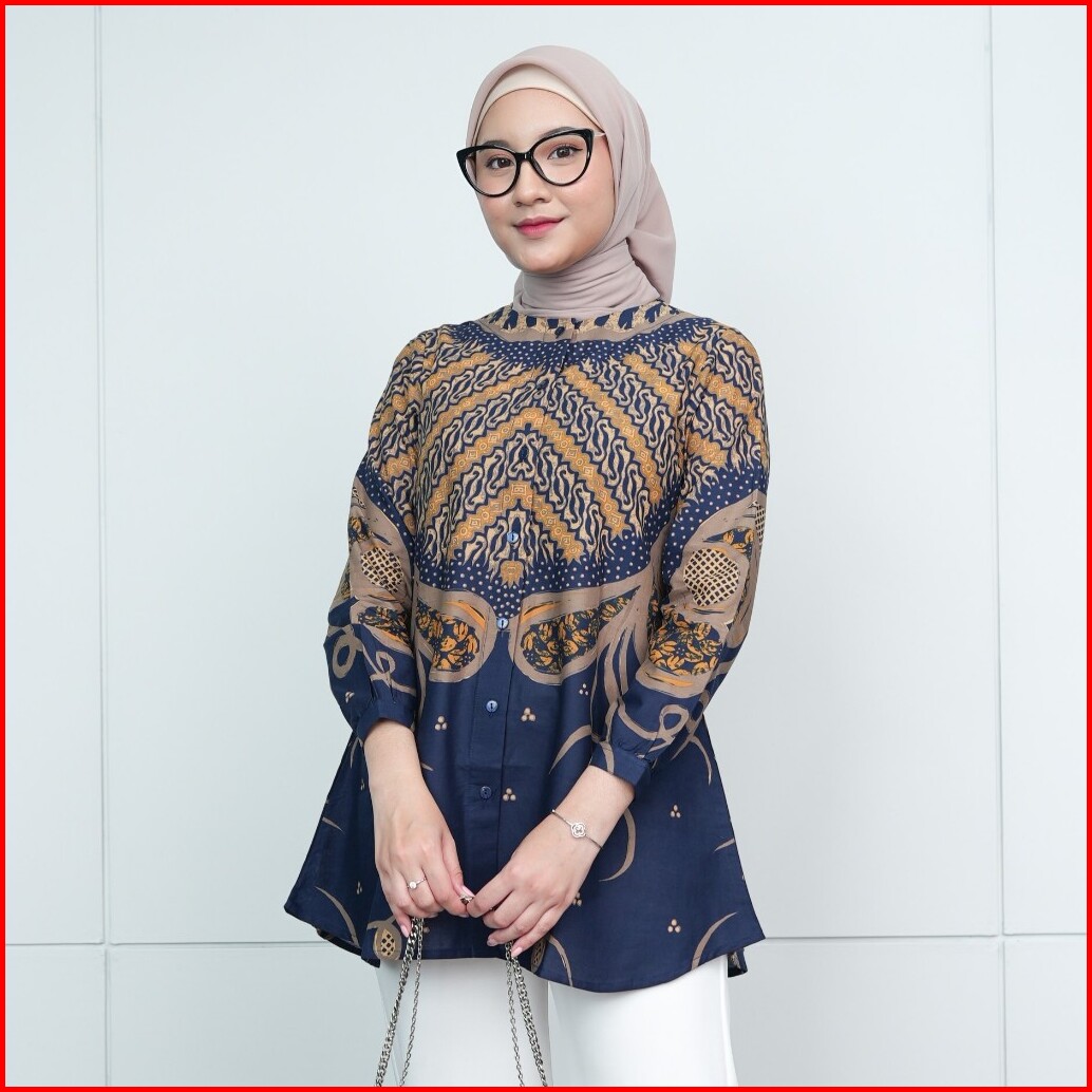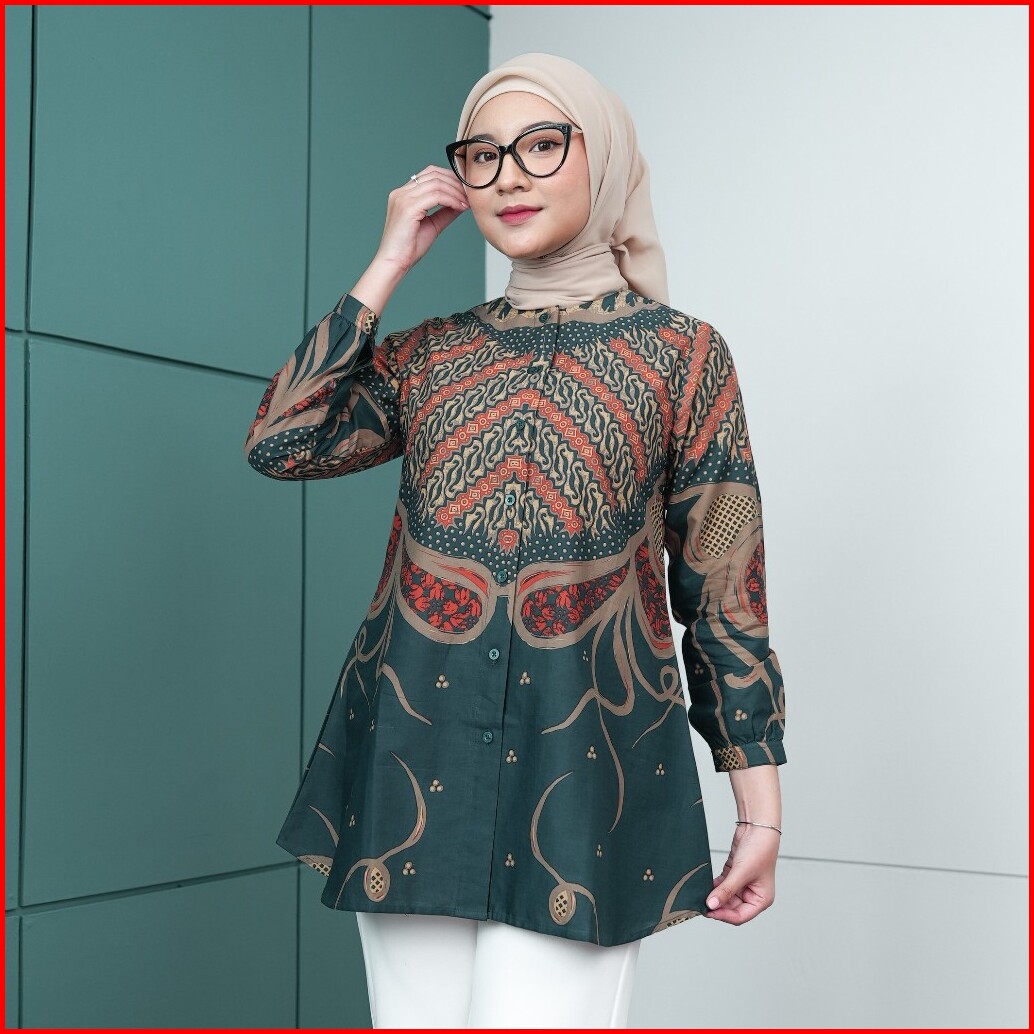Anggun Atasan Wanita Blouse Batik Kerja Modern Kekinian Kancing Depan Busui Friendly Lengan Panjang