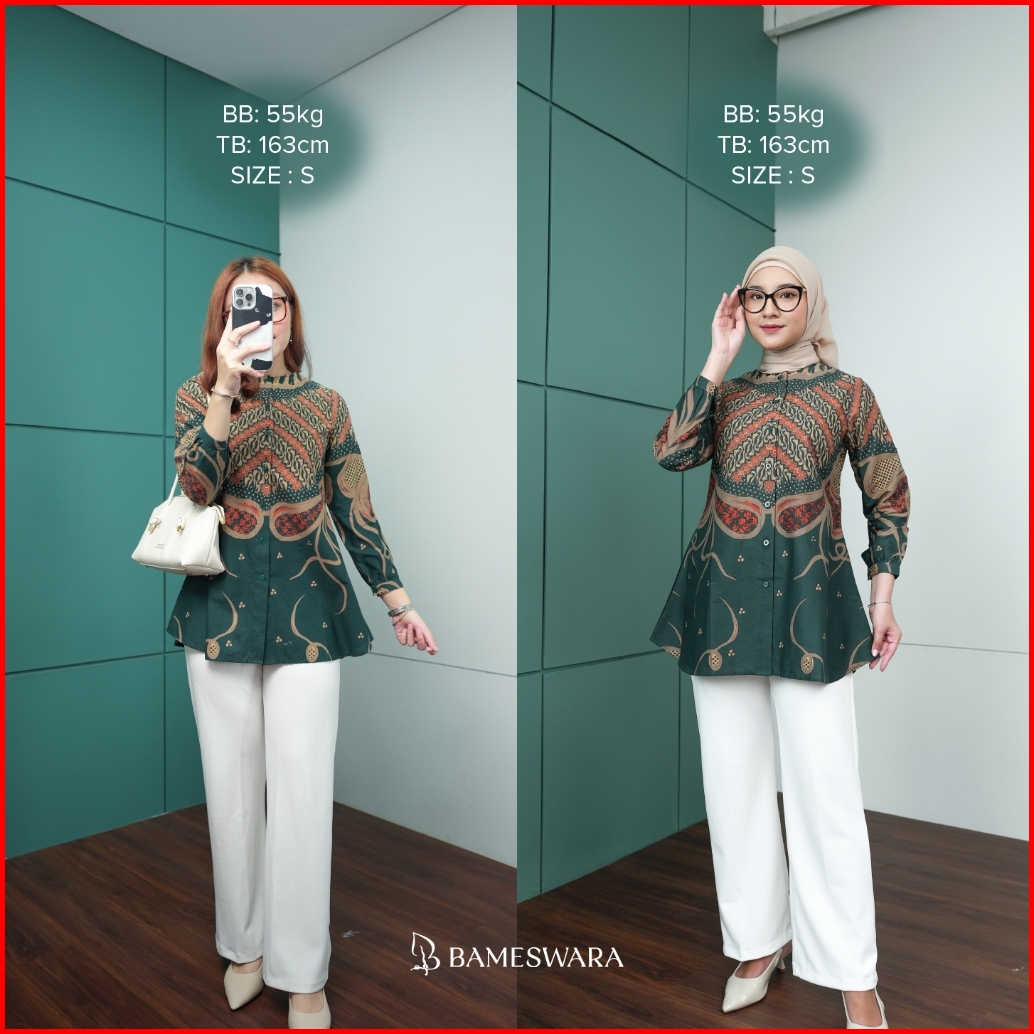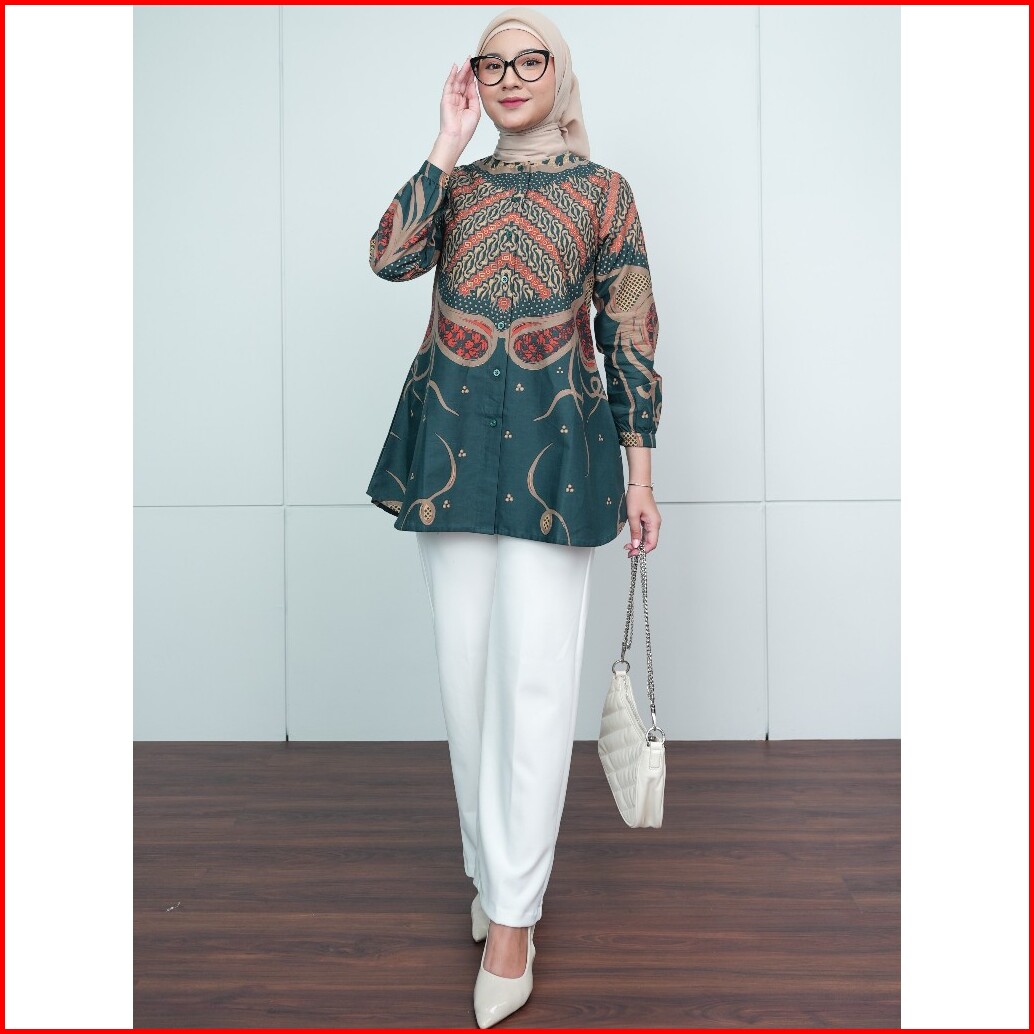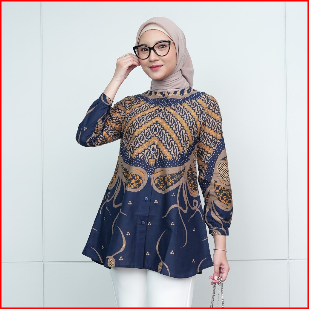 Anggun Atasan Wanita Blouse Batik Kerja Modern Kekinian Kancing Depan Busui Friendly Lengan Panjang