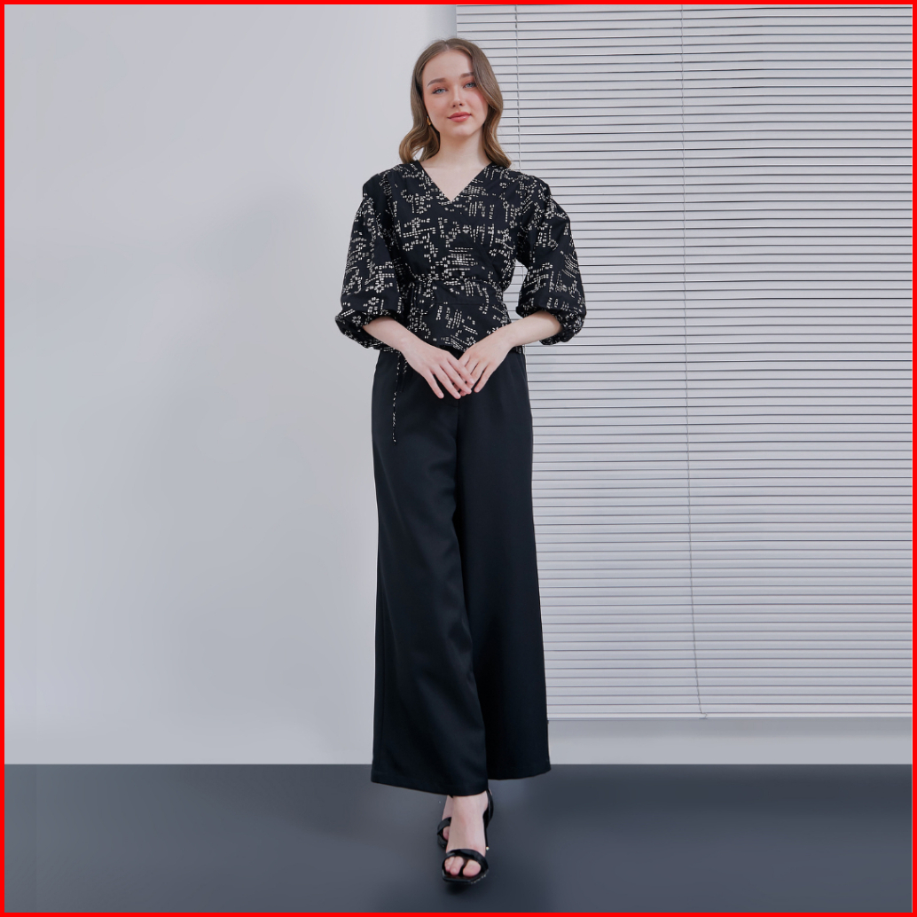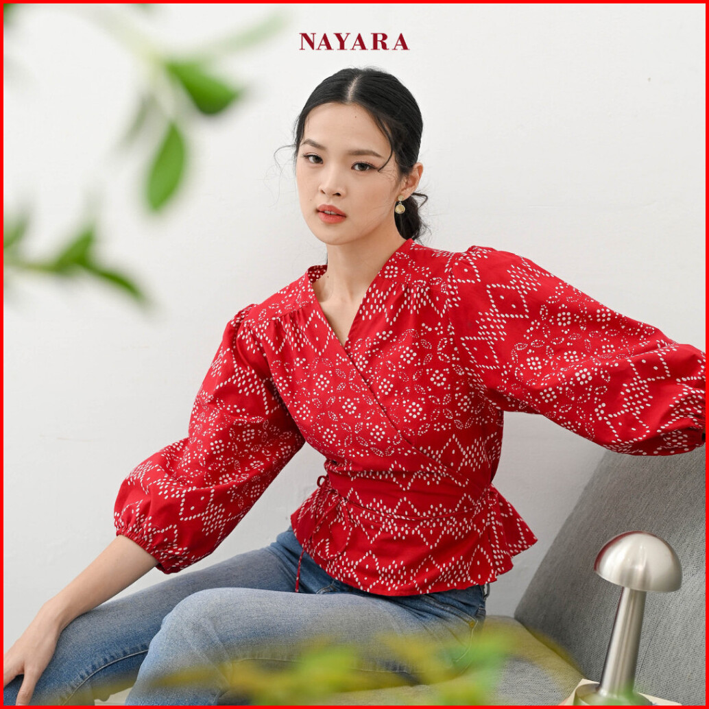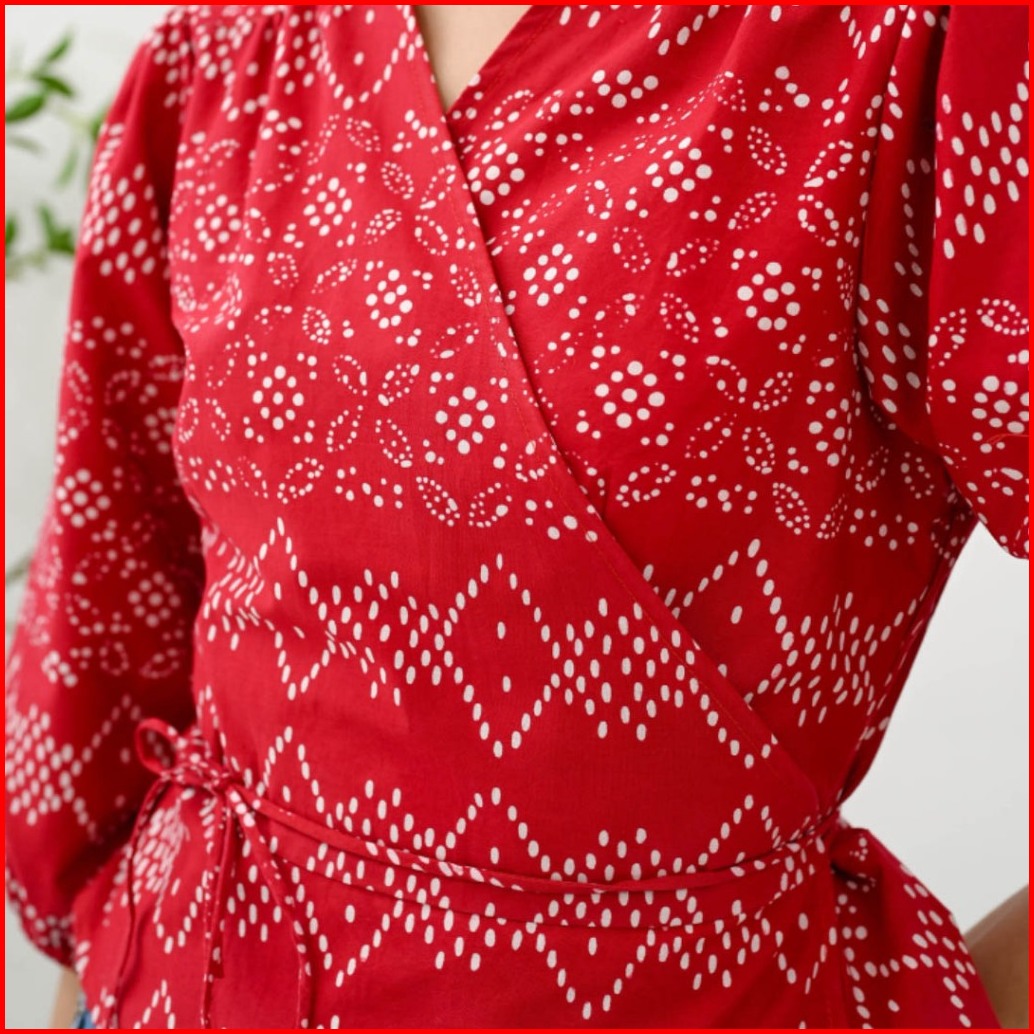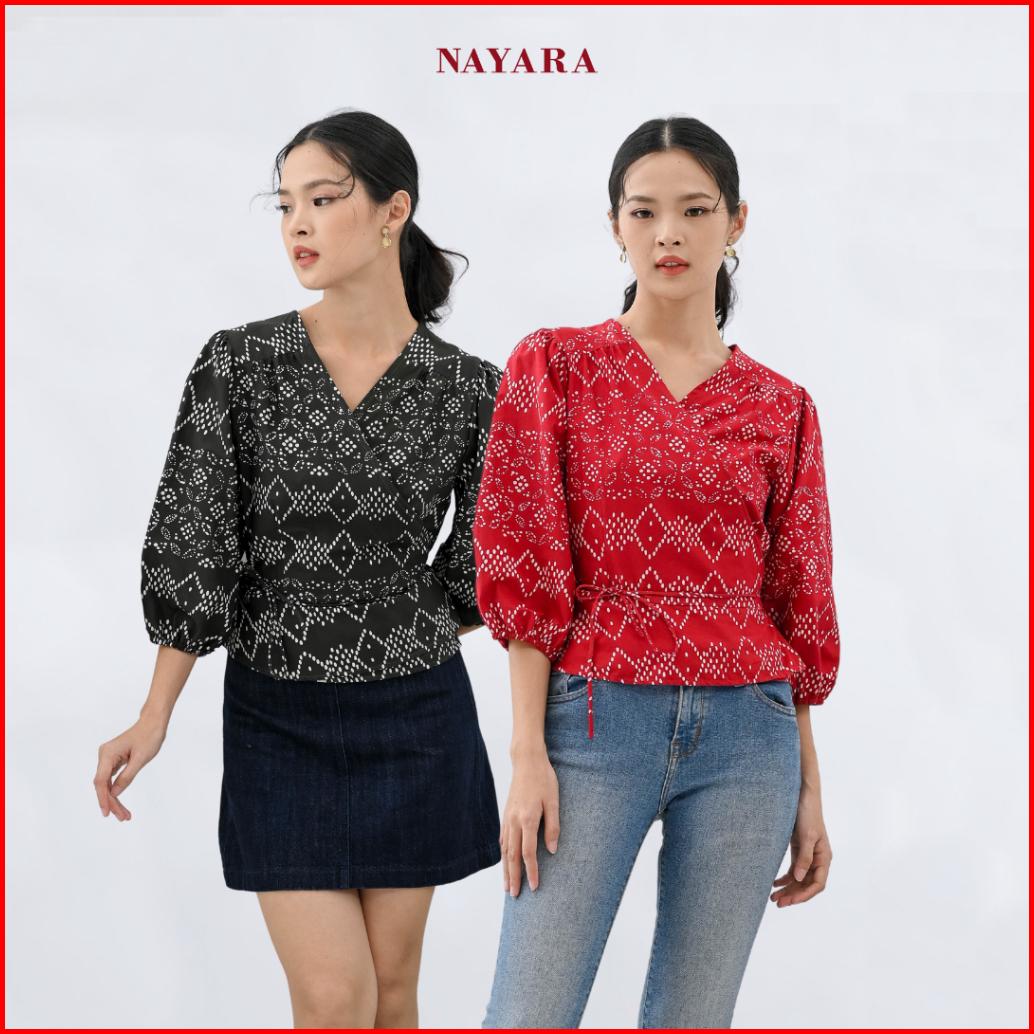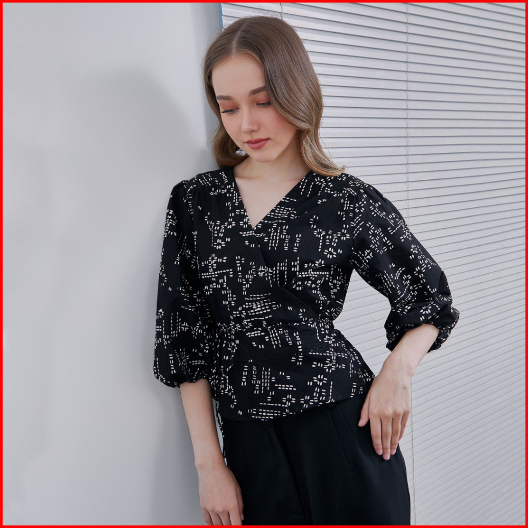 Nayara Clara Blouse Batik Cotton Kerah V Neck Fashion Wanita