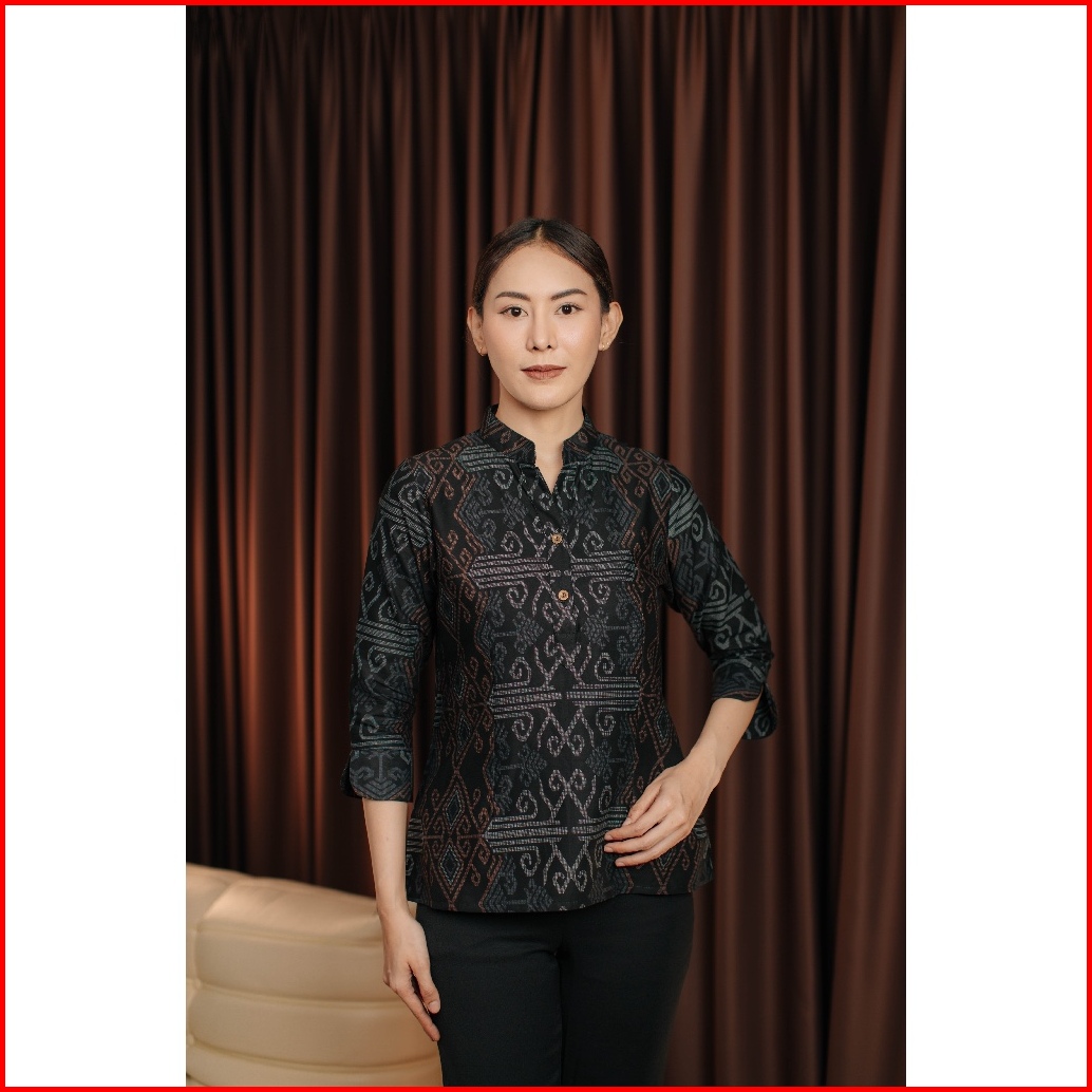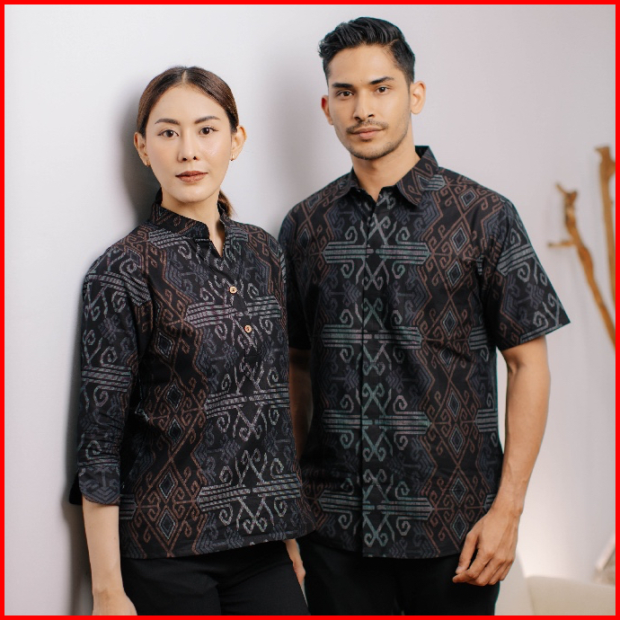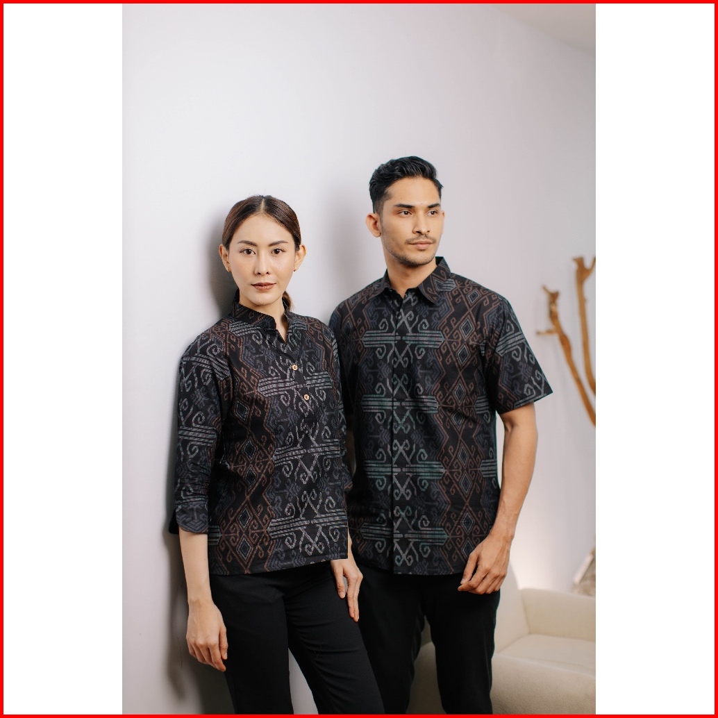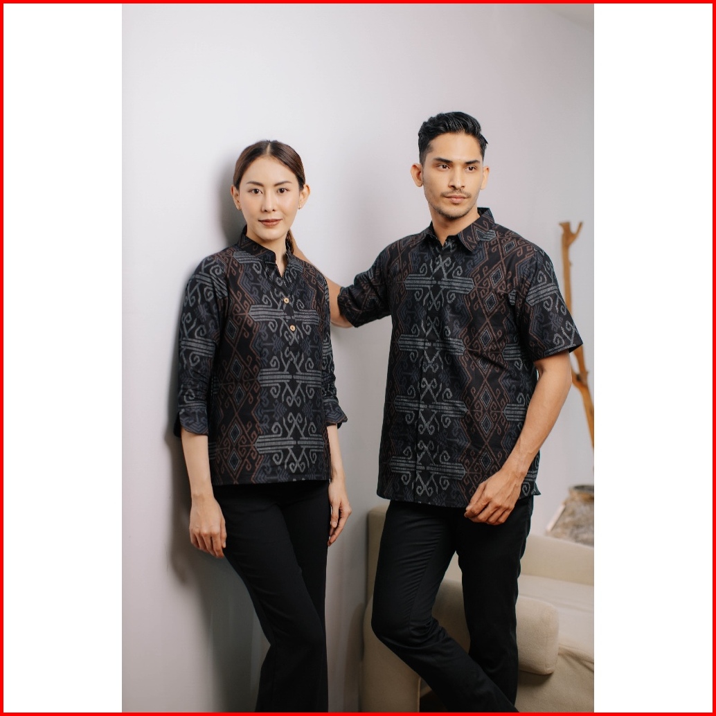 Batik Adyatma Sarimbit Set Couple Vistara Black - Kemeja Slim Fit Blouse Katun