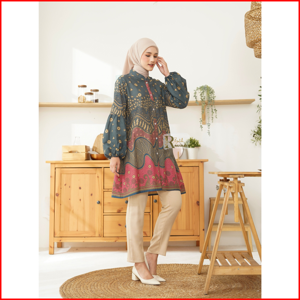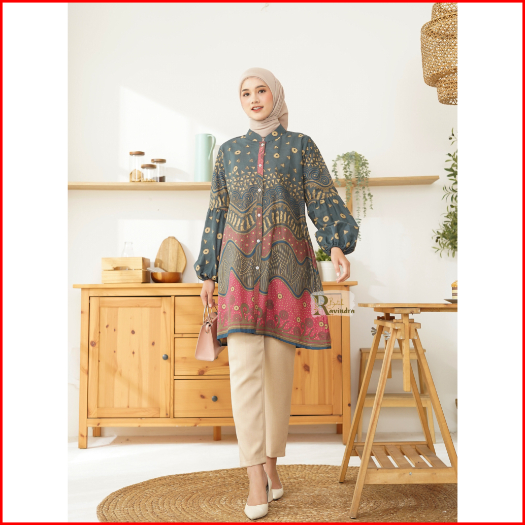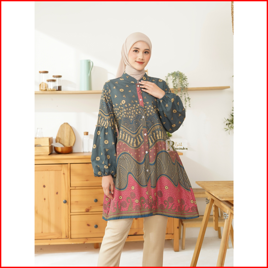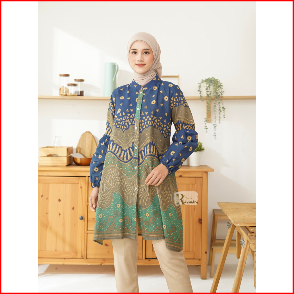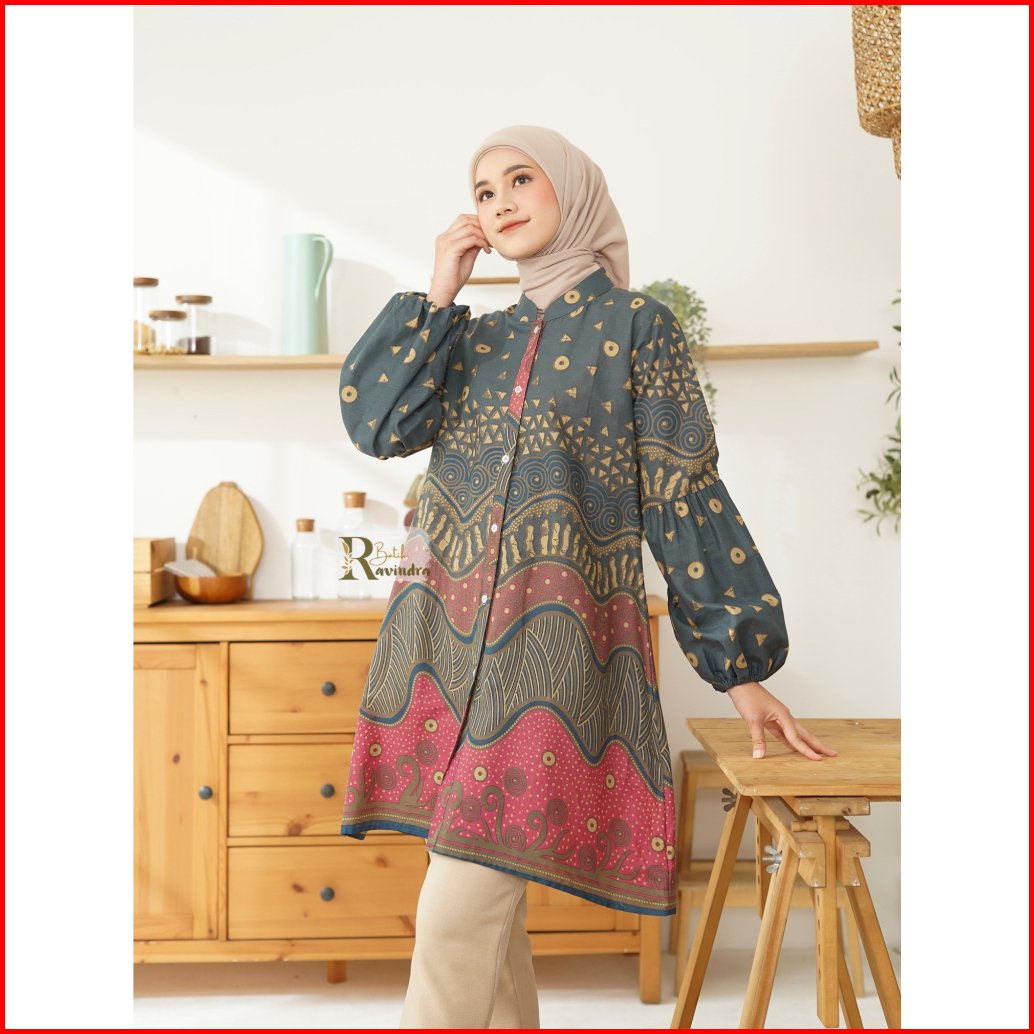 Tunik Batik Rania Katun Resleting Depan S-xxxl